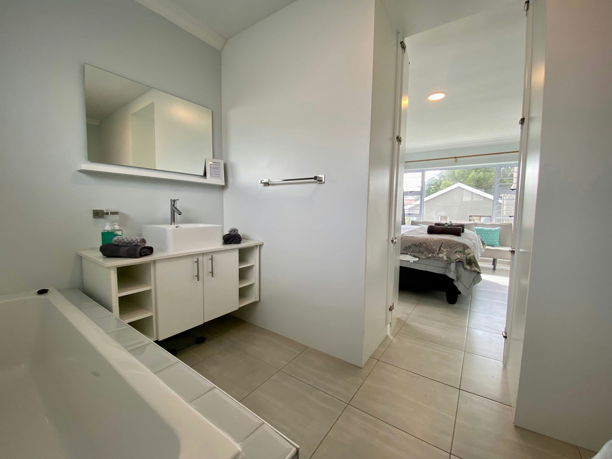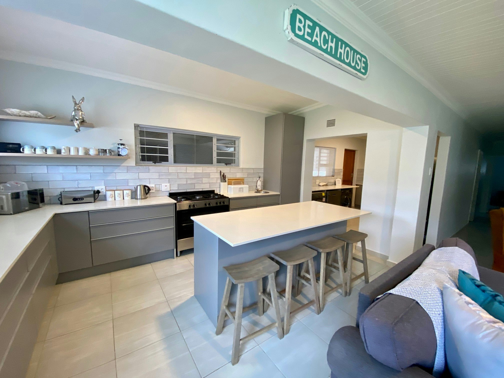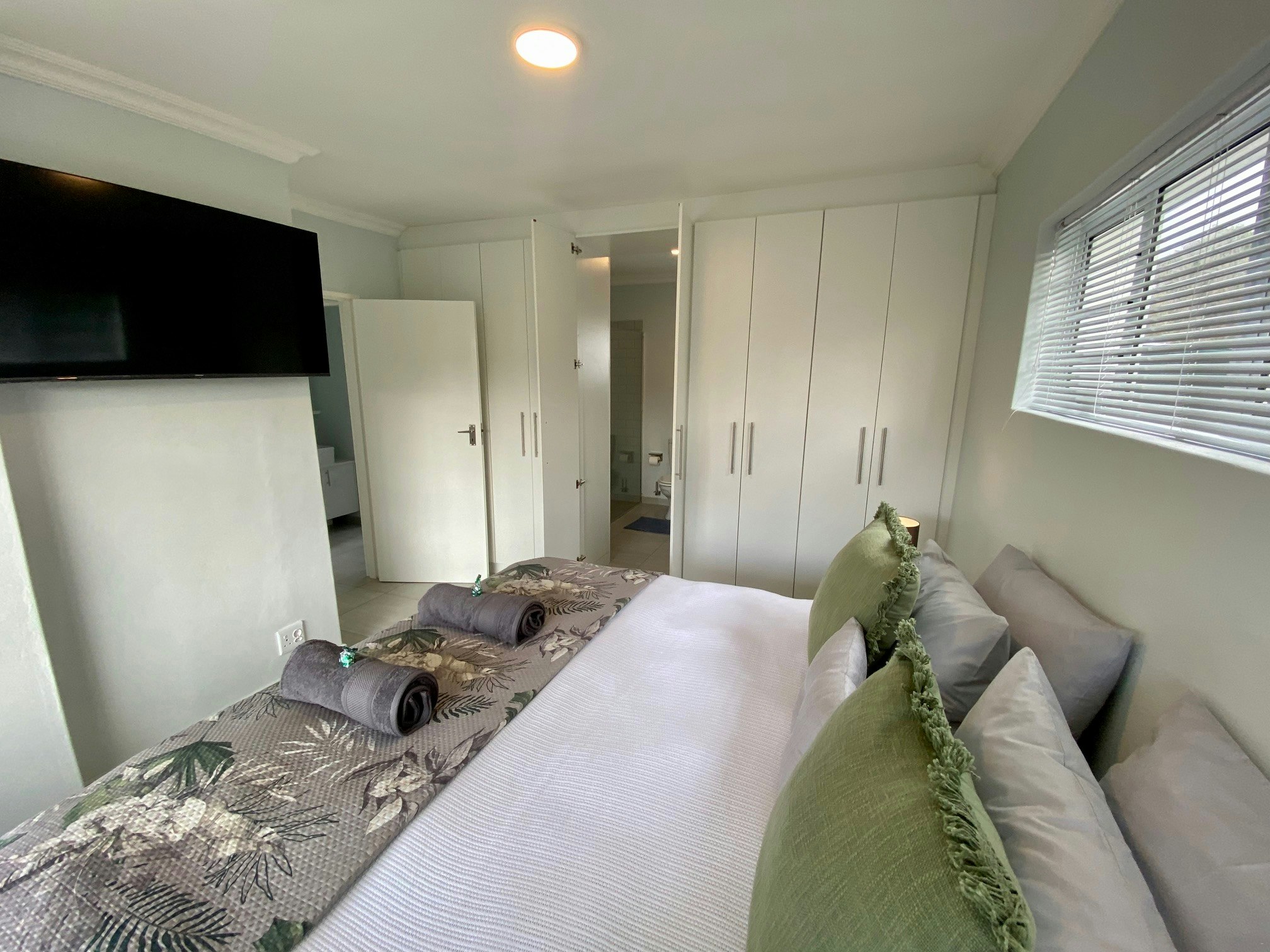 Die huis bied slaapplek aan 6 gaste en beskik oor 3 slaapkamers, 2 badkamers en 'n gastetoilet. Daar is 2 slaapkamers met koninggrootte-beddens en die derde slaapkamer het 2 enkelbeddens. Een van die badkamers het 'n stort en 'n bad en die tweede badkamer het 'n stort.