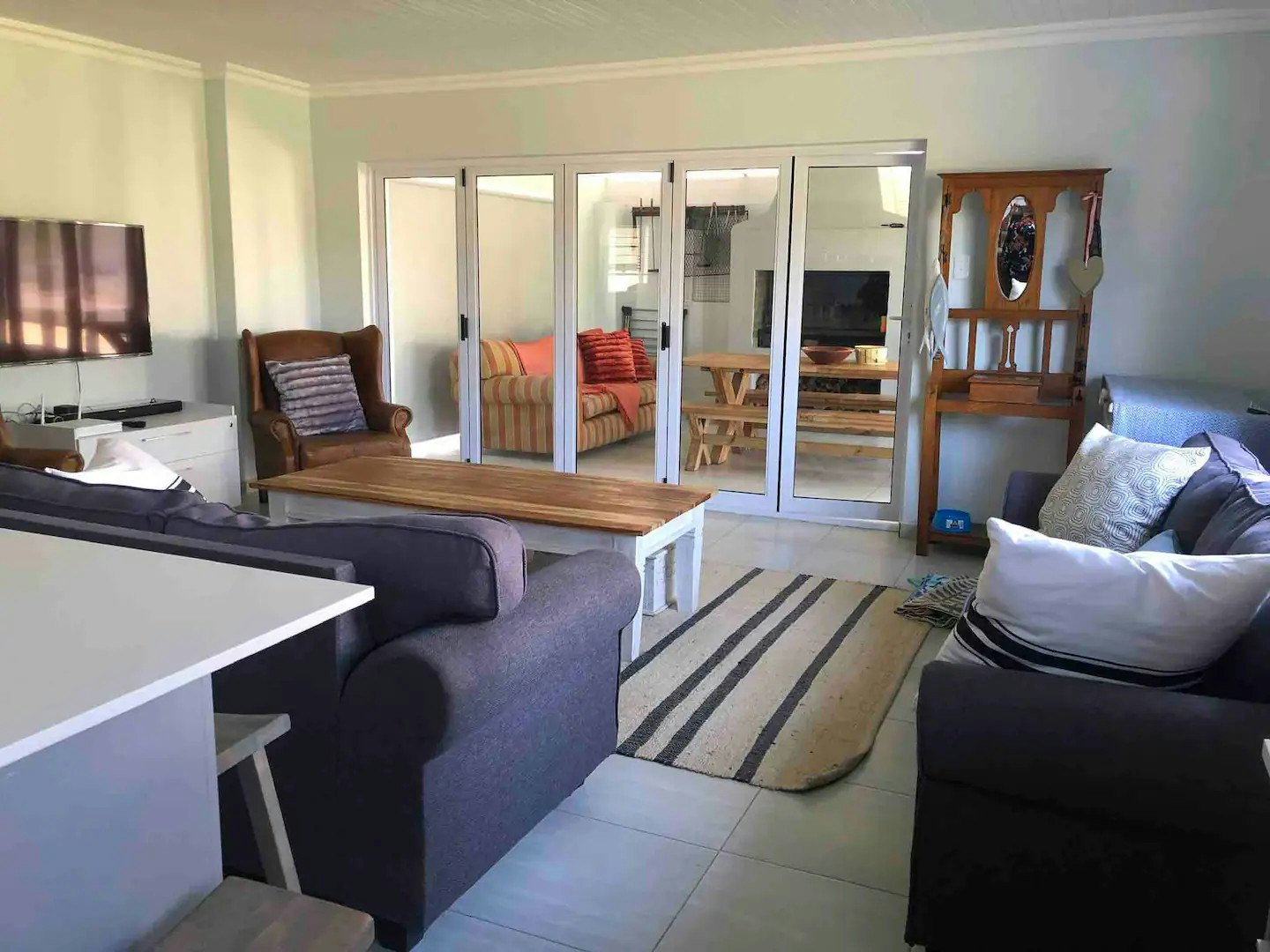 Die kombuis lei na 'n sitarea met gemaklike sitplek en 'n TV. Toegang tot gratis WiFi is beskikbaar. Die sitarea het stapeldeure wat na 'n toegeboude braaikamer met 'n etenstafel en 'n ingeboude braai lei.