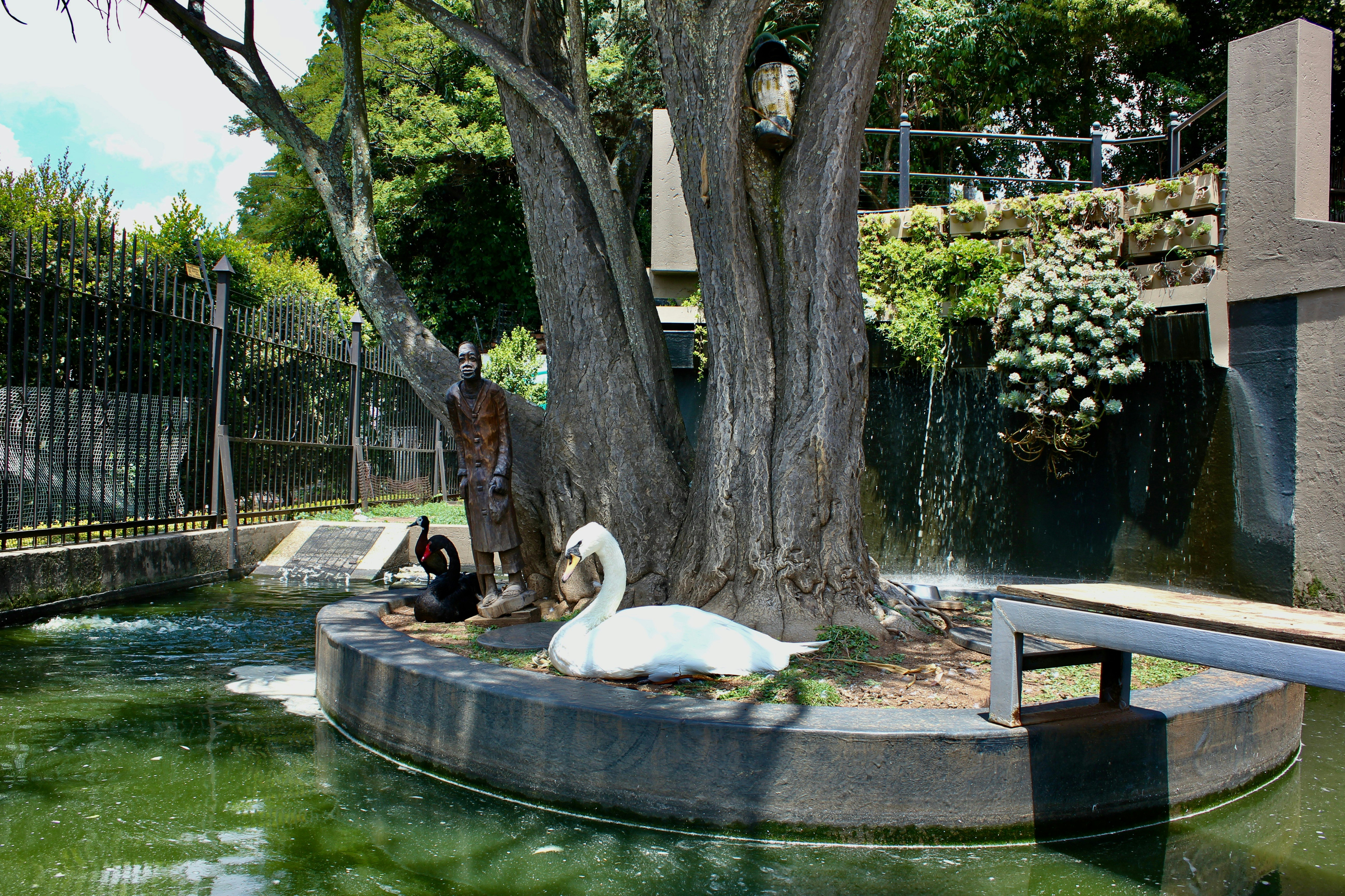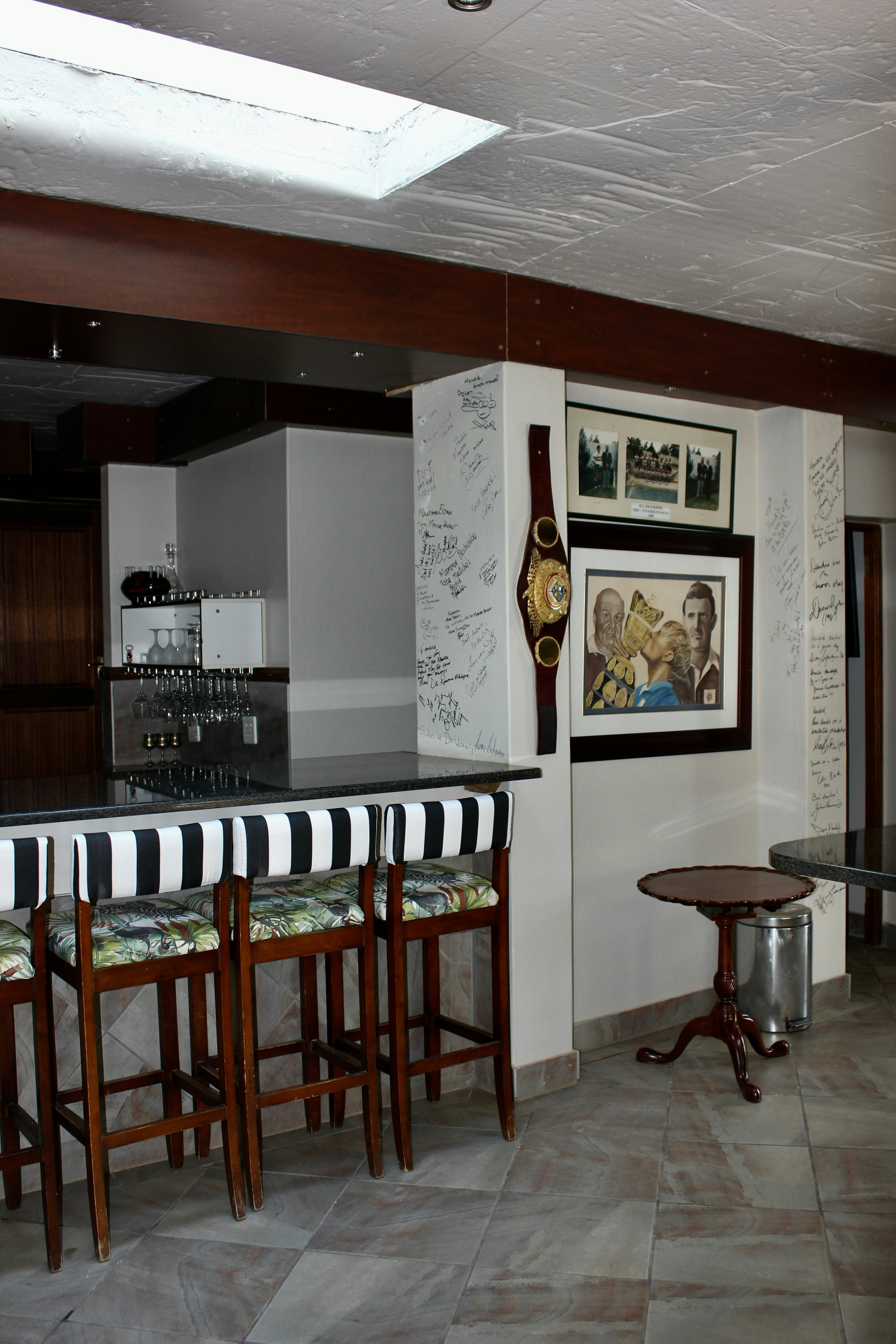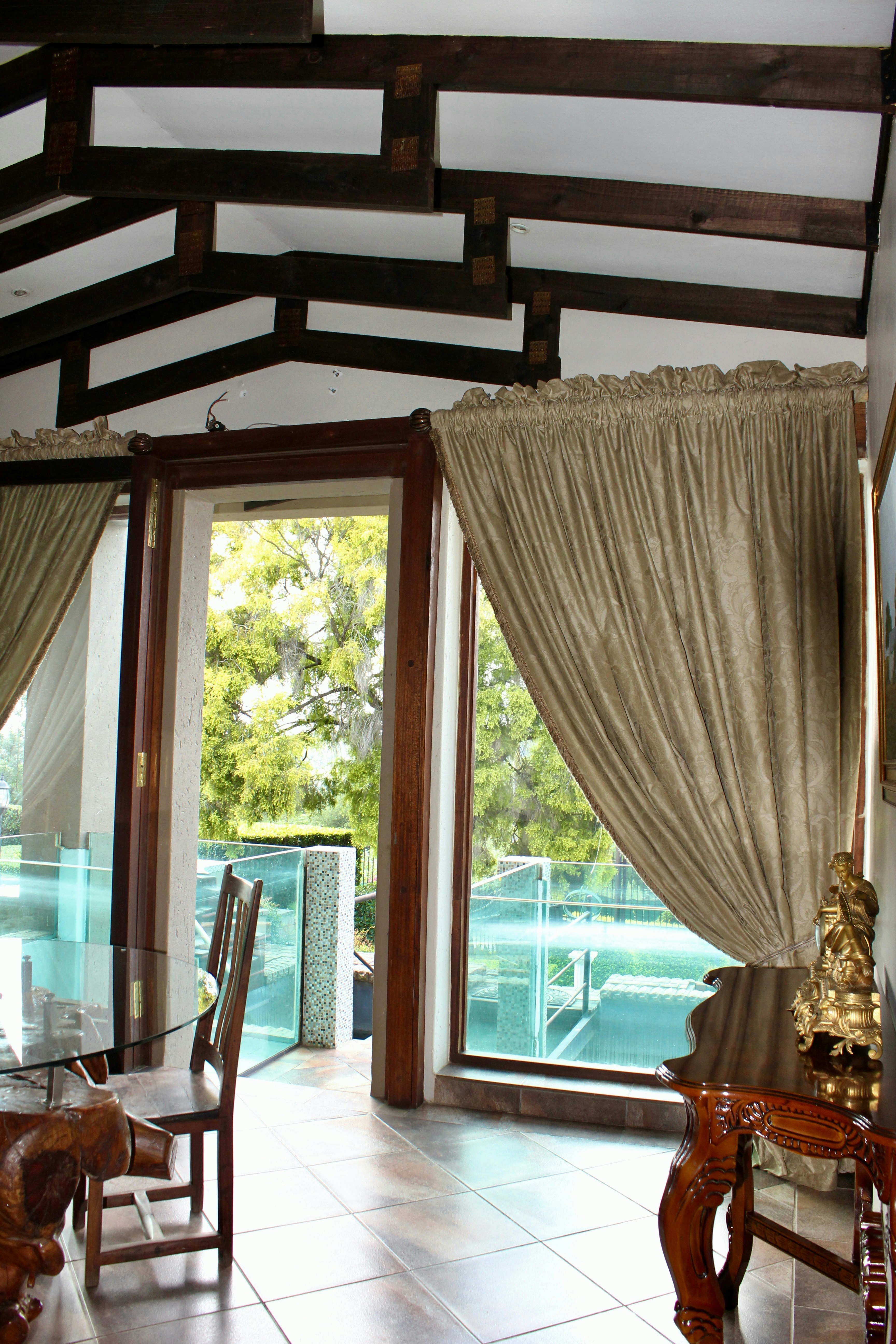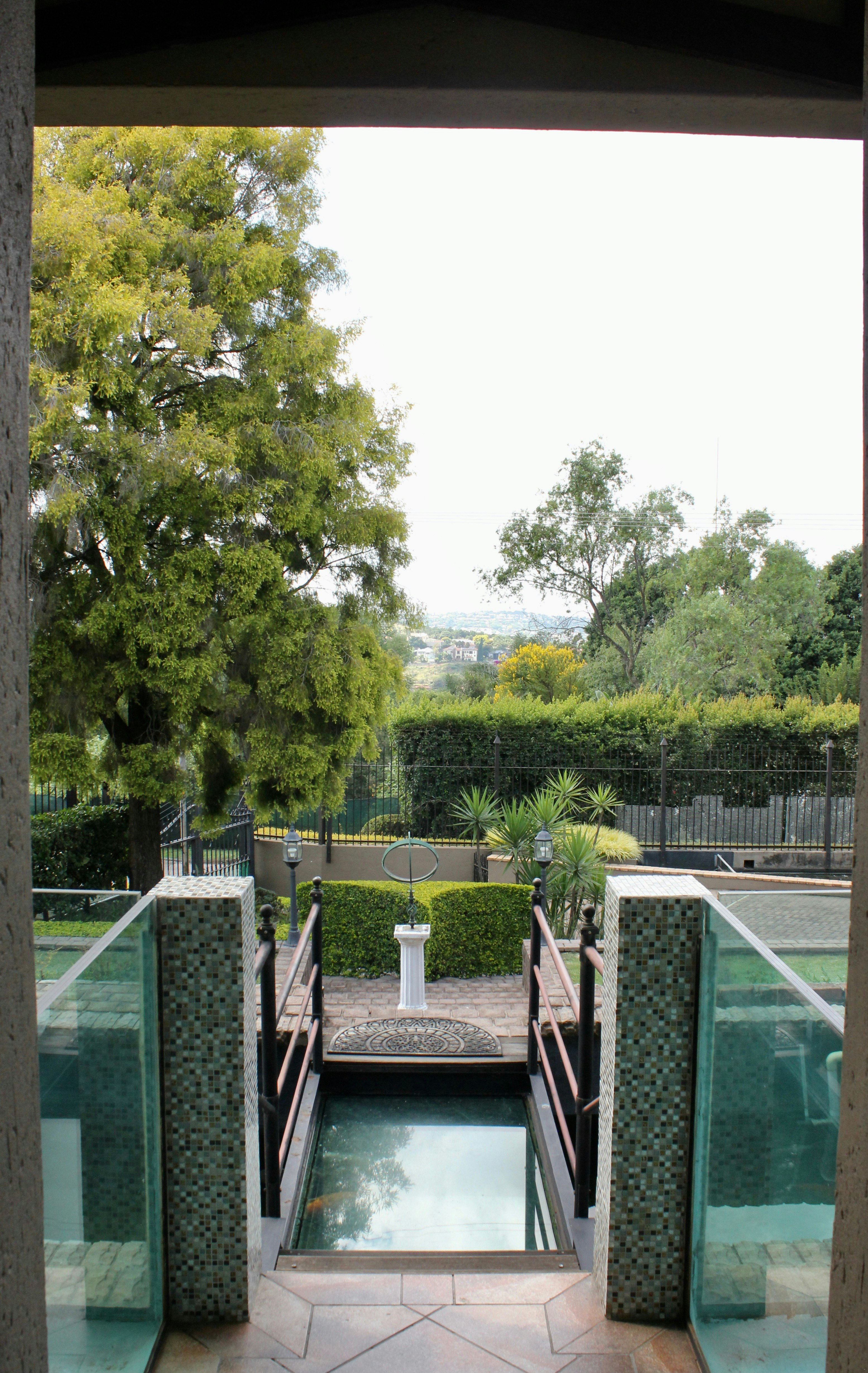 Guests can enjoy meals at an additional charge in the communal dining room, which offers ample seating for relaxed gatherings. The guesthouse also boasts a sparkling swimming pool with a partial glass floor and a bar built beneath the pool, a large Jacuzzi, and tranquil water features including a waterfall. A koi pond with swans and waterfowl adds to the serene atmosphere.