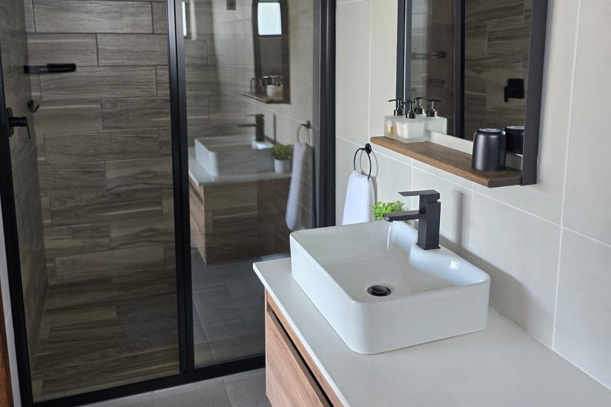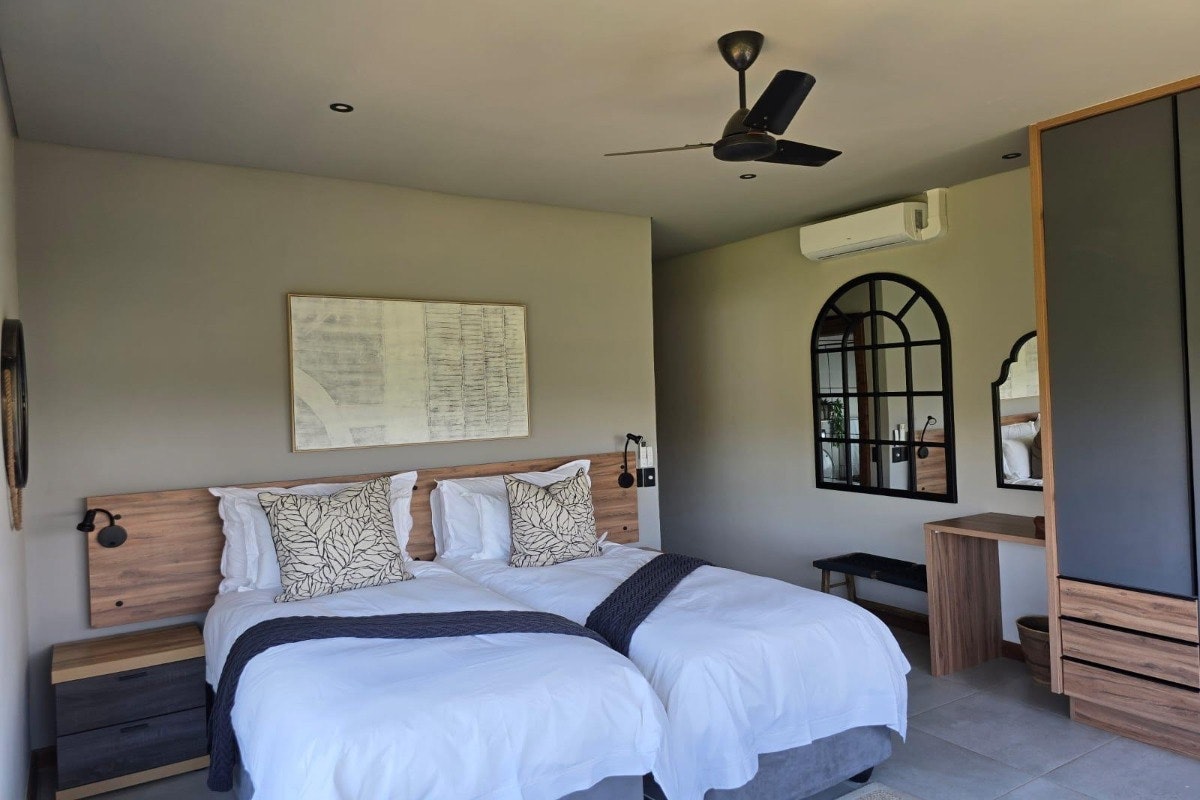 Die huis het slaapplek vir tot 8 gaste en beskik oor 4 slaapkamers, elk met 'n en suite-badkamer en 'n gastetoilet. Die eerste slaapkamer op die boonste verdieping is ingerig met 'n koninggrootte-bed en sluit 'n en suite-badkamer met 'n bad, stort, wasbak en toilet in. Die tweede slaapkamer het ook 'n koninggrootte-bed en 'n en suite-badkamer met 'n stort, wasbak en toilet. Slaapkamers drie en vier het elk driekwartbeddens, met en suite-badkamers met 'n stort, wasbak en toilet. Alle linne en badhanddoeke word voorsien.