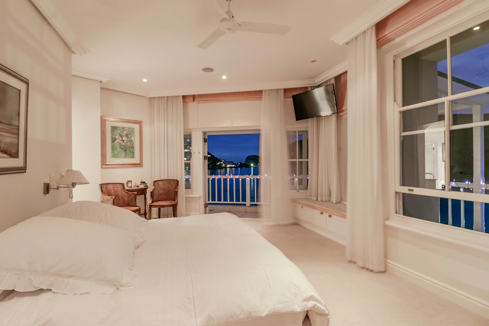 Villa Vista comprises a superior room upstairs, with an en-suite bathroom and includes the use of the downstairs area, which includes the TV room, dining room, lounge, and kitchen. The bedroom is furnished with a king-size bed and offers an en-suite bathroom with a toilet, bidet, basin, bath, and shower. The bedroom is surrounded by balconies overlooking the lagoon. The kitchen is equipped with a fridge, microwave, 2 ovens, gas stove, toaster, kettle, Nespresso coffee machine, Air fryer, and slicer. Guests have access to a TV with DStv in the TV room. Superior room upstairs surrounded by balconies and beautiful views overlooking the ever changing lagoon. opening out onto a large balcony.
