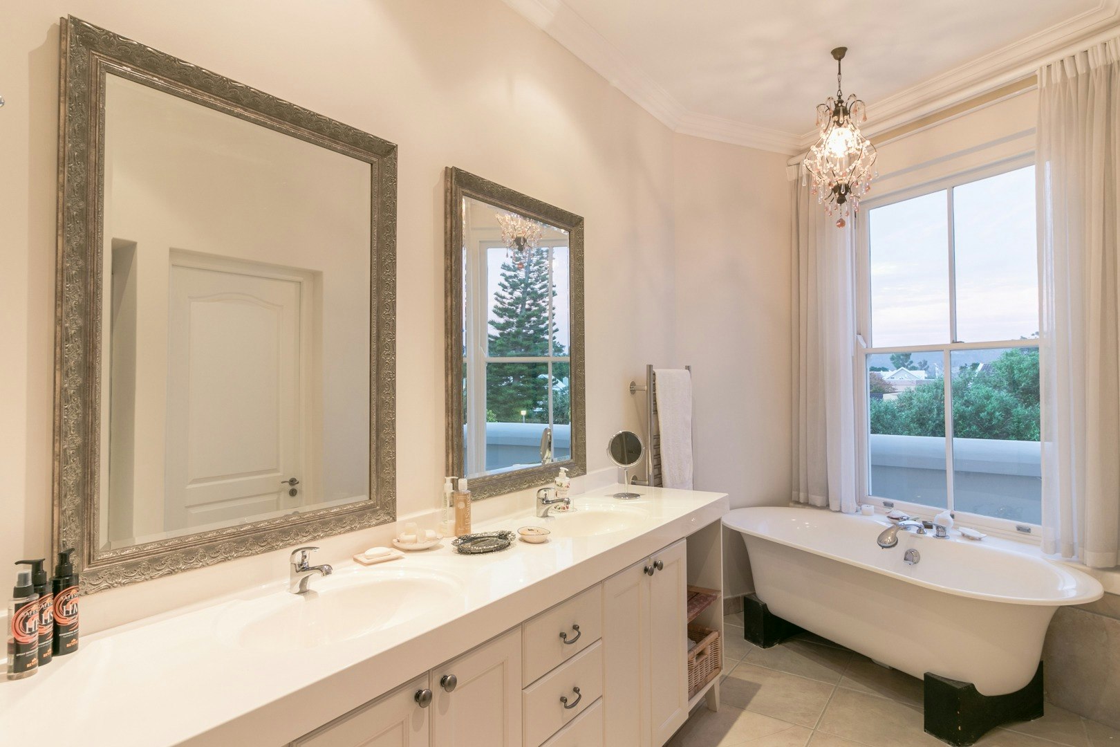 Isola Bella Villa is a spacious self-catering house that comprises 6 bedrooms with en-suite bathrooms, a lounge, dining room, separate TV room and a kitchen. Three of the bedrooms are furnished with a king-size bed and offer en-suite bathrooms fitted with a toilet, basin, bath, and shower. Bedrooms 4 and 5 each have a king-size bed, and the en-suite bathrooms have a toilet, basin, and shower. The last bedroom is furnished with a double bed, and the en-suite bathroom has a toilet, basin and shower. The kitchen is equipped with a fridge, microwave, oven, stove, toaster, and kettle. Guests have access to a TV in the TV room.