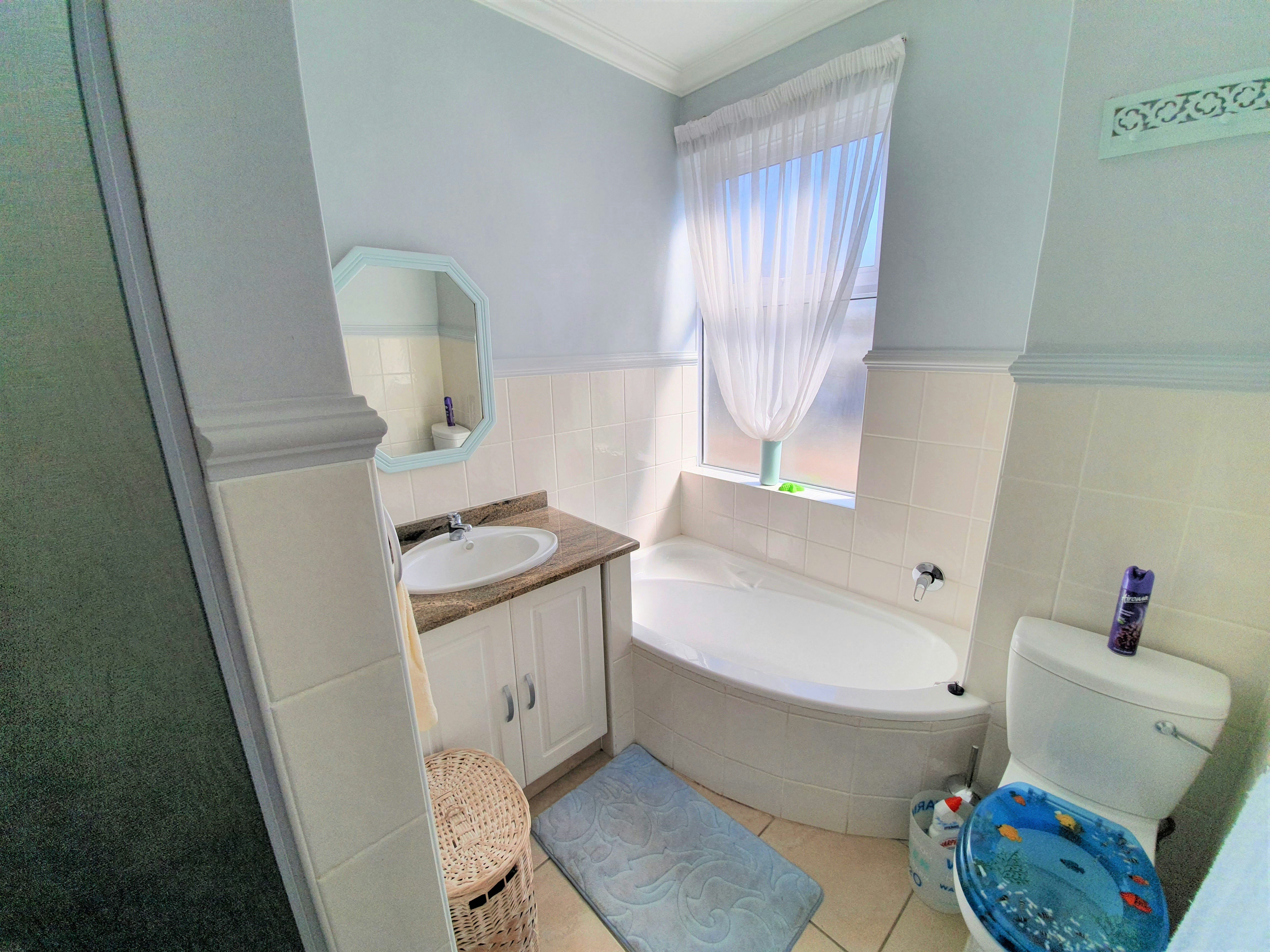 The apartment has 1 covered parking near the front door. The complex has an electric fence and gate. Guests can make use of the communal braai facilities that are cleaned daily, and a laundry, as well as a cleaning service, is available on the premises at an additional cost. There are 3 exits to the beach in front of the apartment which are electronically controlled with a code.