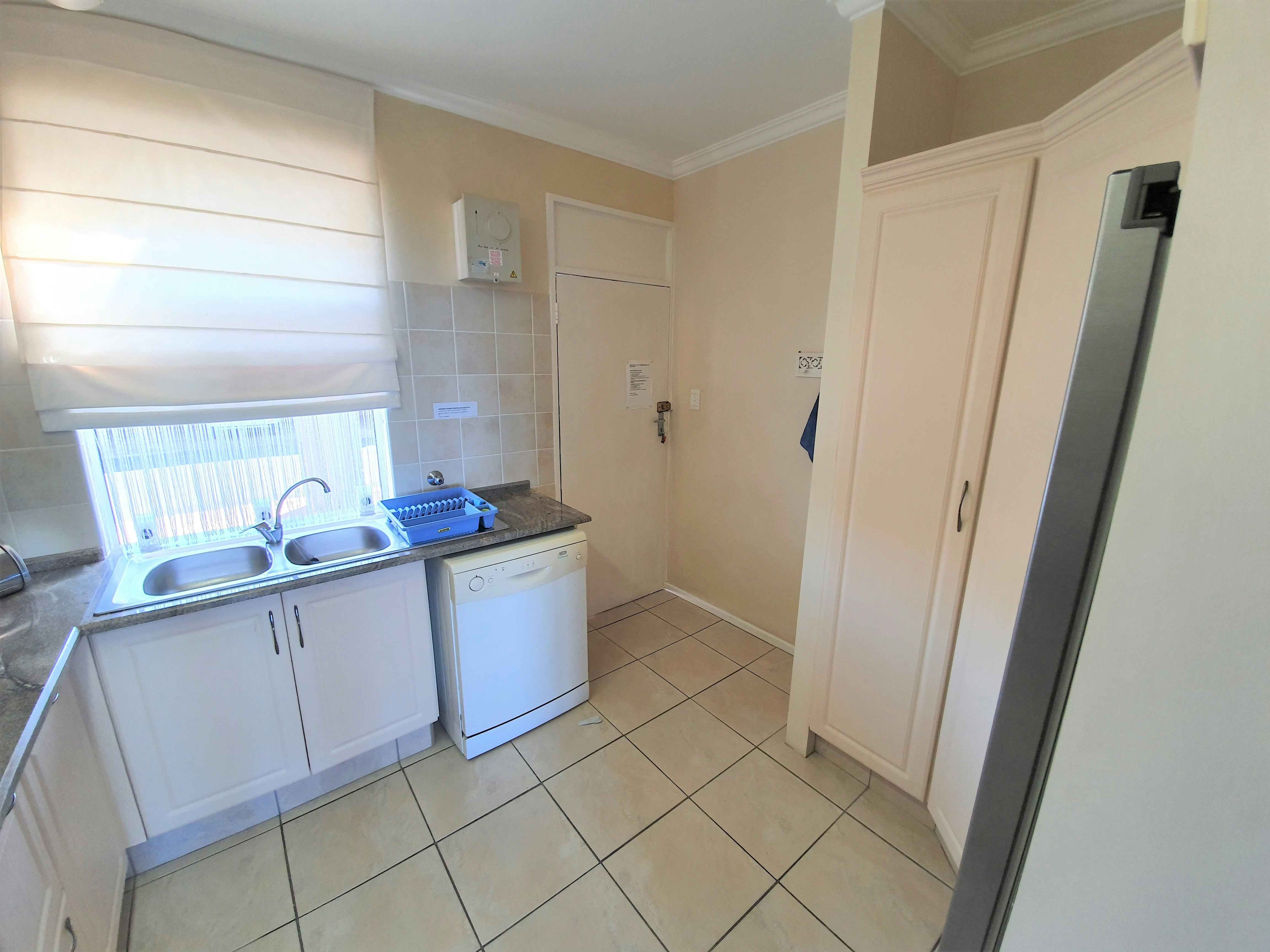 The kitchen has granite work surfaces and is fully equipped with a glass top induction stove, an oven, a microwave, a fridge, a dishwasher, ironing facilities as well as tea-and-coffee-making facilities, and meals can be enjoyed at the dining table but most people enjoy al fresco meals on the balcony. The lounge is equipped with a TV with a full selection of DStv channels (bring your own decoder), and a DVD player. There is Wi-Fi available. The living area has a good ceiling fan. Board games and cards are available.