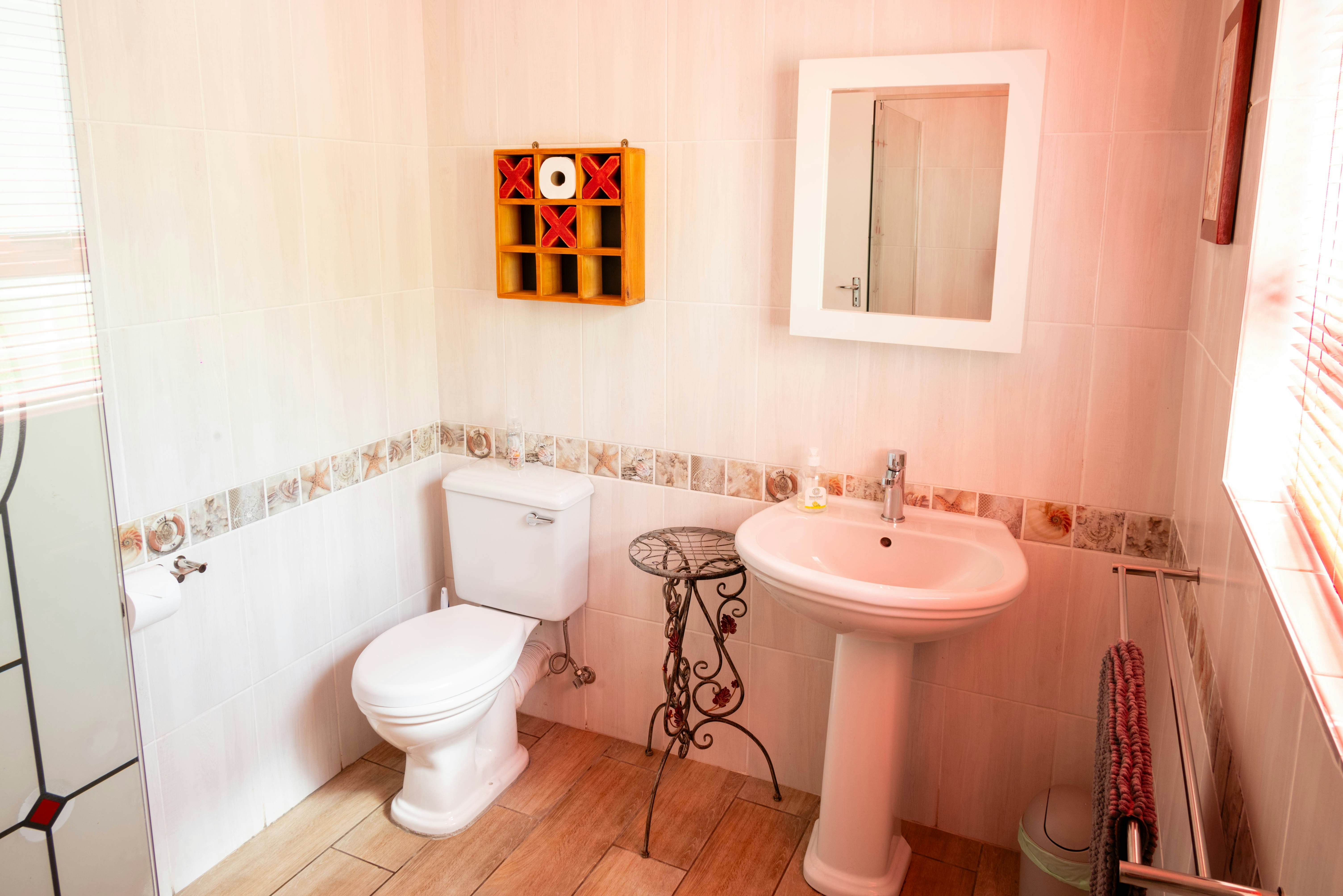 Jaloersbaai Guest Cottage can accommodate up to 4 guests and comprises 2 bedrooms, 2 bathrooms, and a fully-equipped open-plan kitchen and living area. The first bedroom contains a queen bed and a shower/toilet en suite. The second bedroom contains 2 single beds. The second bathroom contains a shower, toilet and a washbasin.