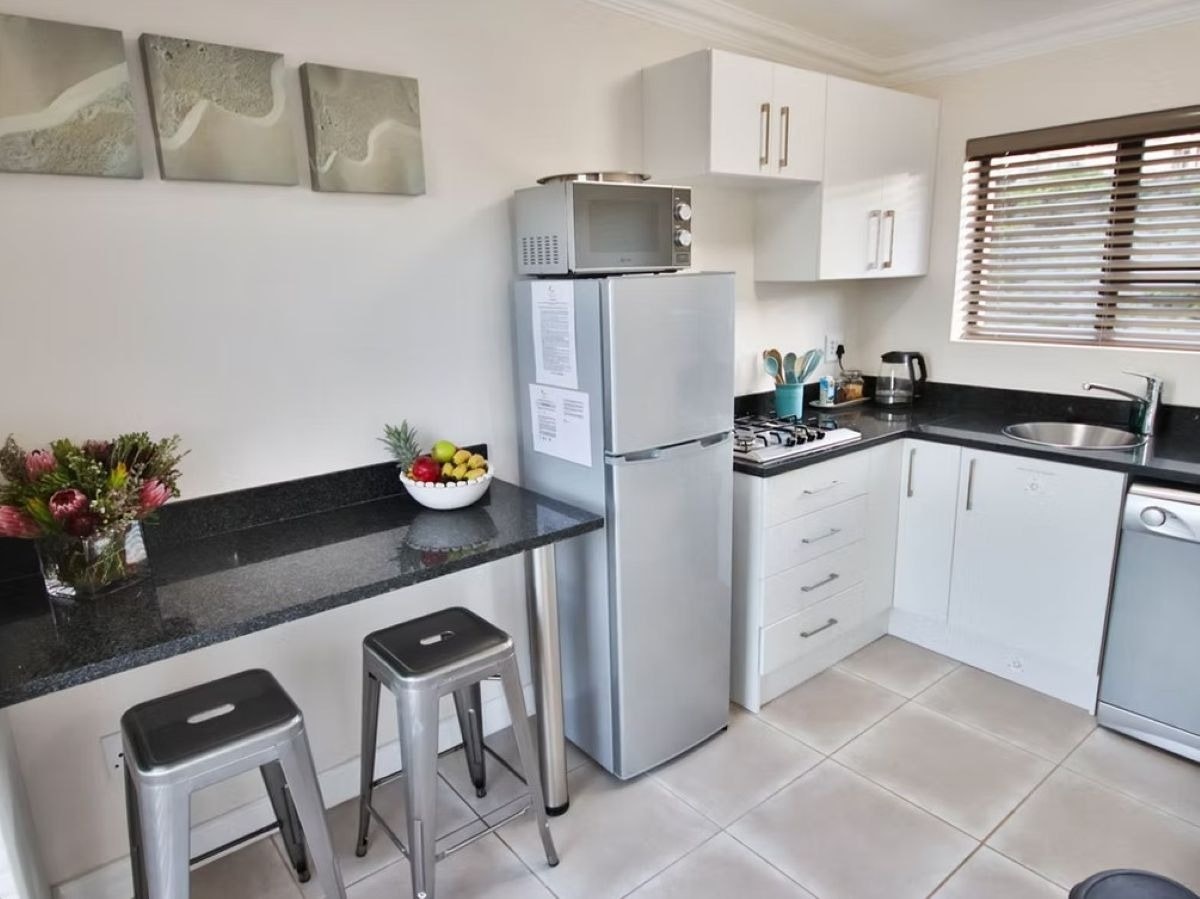 Die kombuisie is goed toegerus met 'n stoof, mikrogolfoond, koffiemasjien, broodrooster, yskas-vrieskas, eetgerei en breekware, sowel as 'n skottelgoedwasser. Gaste kan hul maaltye by die ontbyttoonbank met stoele geniet. 'n Toegewyde werkstasie en 'n muurgemonteerde TV met toegang tot gratis WiFi is ook beskikbaar.