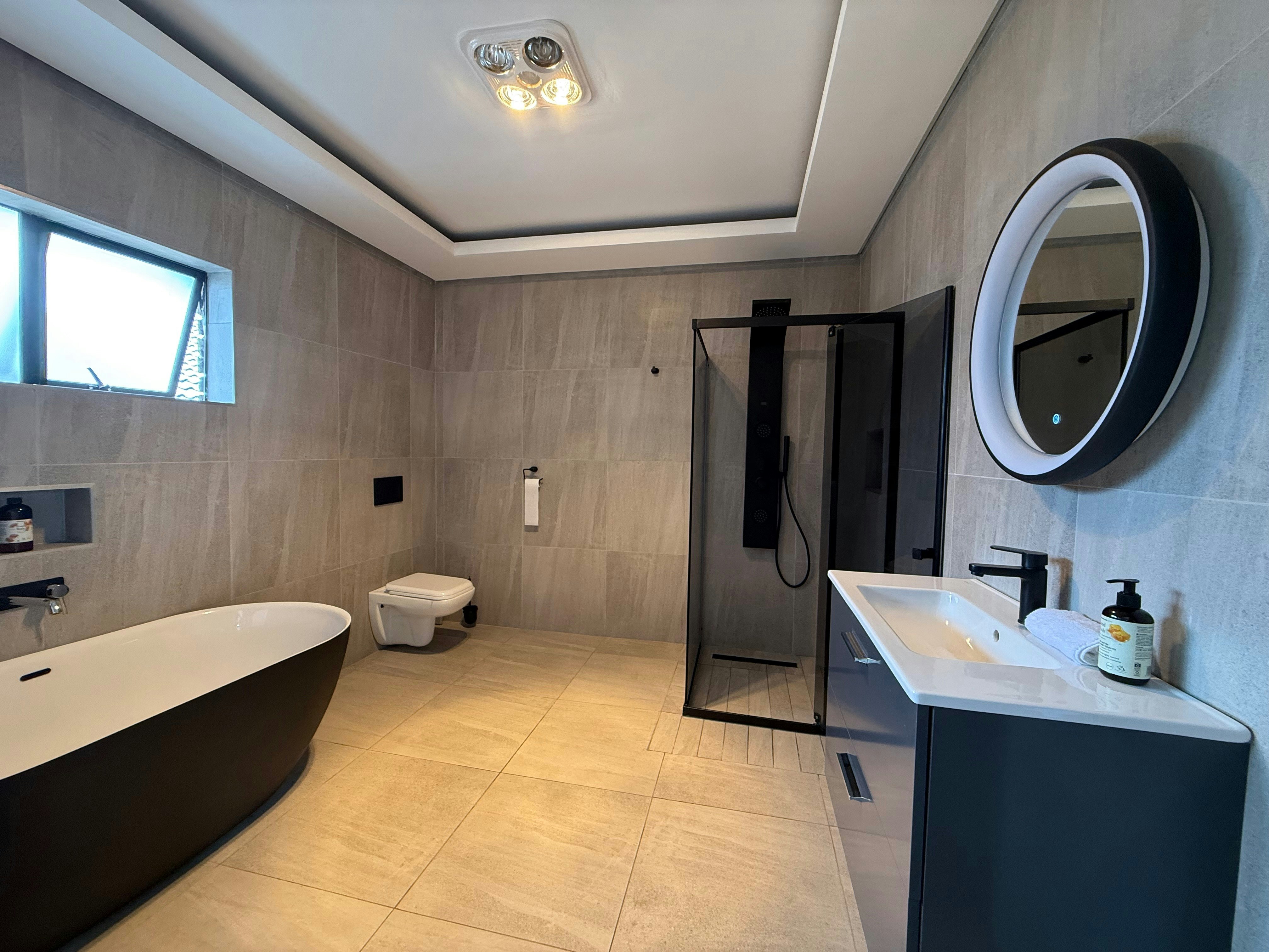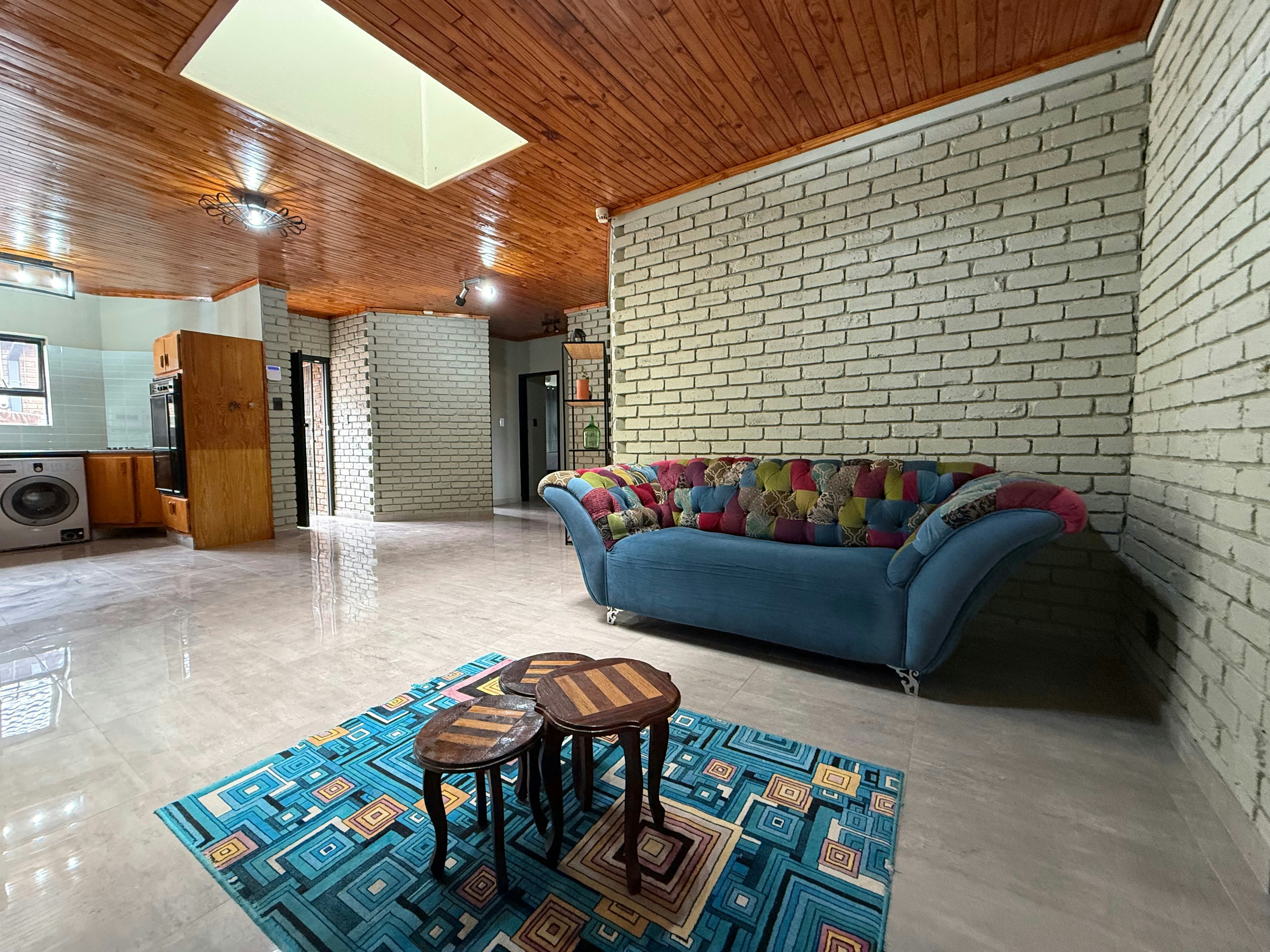 The guesthouse offers 5 well-appointed rooms, each accommodating 2 guests. Guests also have access to a shared lounge with a TV and comfortable seating, as well as a communal kitchen equipped with a fridge-freezer, stove, oven, microwave, and washing machine.