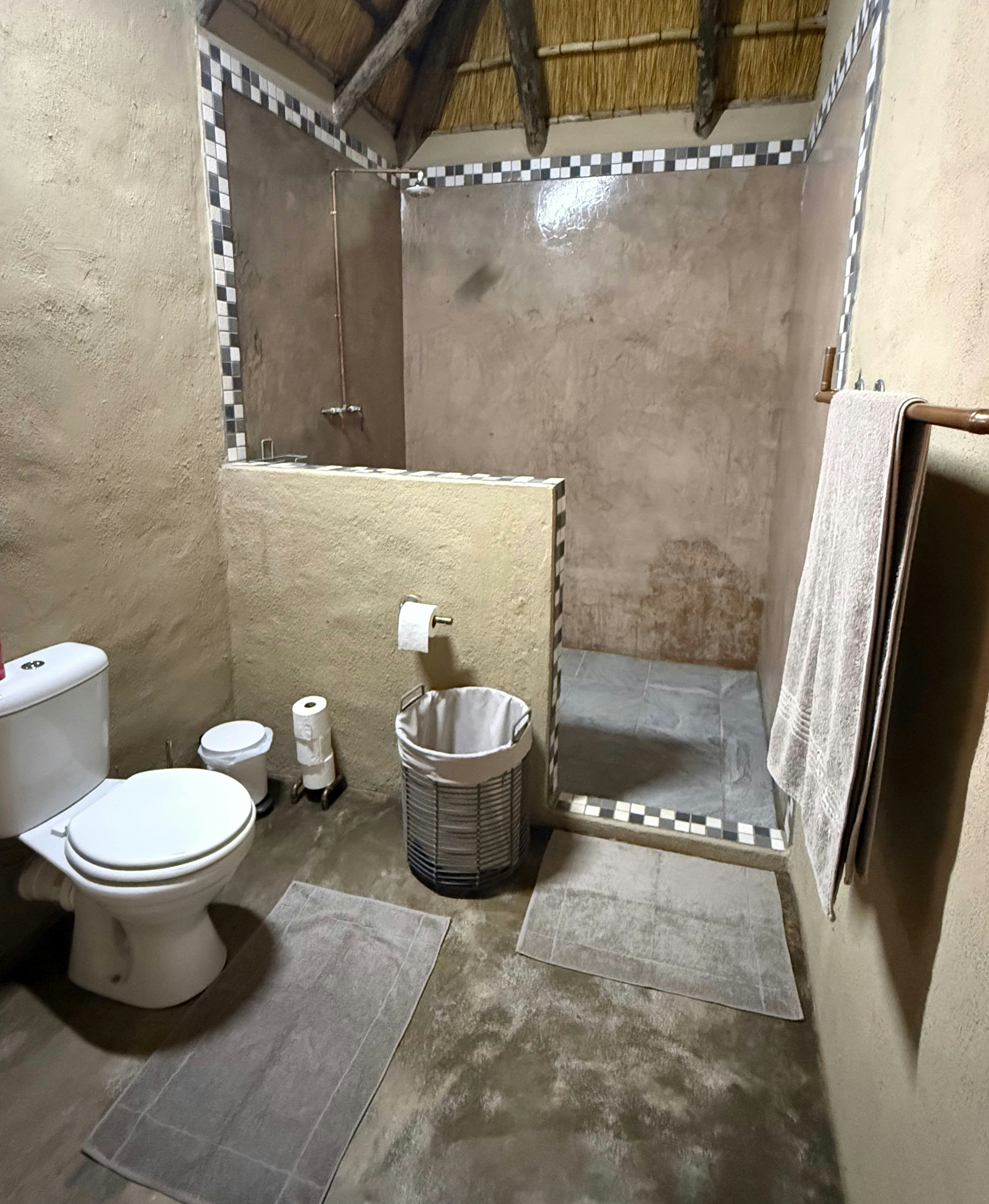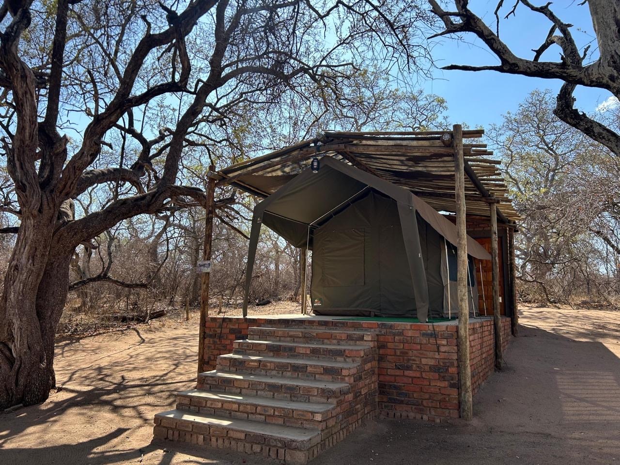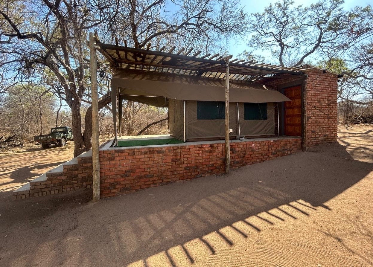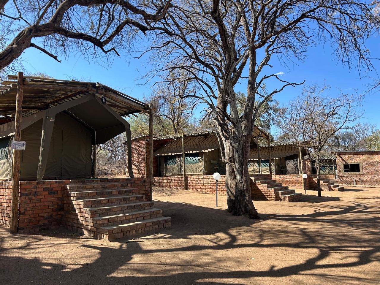 Kaalkraal Jagkamp is situated among hardwood trees, just above a dry riverbank. The camp offers 6 luxury tents, each furnished with a queen-size bed, portable air conditioner and a private outdoor bathroom fitted with a shower, toilet, and basin.
