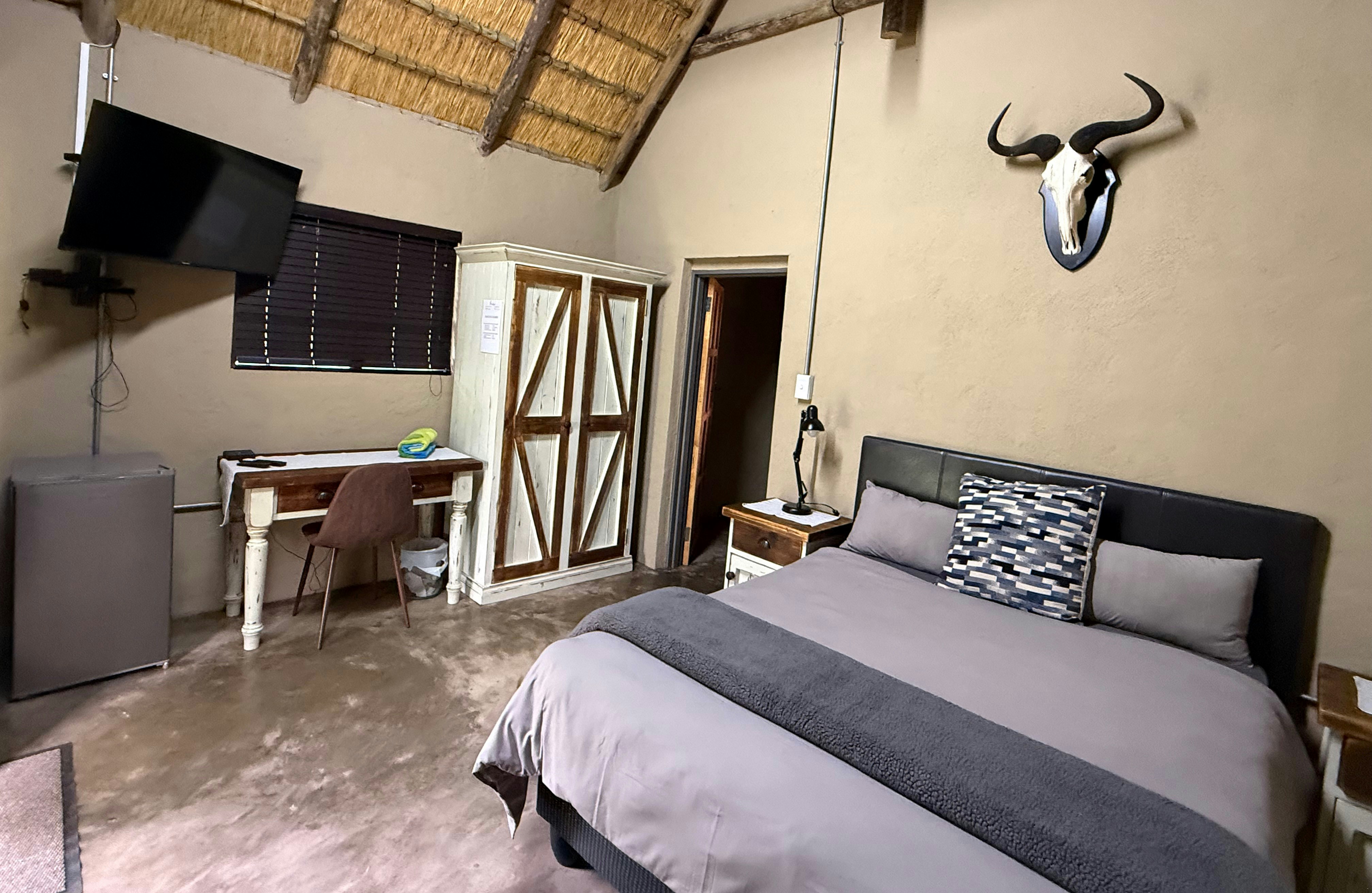 Kaalkraal Lodge features 8 separate bedrooms, each furnished with a queen-size bed and air conditioning. Each bedroom is equipped with a Smart TV, a bar fridge, and features an en-suite bathroom fitted with a shower, toilet, and basin.