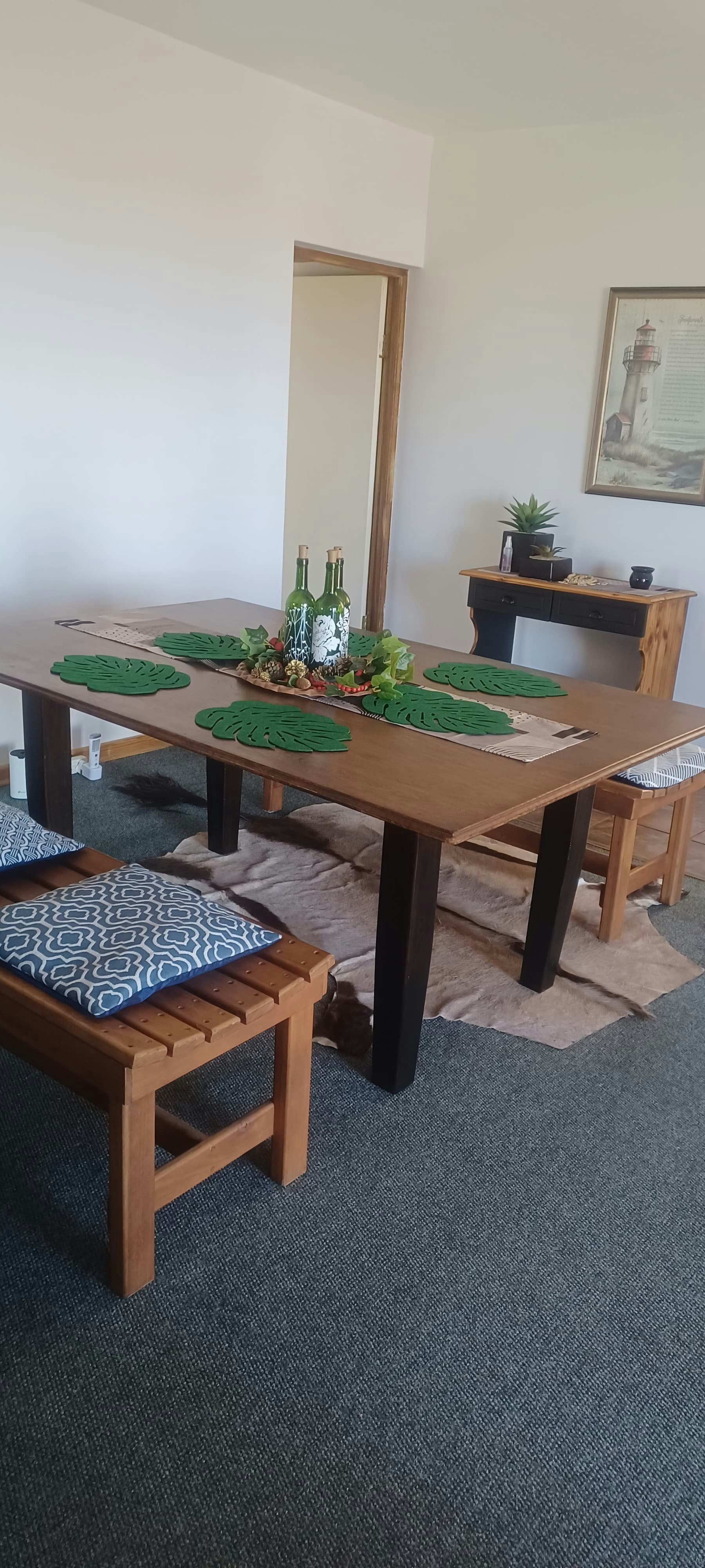 Die volledig toegeruste kombuis sluit 'n yskas, stoof, oond, mikrogolfoond, lugbraaier, ketel, broodrooster, tee- en koffiemaakgeriewe in. 'n Eetkamertafel met sitplek vir 4 vorm deel van die oopplan-leefarea, wat ook gemaklike sitplek en 'n TV insluit. Bykomende geriewe sluit WiFi in.
