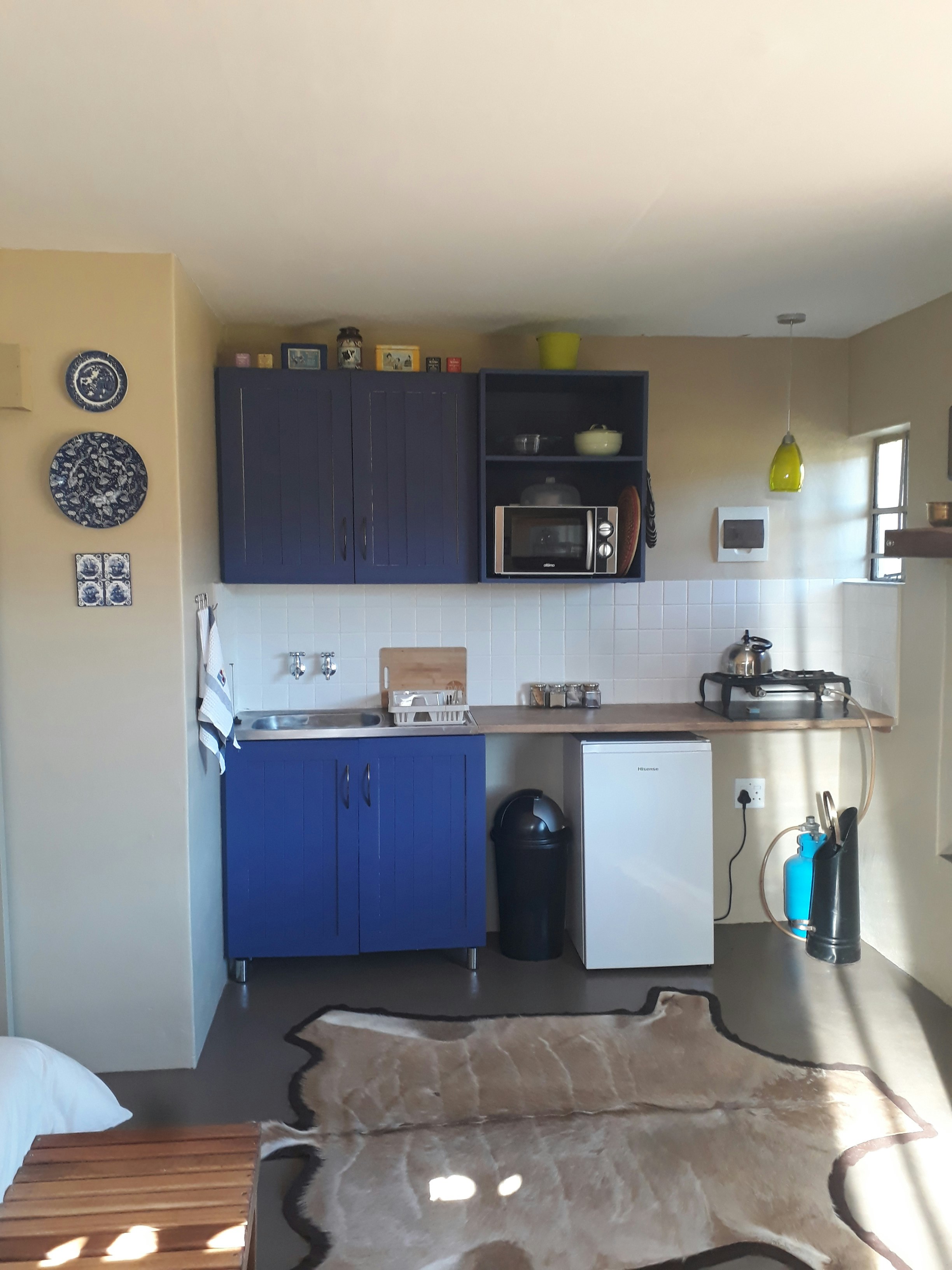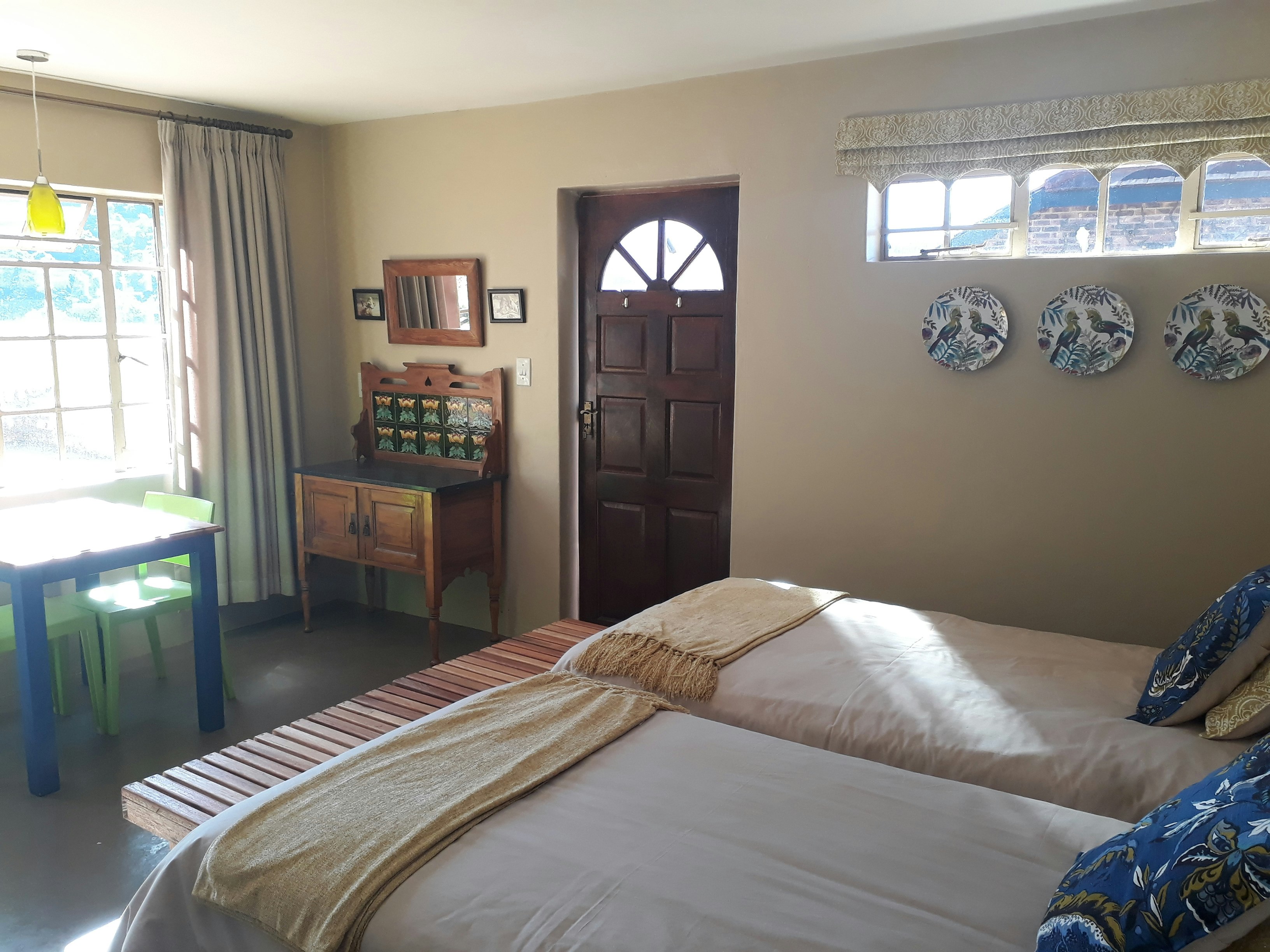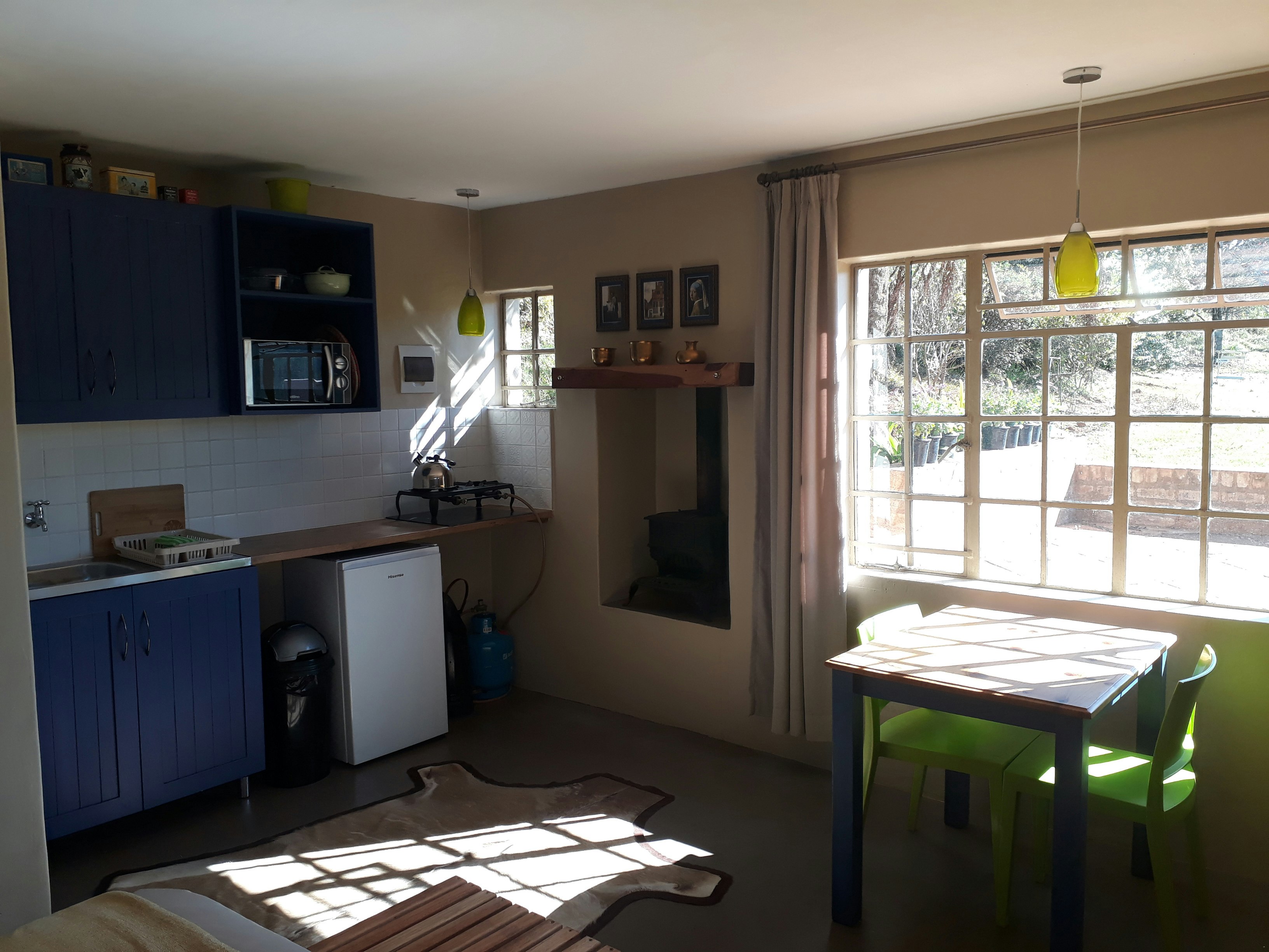 Loerie cottage is a single-room unit and can accommodate 2 guests and comprises a bedroom that is furnished with 2 single beds. Guest can request to convert this to a king-sized bed on request. The separate bathroom is fitted with a shower, washbasin and toilet. The kitchenette is equipped with a 2-plate gas stove, a fridge and a microwave. There is a dining area for 2 and a beautiful view of the indigenous forest and an authentic stove that serves as a fireplace. On top of the unit is a braai area with a panoramic view of the area. The braai area is included in the rate.