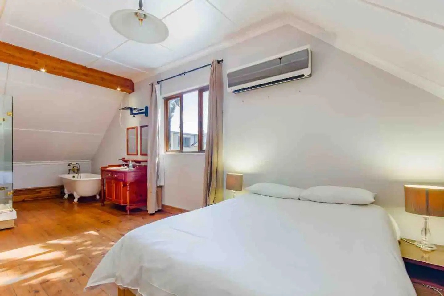 Hierdie eiendom bied slaapplek vir 15 gaste en bestaan uit 8 slaapkamers en 4 badkamers, waarvan 2 en suite is, sowel as 'n aparte pod met 'n en suite-badkamer. Elke slaapkamer in die hoofhuis is gemaklik gemeubileer met 'n dubbelbed. Twee van die badkamers is toegerus met beide 'n bad en 'n stort, terwyl die oorblywende badkamers net met 'n stort toegerus is. Die pod het 'n driekwartbed, en die badkamer is toegerus met 'n stort. Gehalte-linne en badhanddoeke word voorsien.