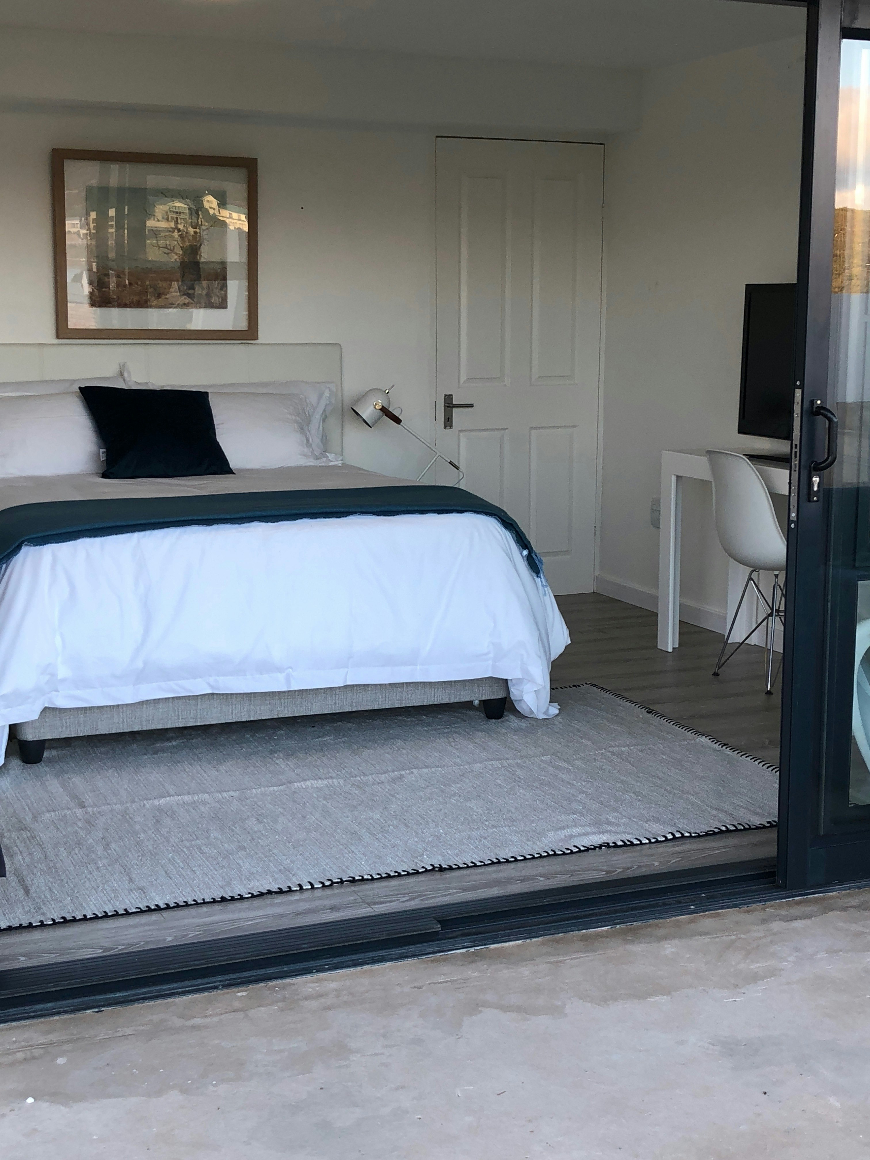 Dié slaapkamer het 'n koningingrootte-bed en 'n en suite-badkamer met 'n stort. Ander geriewe sluit gehalte-linne en -handdoeke, 'n klerekas, werkstasie, yskassie, mikrogolfoond, TV met sekere DStv-kanale en tee- en koffiemaakgeriewe in. Die kamer lei na 'n patio met 'n knus sitarea.