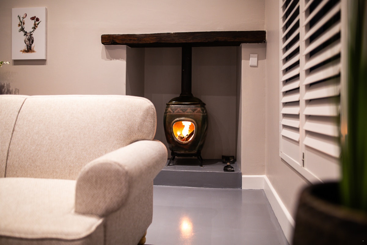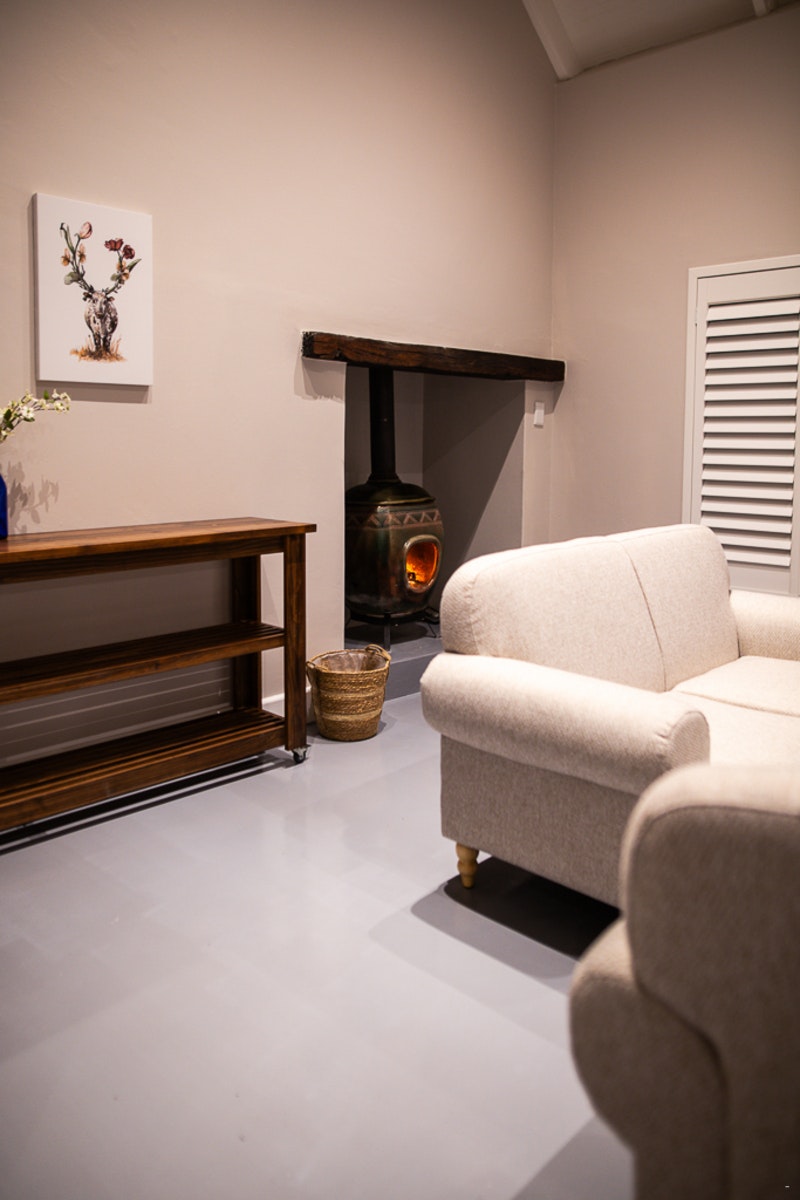 The kitchen is fully equipped for self-catering, complete with a stove, oven, fridge-freezer, microwave, as well as cutlery and crockery. In the lounge, guests will find comfortable seating, a fireplace, and a TV. The separate scullery includes a washing machine, dishwasher, and tumble dryer. Wi-Fi access is also available. Please note that there is an inverter available for the lights, TV and Wi-Fi.
