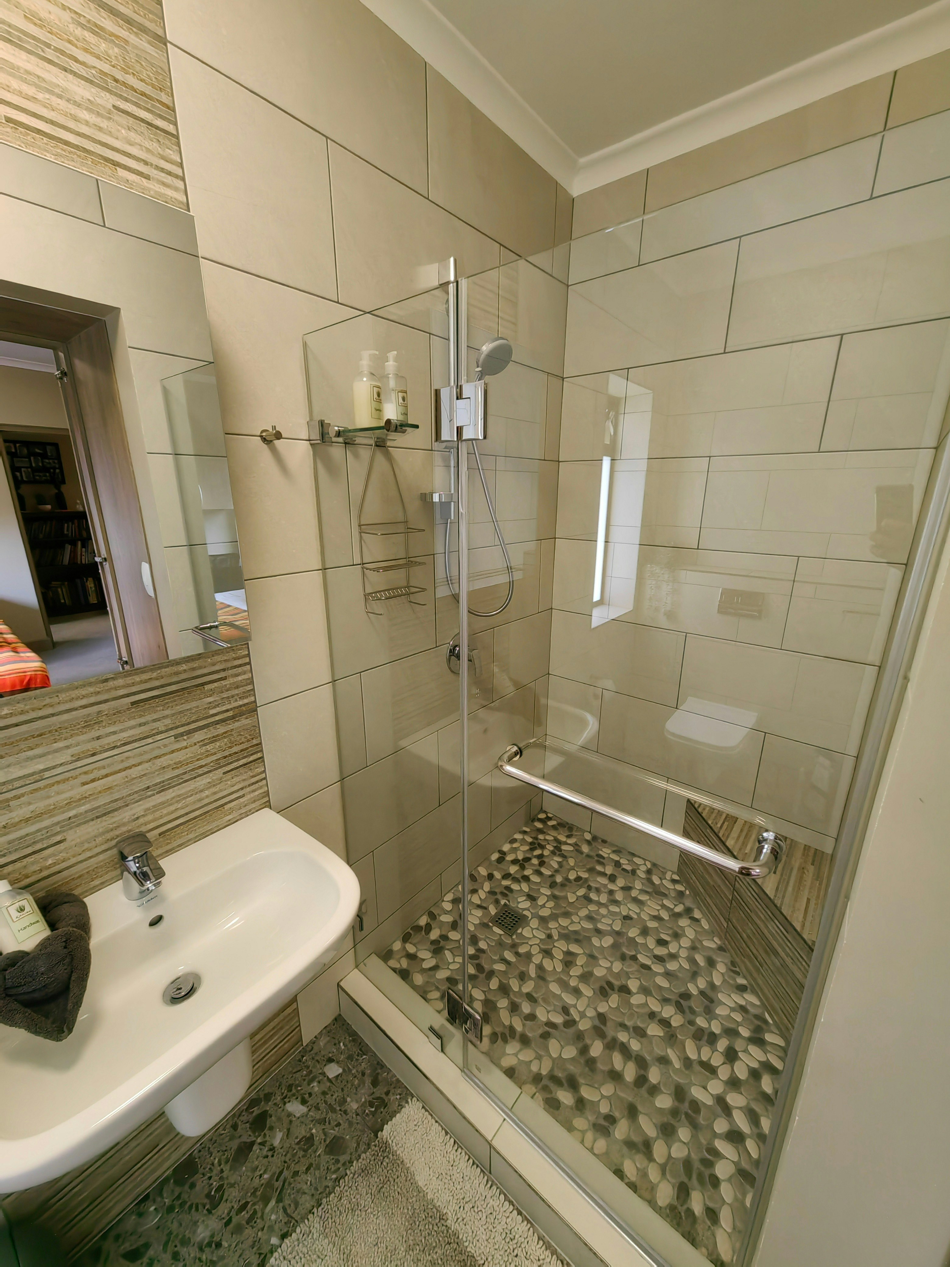 The property offers three self-catering units. Each unit has a queen-size bed, an en-suite bathroom with Hans Grohe taps, a large shower, basin, and toilet. The kitchen has granite countertops and is equipped with a fridge-freezer, induction stove, microwave, electric frying pan, kettle, toaster, and kitchenware. The living area includes a flat-screen smart TV and Wi-Fi. Each unit has private braai facilities.
