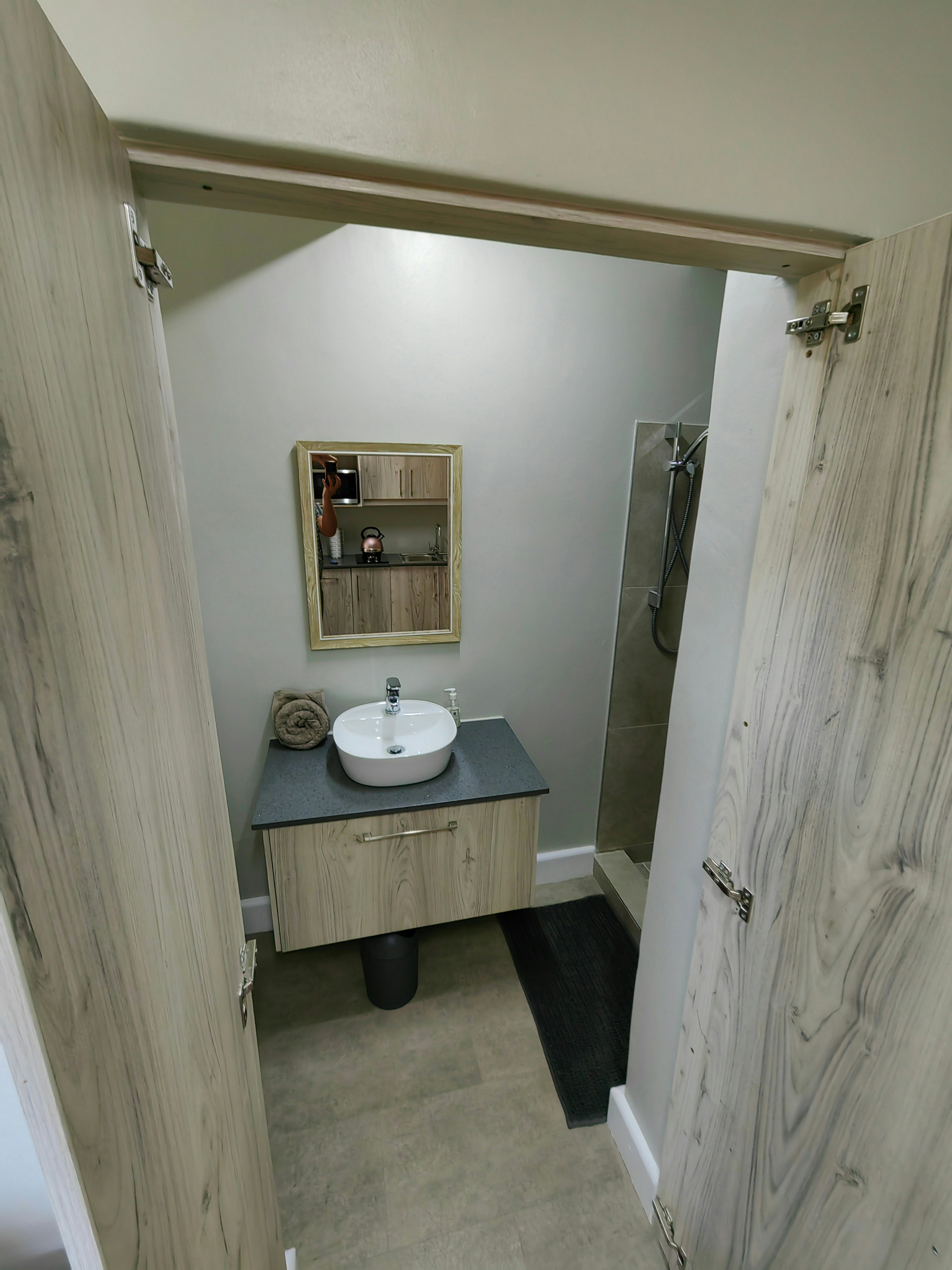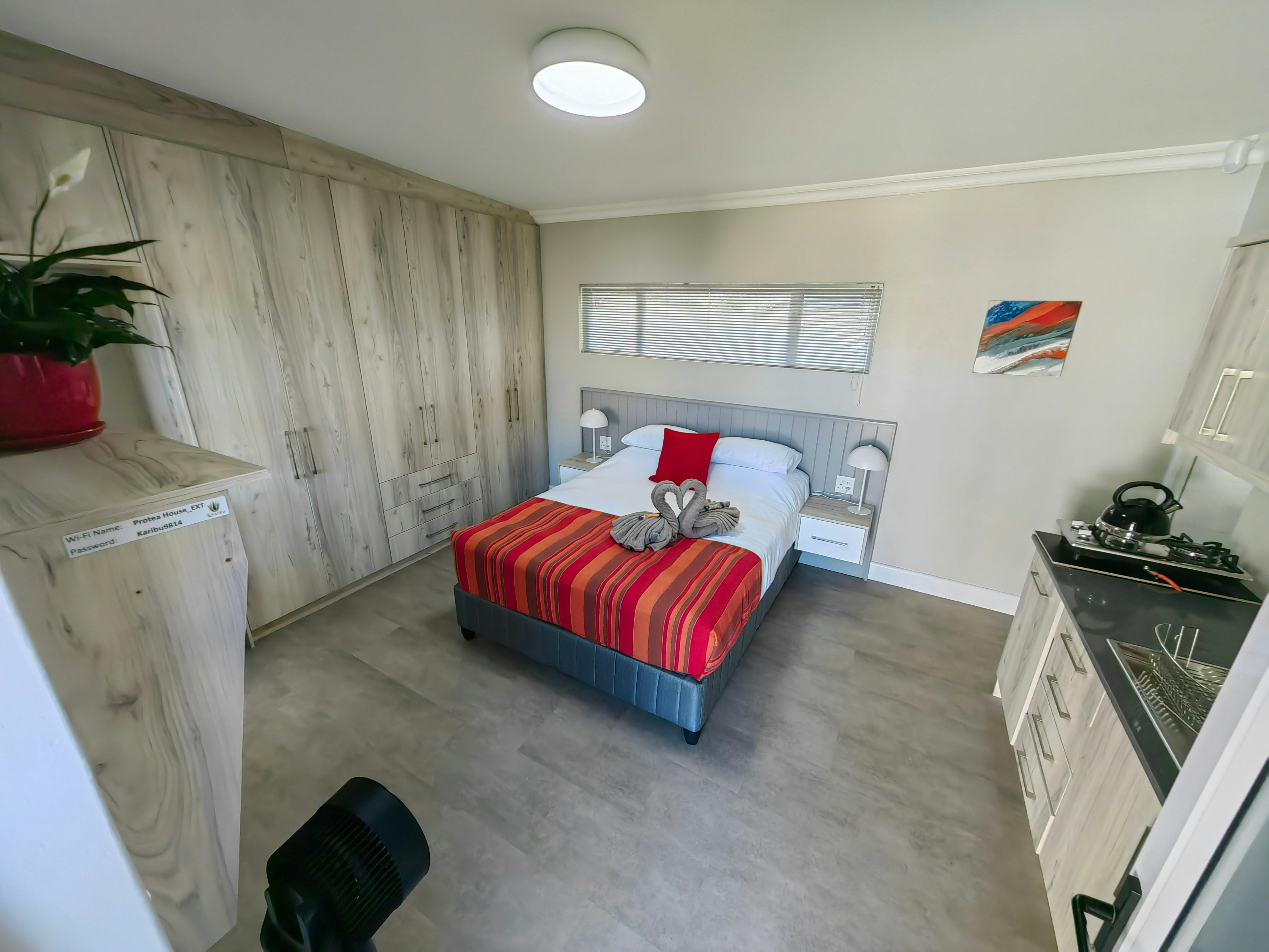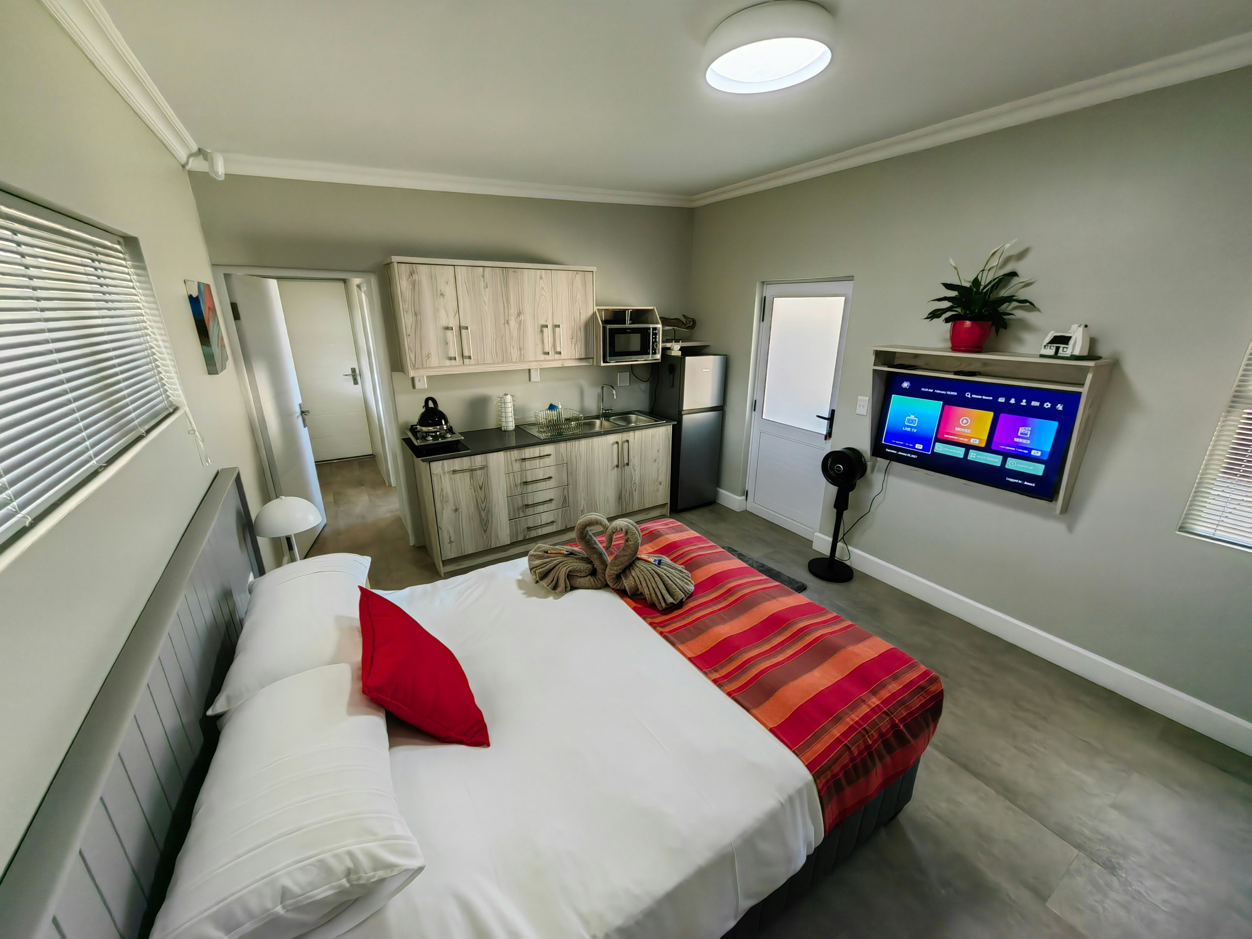 The property offers three self-catering units. Each unit has a queen-size bed, an en-suite bathroom with Hans Grohe taps, a large shower, basin, and toilet. The kitchen has granite countertops and is equipped with a fridge-freezer, induction stove, microwave, electric frying pan, kettle, toaster, and kitchenware. The living area includes a flat-screen smart TV and Wi-Fi. Each unit has private braai facilities.