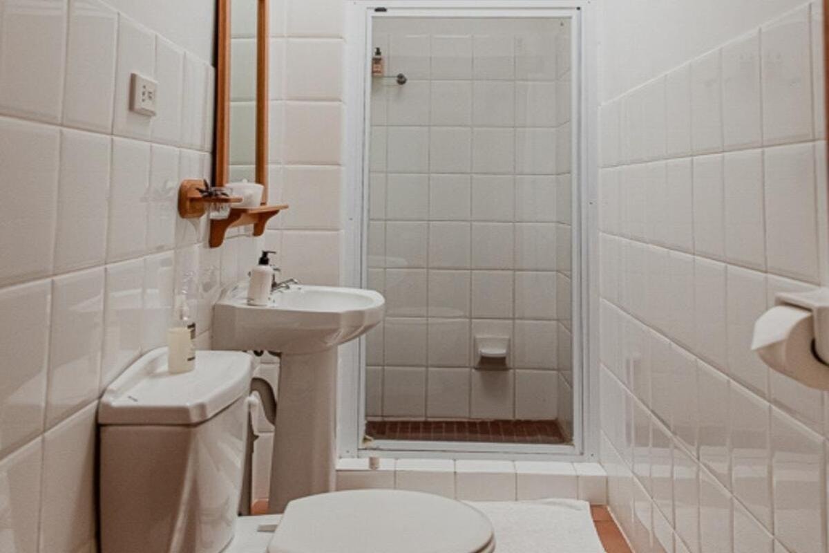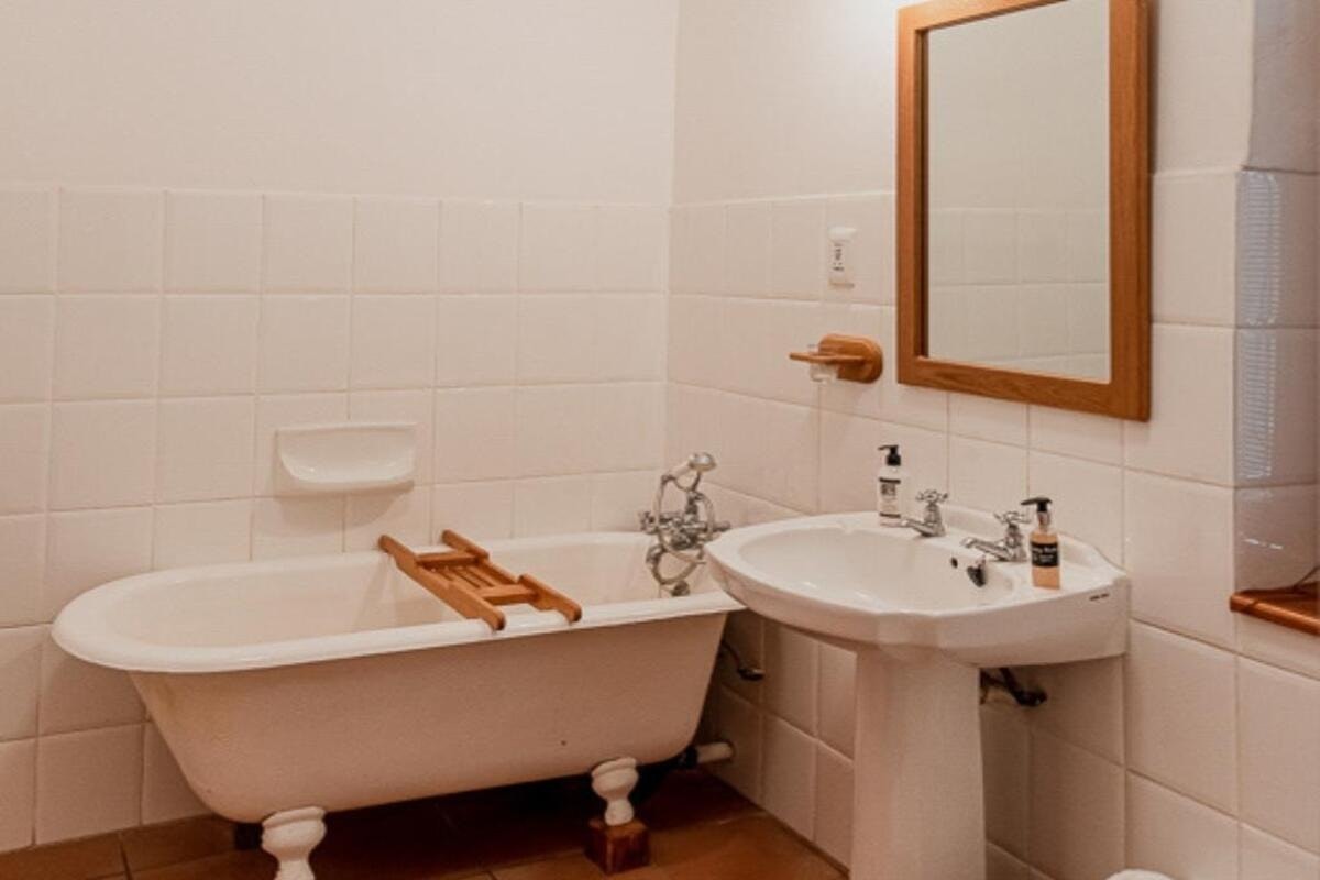 Guests share access to a communal self-catering kitchen, fully equipped with essential appliances and utensils for meal preparation. Breakfast is available upon request, and a communal honesty bar is located in the kitchen, where guests pay immediately in cash for items taken.