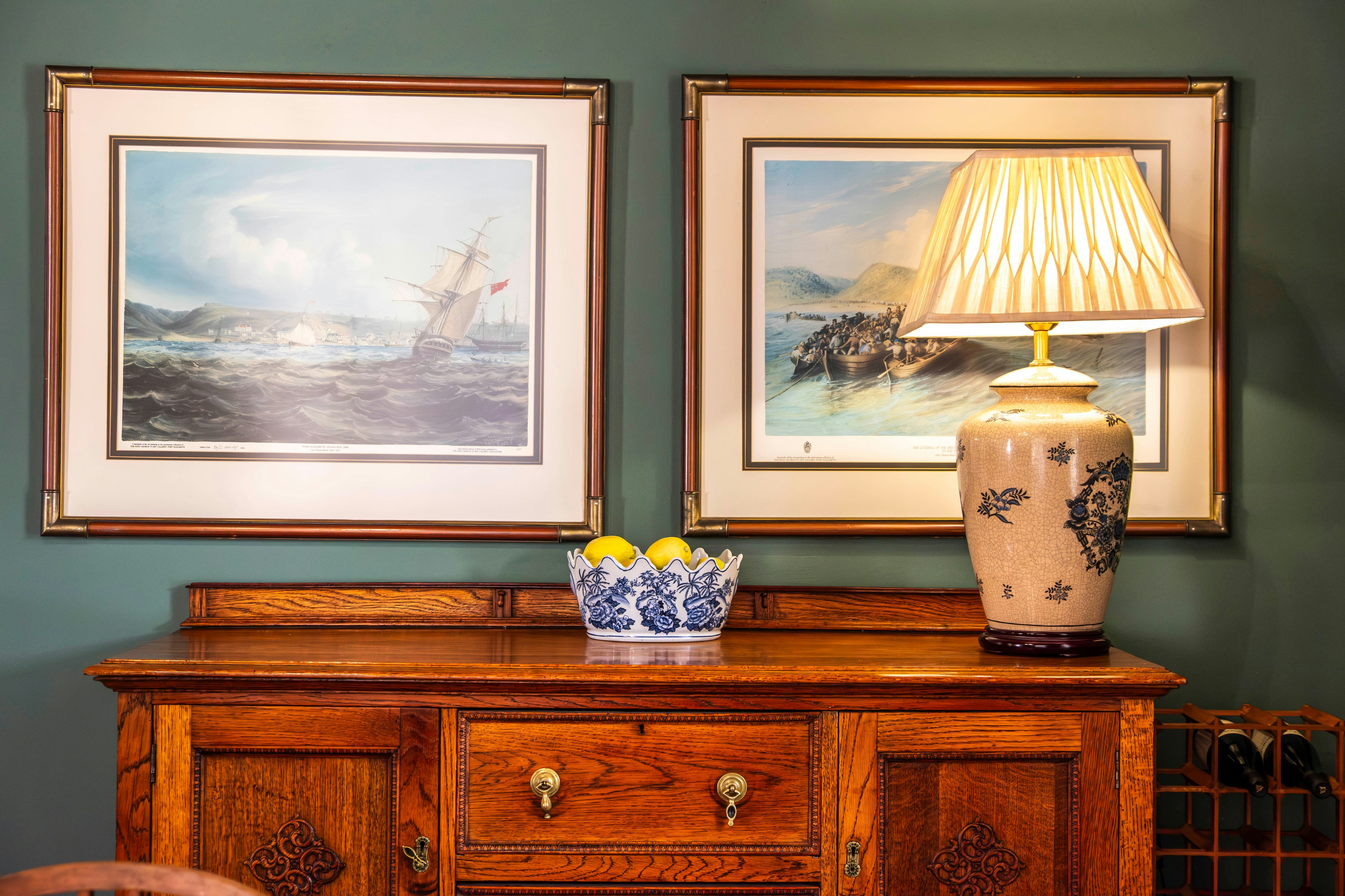Die kombuis bied eetgerei, breekware, mikrogolfoond, eetgerei, ketel, broodrooster, yskas-vrieskas, met tee- en koffiemaakgeriewe. Die leefarea is gemeubileer met 'n etenstafel, gemaklike stoele, 'n kaggel en leesstof, die perfekte plek om te lees en te ontspan.