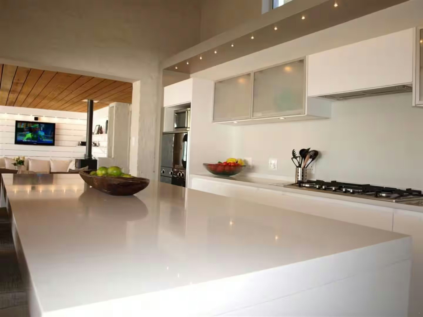 Die oopplan-leefarea beskik oor 'n kombuis wat volledig toegerus is met 'n stoof, oond, mikrogolfoond, yskas-vrieskas, eetgerei en breekware, sowel as 'n ontbyttoonbank met stoele. 'n Wasmasjien en tuimeldroër is ook beskikbaar. Aangrensend aan die kombuis is 'n eetkamertafel met 10 sitplekke en 'n sitkamer met gemaklike rusbanke, 'n kaggel en 'n TV. Gratis WiFi is regdeur die huis beskikbaar.