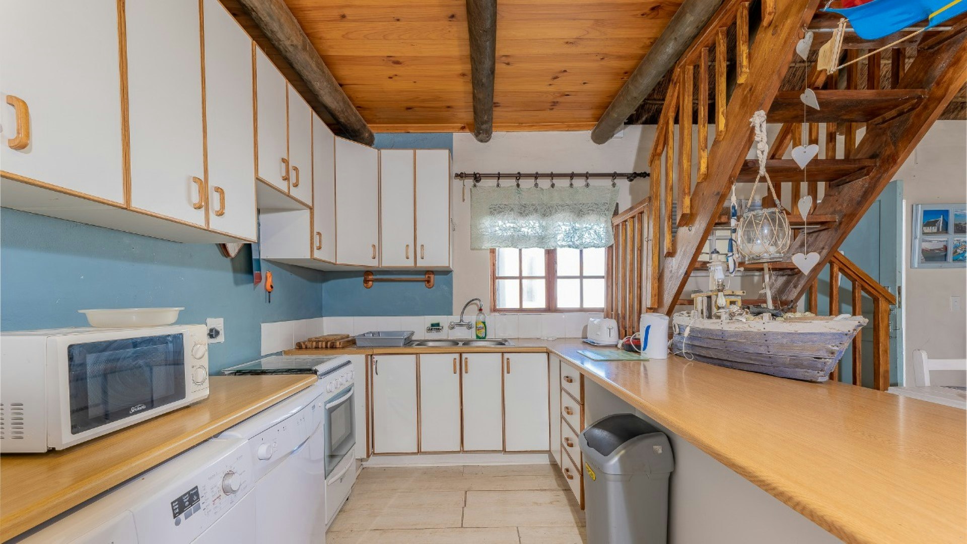 The main living area features an open-plan design with a kitchen, dining and living area. The kitchen is fully equipped with a gas stove, electric oven, microwave, fridge-freezer, cutlery and crockery as well as tea- and coffee-making facilities. A washing machine and a dishwasher are available.