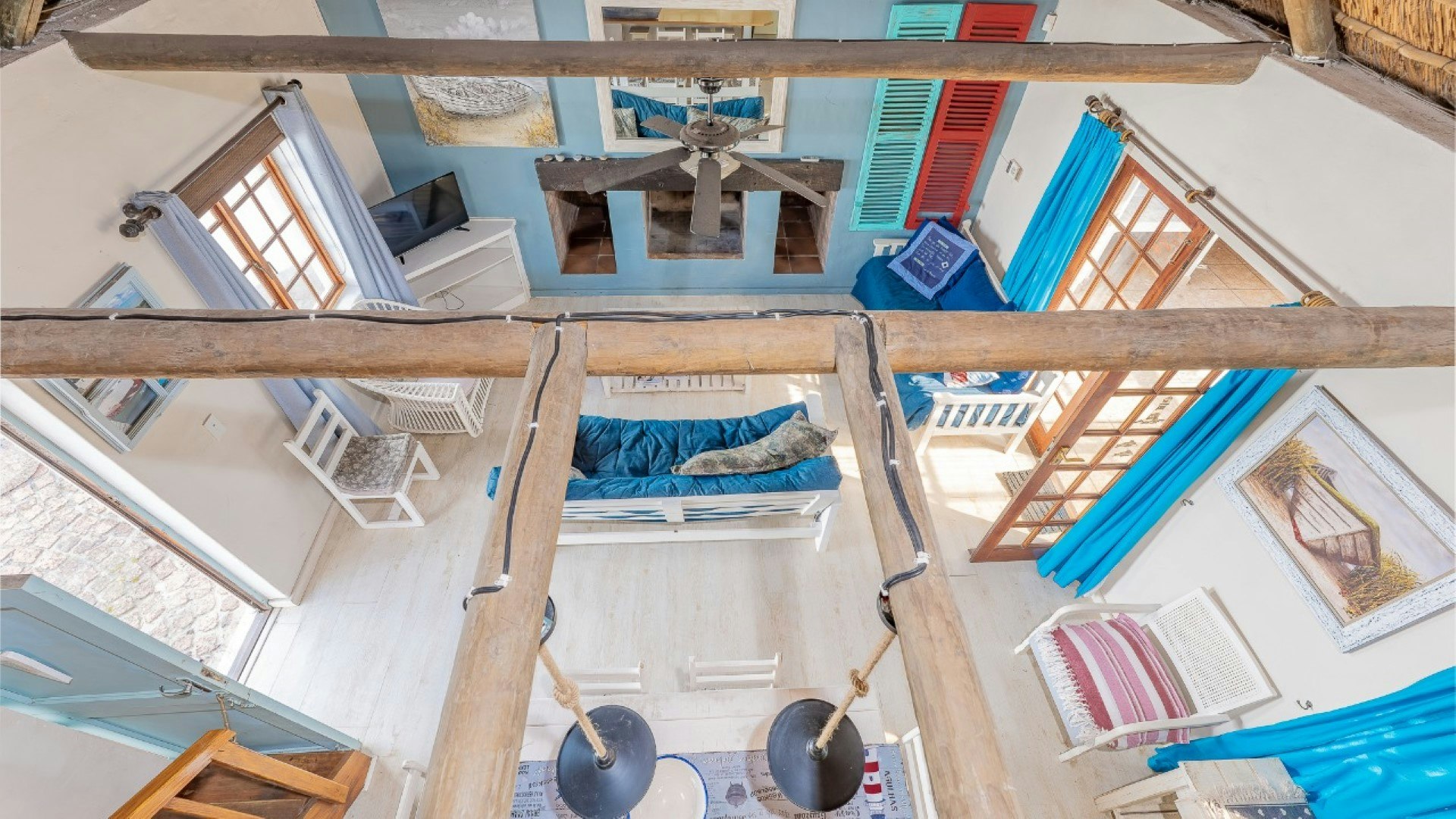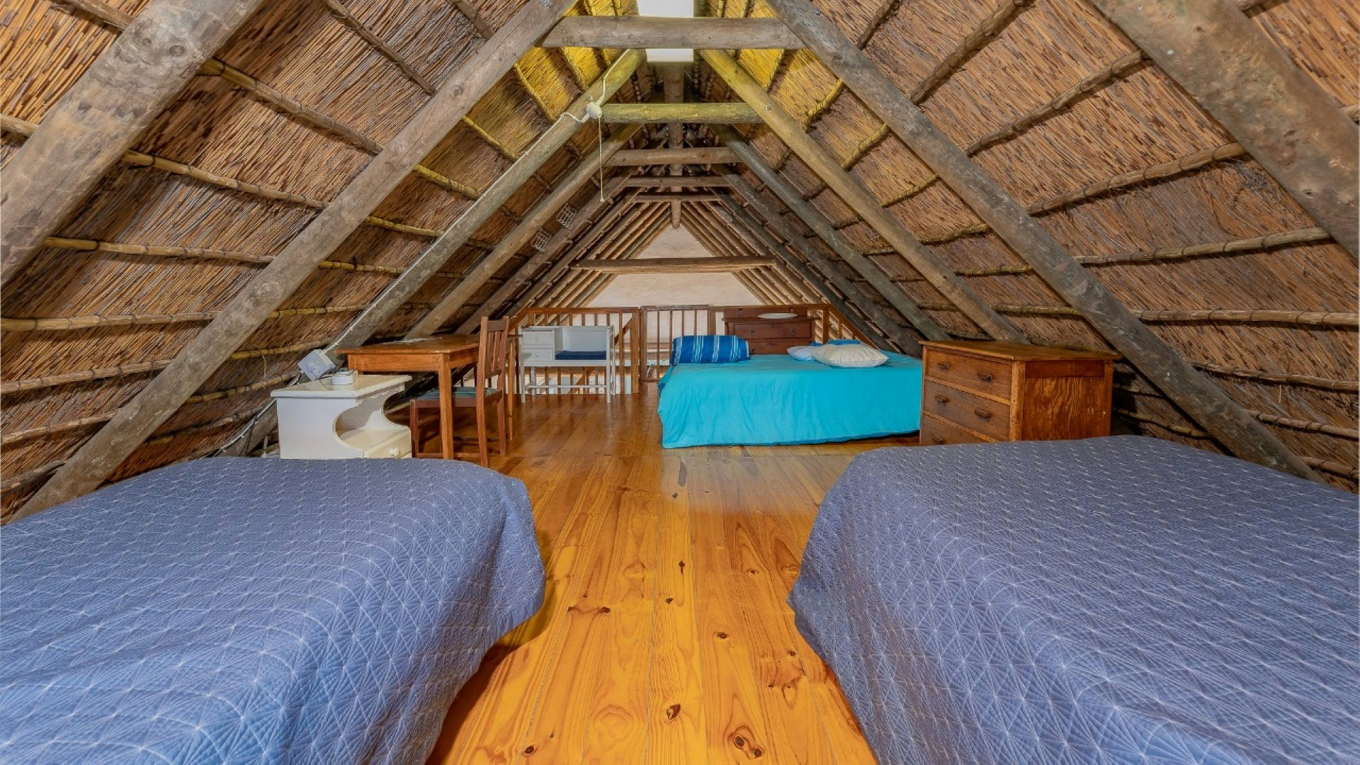 This home can accommodate 6 guests at a time and comprises 2 bedrooms, 2 bathrooms and a loft area. The main bedroom is furnished with a double bed and an open-plan en-suite bathroom fitted with a shower, washbasin and toilet. The second bedroom also has a double bed, while the loft area contains 2 single beds. A shower is also available in the second bathroom.