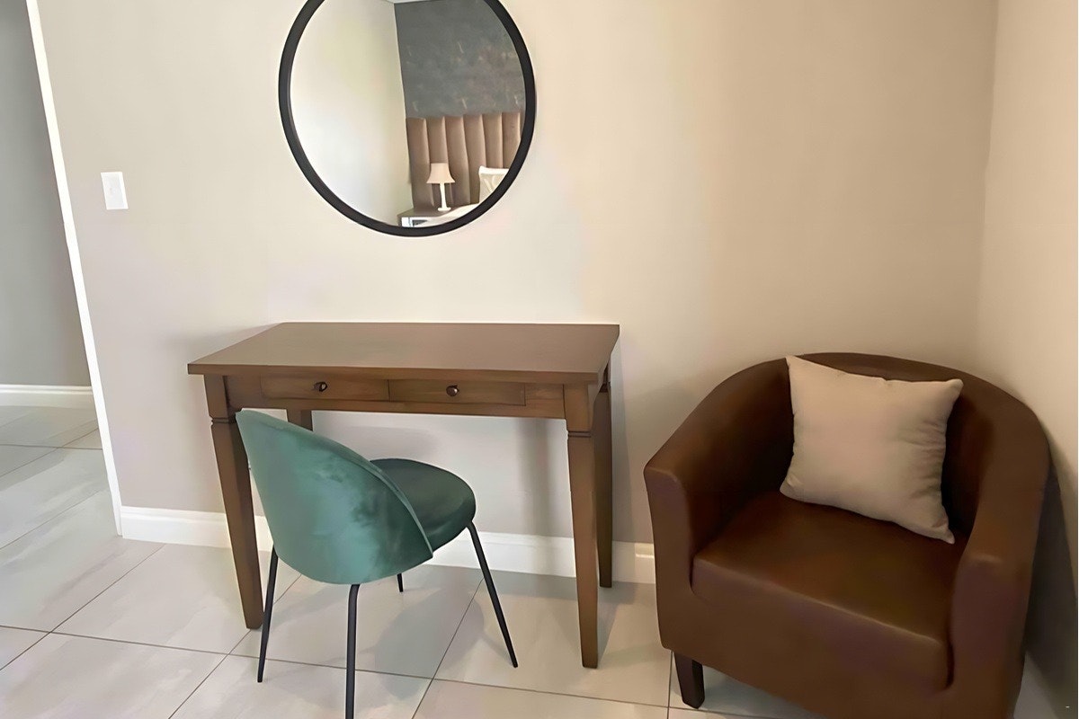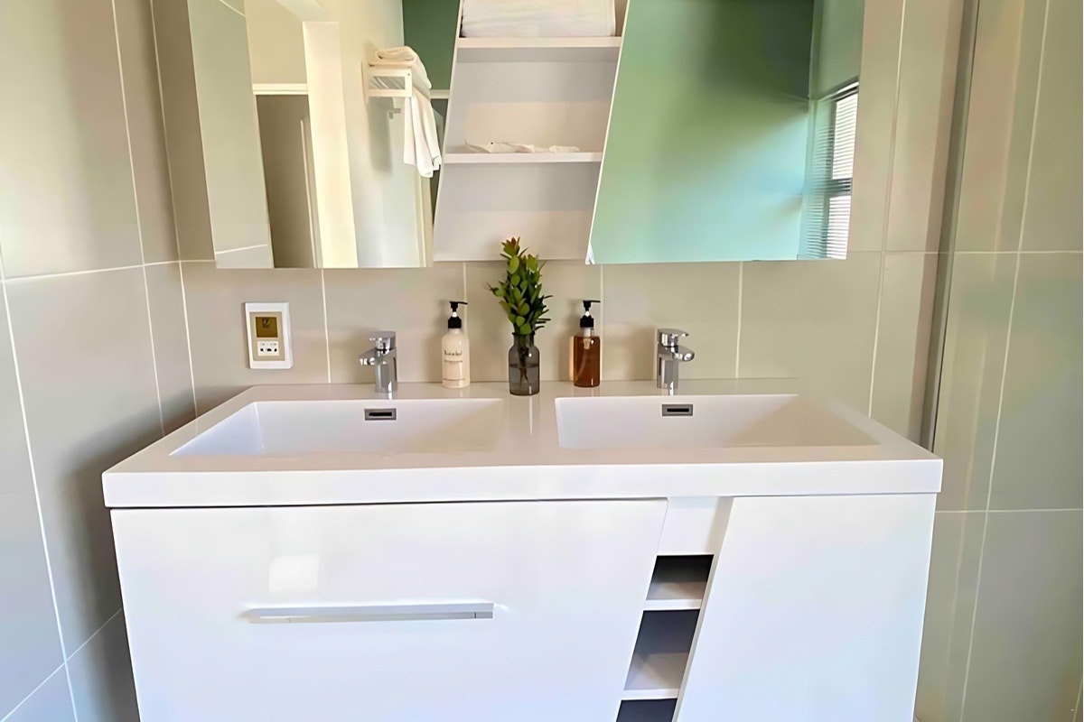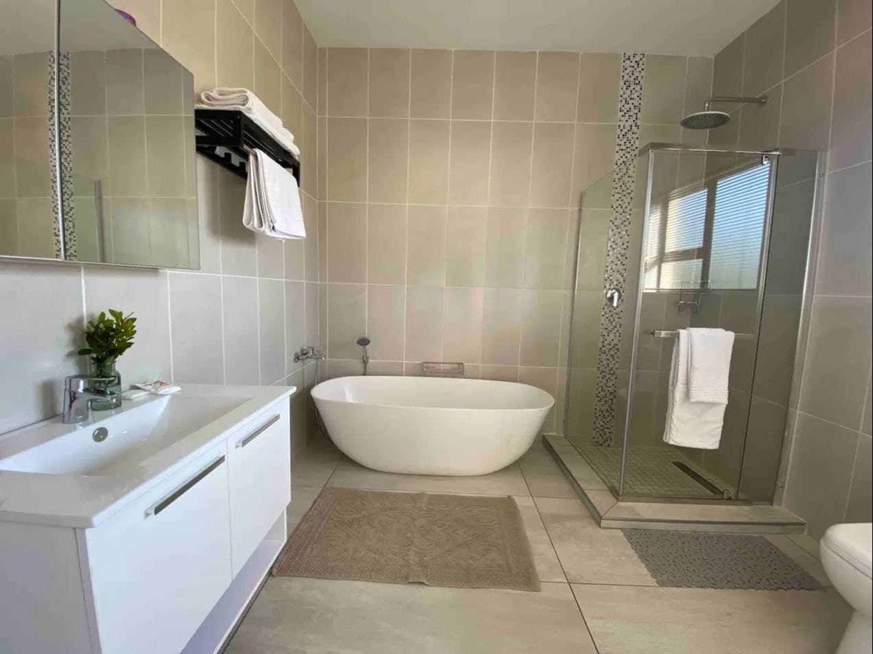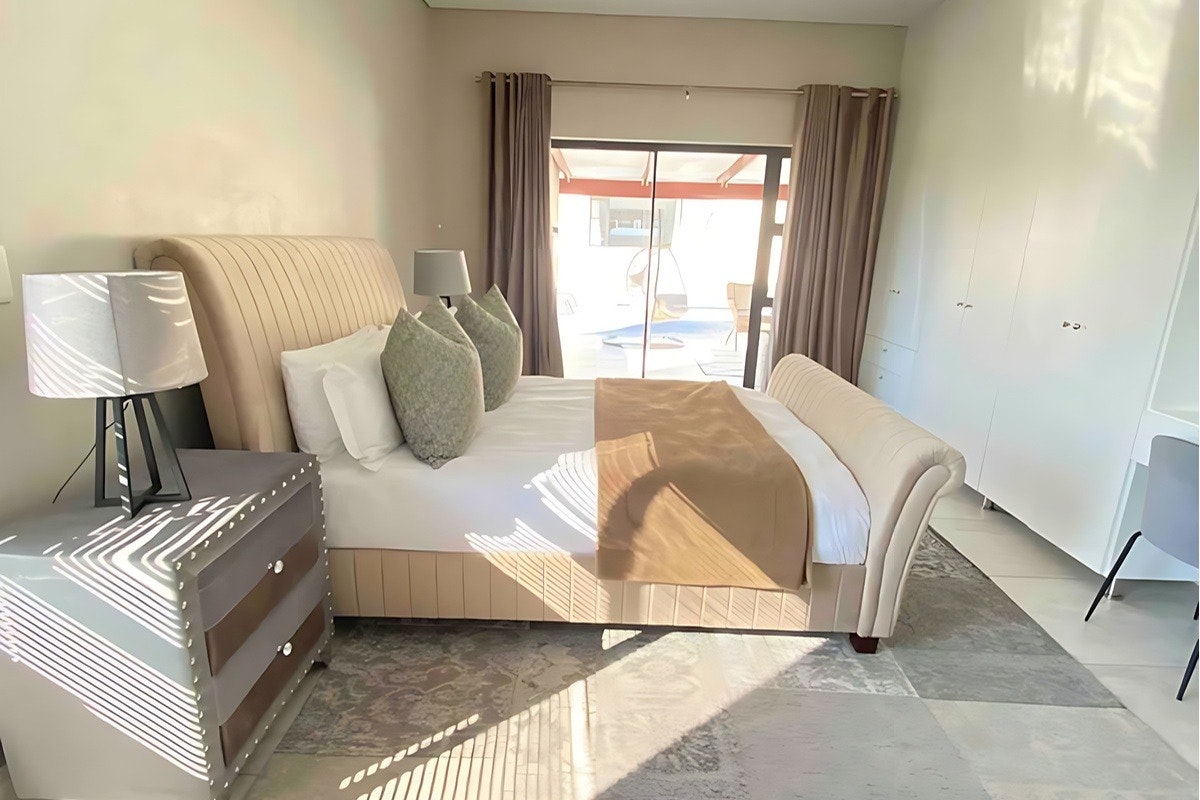 The home boasts a fully equipped kitchen that includes a 4-plate gas stove, 2-plate electric stove, electric oven, microwave, kettle, toaster, fridge-freezer, dishwasher, and washing machine. The lounge and dining area have comfortable seating for guests to dine and relax. For guests' entertainment, a TV with DStv channels, streaming channels, and access to free Wi-Fi is available.