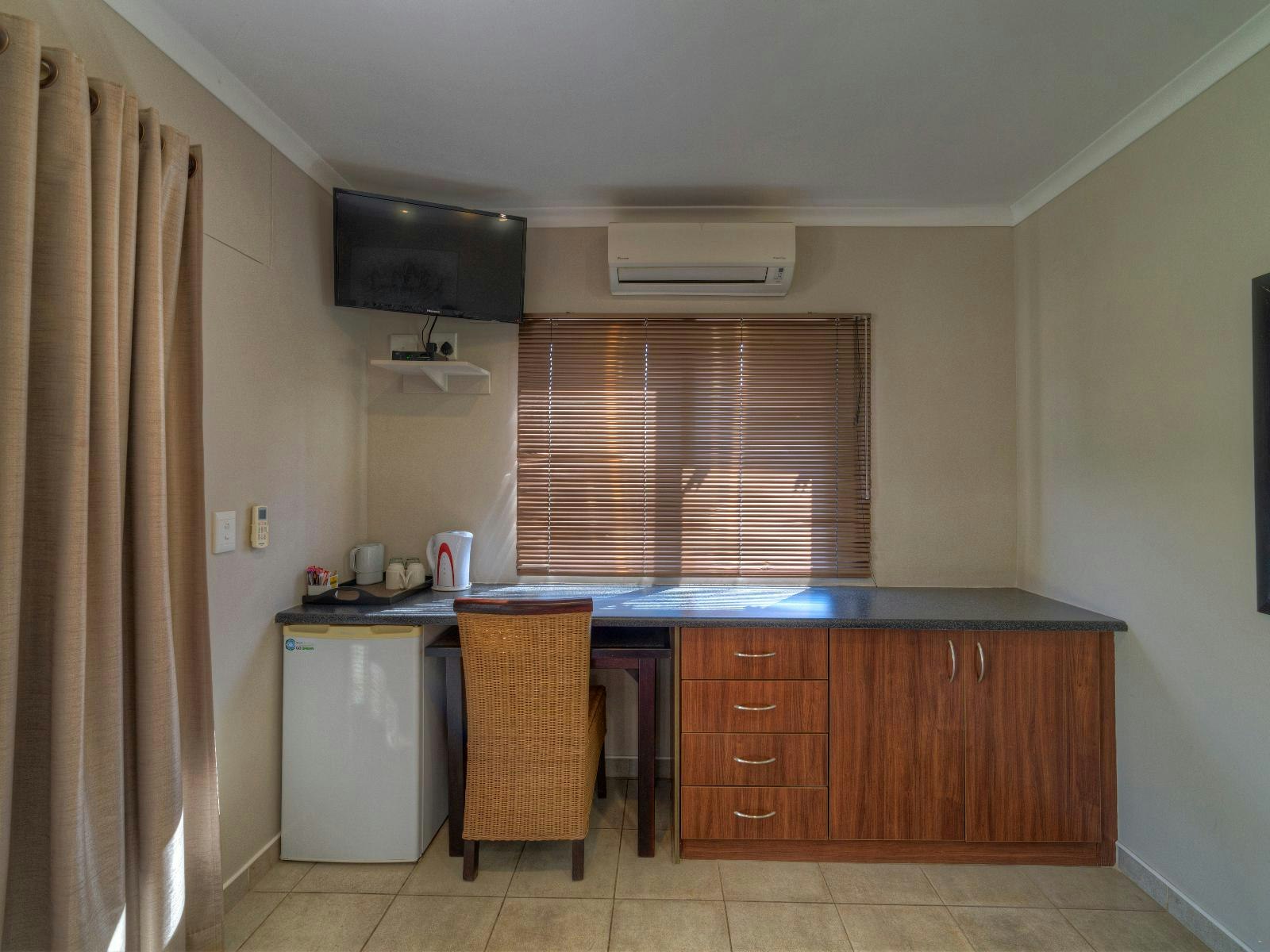 A shower, washbasin and toilet are available in each en-suite bathroom. All linen and bath towels are provided; however, guests are required to bring their own swimming towels. Other in-room amenities include a workstation, free Wi-Fi, a bar fridge, a tea and coffee tray as well as a TV with selected DStv channels. These rooms open onto a patio with views of the garden and pool area.