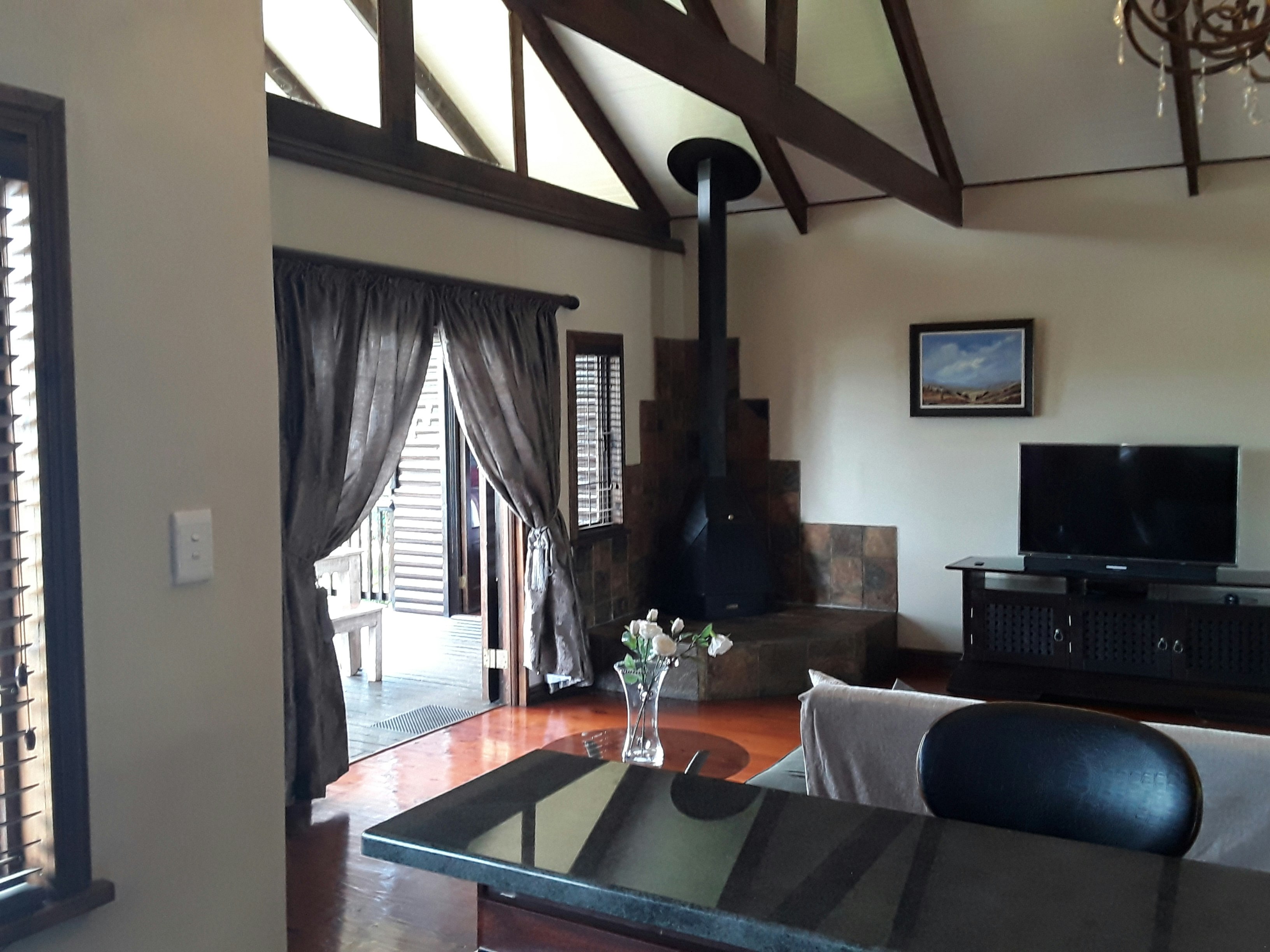 Die oopplan-kombuis in die hoofhuis is met 'n yskas, mikrogolf, oond en stoof en ander geriewe toegerus. Die leefarea het 'n ingeboude kroeg-area, banke en 'n etenstafel. Dié area lei na 'n dek met mooi uitsigte oor die vallei en trappe wat na die vuurput en braai-area lei.