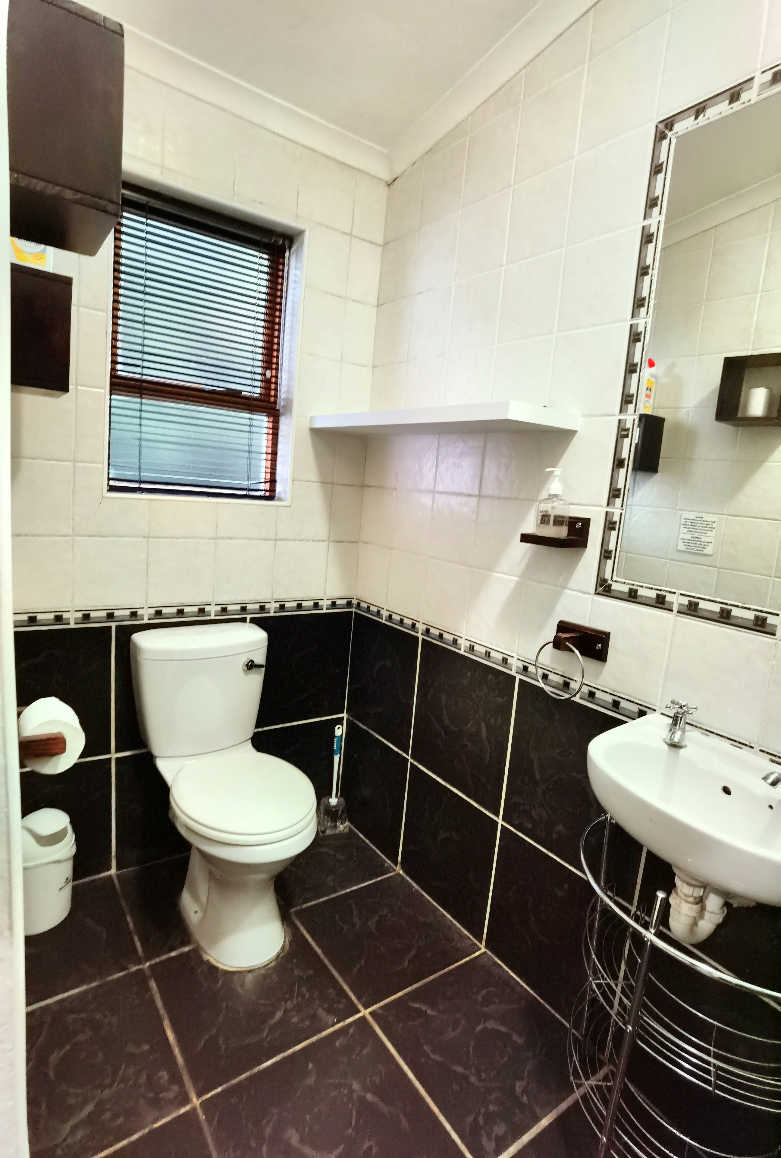 The kitchen is well-equipped for self-catering with a gas stove and electric oven, fridge-freezer, dishwasher, microwave, kettle, toaster, and cutlery and crockery. The dining area contains an 8-seater dining table and chairs. The lounge offers seating and a flat-screen TV with full premium DSTV. There is NO Wi-Fi available.