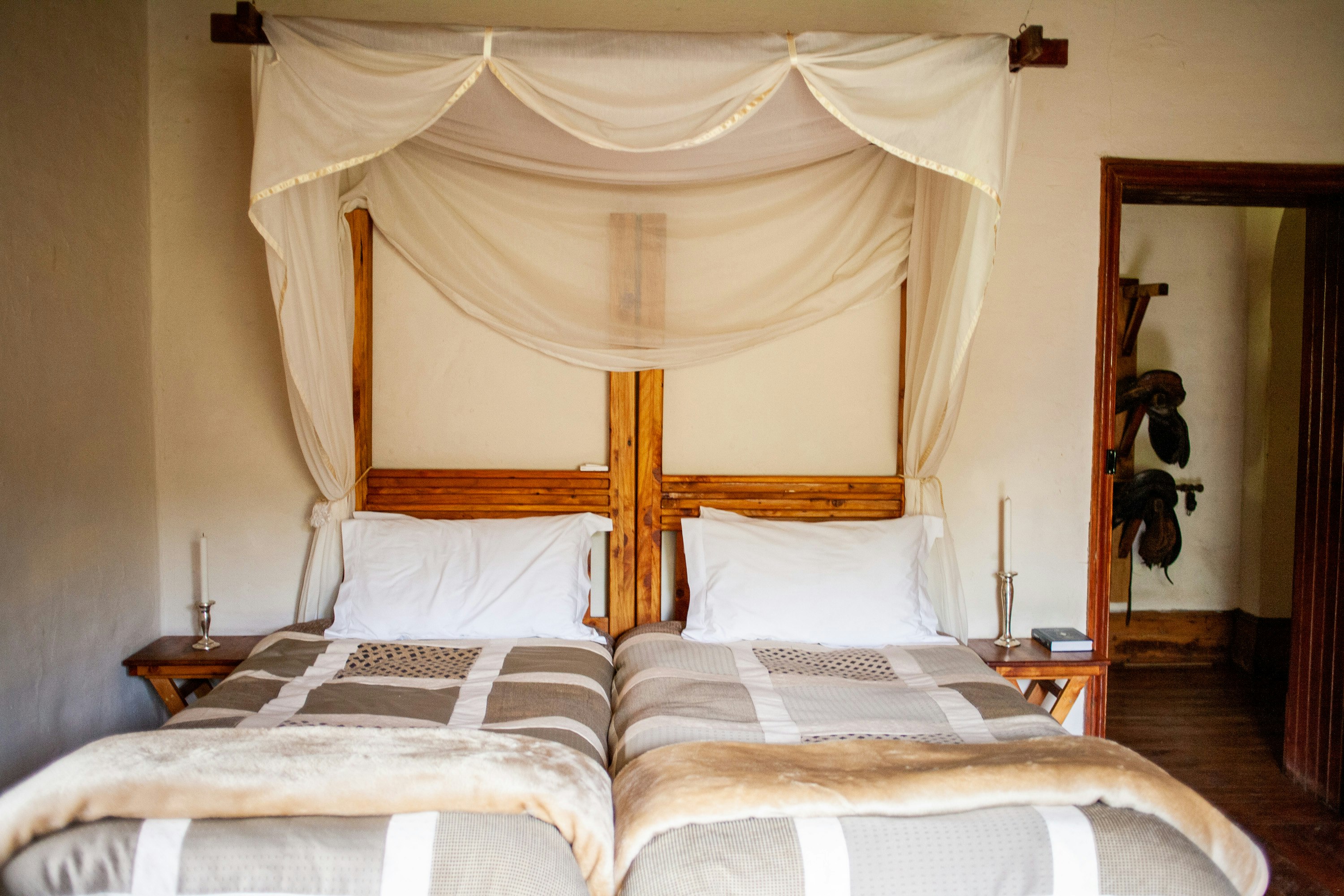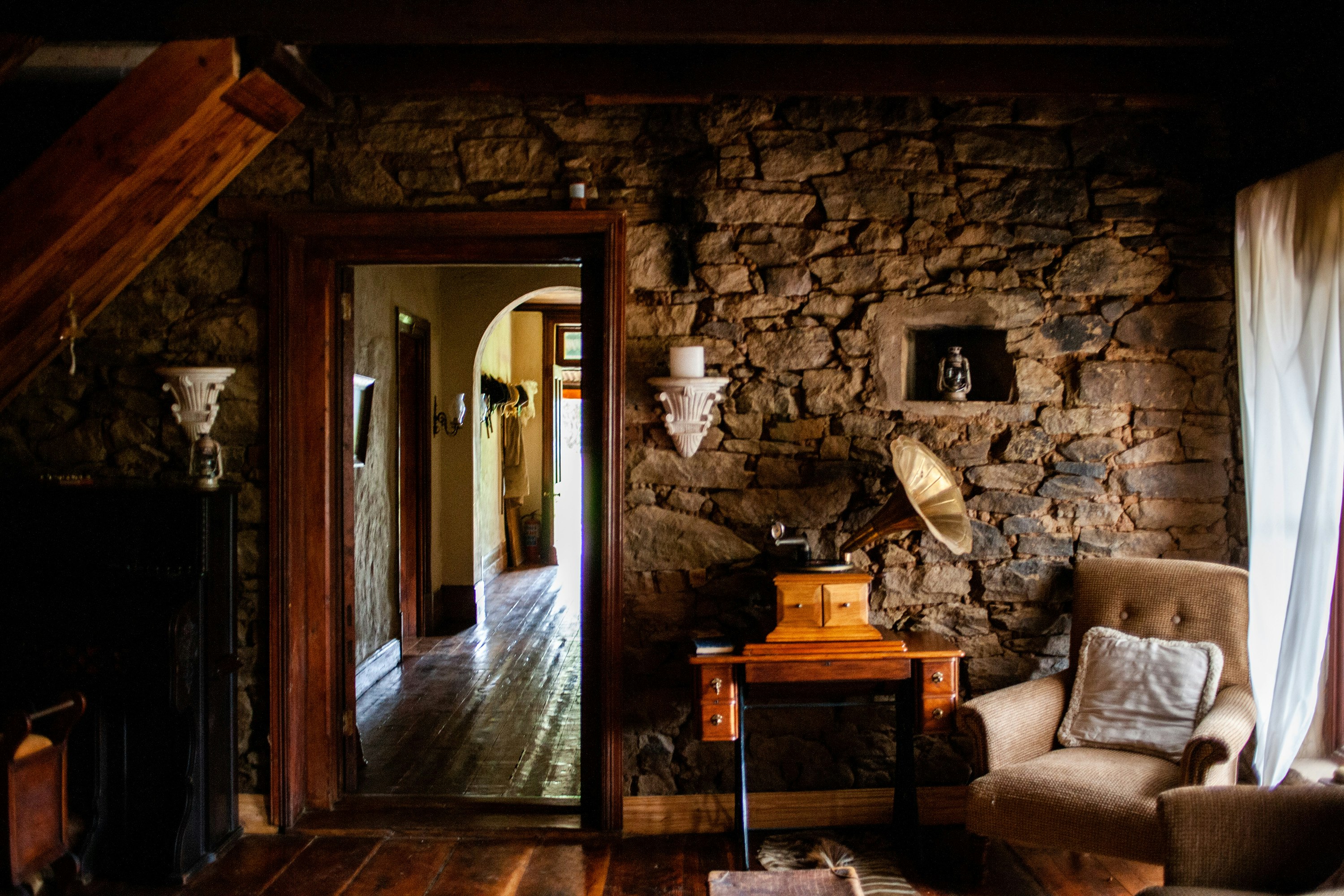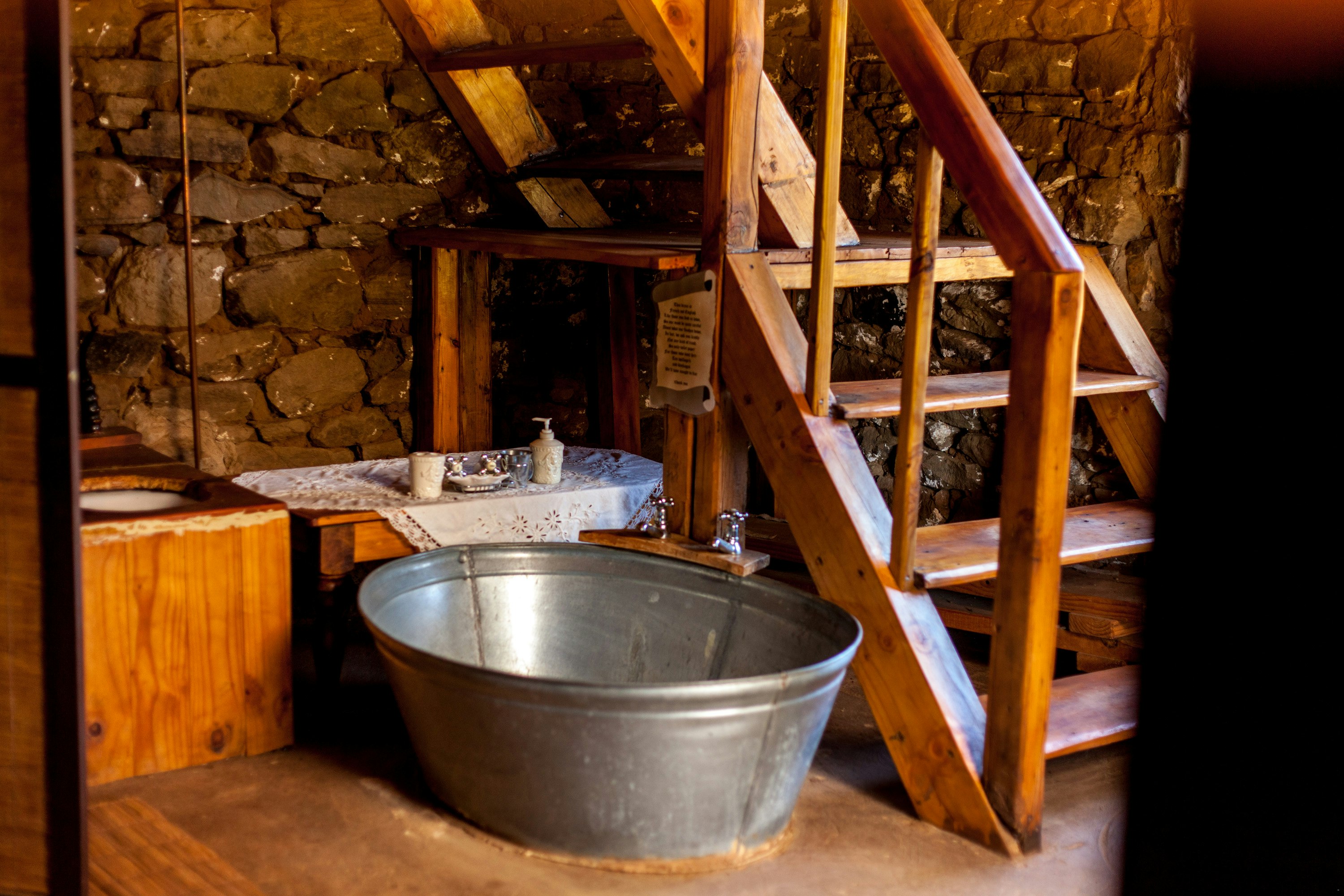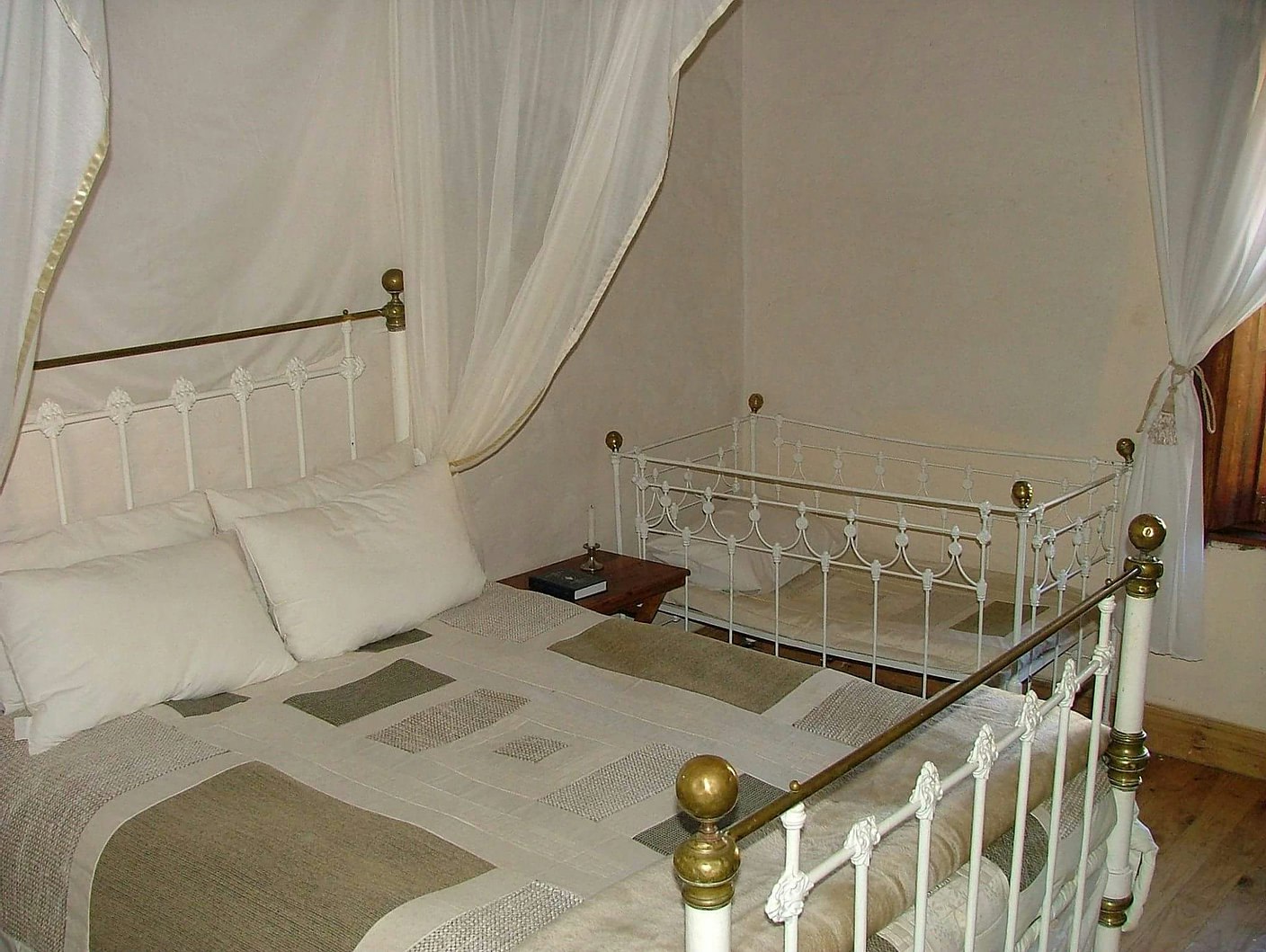 The house comprises 5 bedrooms and can accommodate up to 11 guests at a time. Of the 5 bedrooms 4 are furnished with 2 single beds and the fifth bedroom has a double bed, 1 single bed, and a baby cot. Each room has a tin bath and toilets, with screen doors. There is a separate bathroom with a Victorian bath and toilet. There are fireplaces in 4 of the bedrooms. Hot water is supplied by a wood-burn, water-heating system.