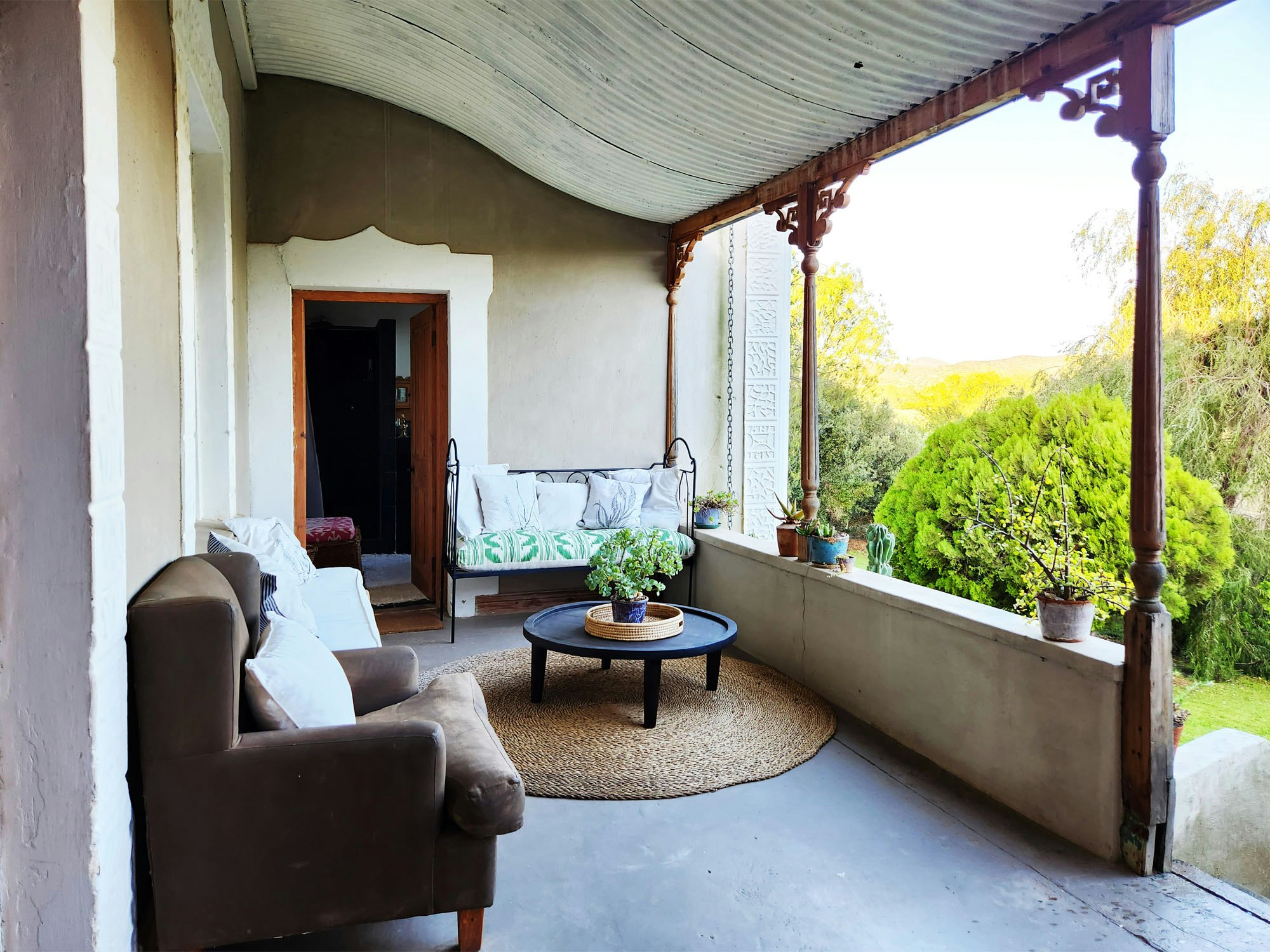 Aangrensend aan die huis is 'n oopplan-kunsateljee wat 'n wonderlike plek is vir kreatiewe denkers. Hierdie huis spog met 2 voorstoepe met gemaklike sitplek en is ideaal vir 'n oggendkoffie terwyl jy oor die omliggende platteland uitkyk. Aan die agterkant van die huis is 'n derde patio met 'n buite-eetkamertafel en 'n ingeboude braai waar gaste kwaliteit tyd saam kan geniet terwyl die vuur brand. Hierdie patio lei na 'n ruim tuin met 'n aanloklike swembad, sonstoele en 'n boma.