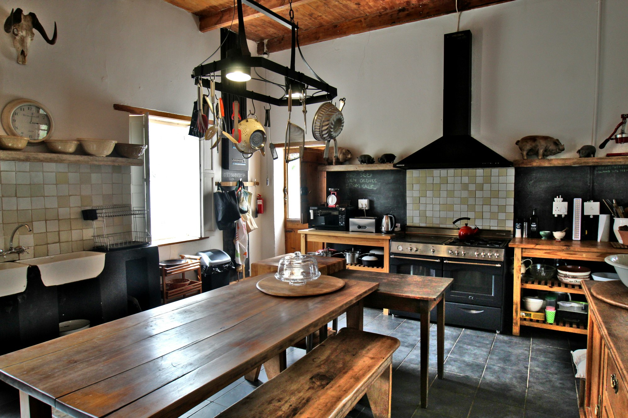 Die ruim leefarea beskik oor 'n stylvolle en rustieke kombuis wat volledig toegerus is met 'n gasstoof, elektriese oond, mikrogolfoond, yskas-vrieskas, eetgerei en breekware, sowel as 'n sentrale ontbyttafel. Die knus sitkamer het gemaklike sitplek, 'n kaggel en 'n TV. Gratis WiFi is beskikbaar. Daar is ook 'n eetarea met genoeg sitplek vir almal om hul maaltye saam te geniet.