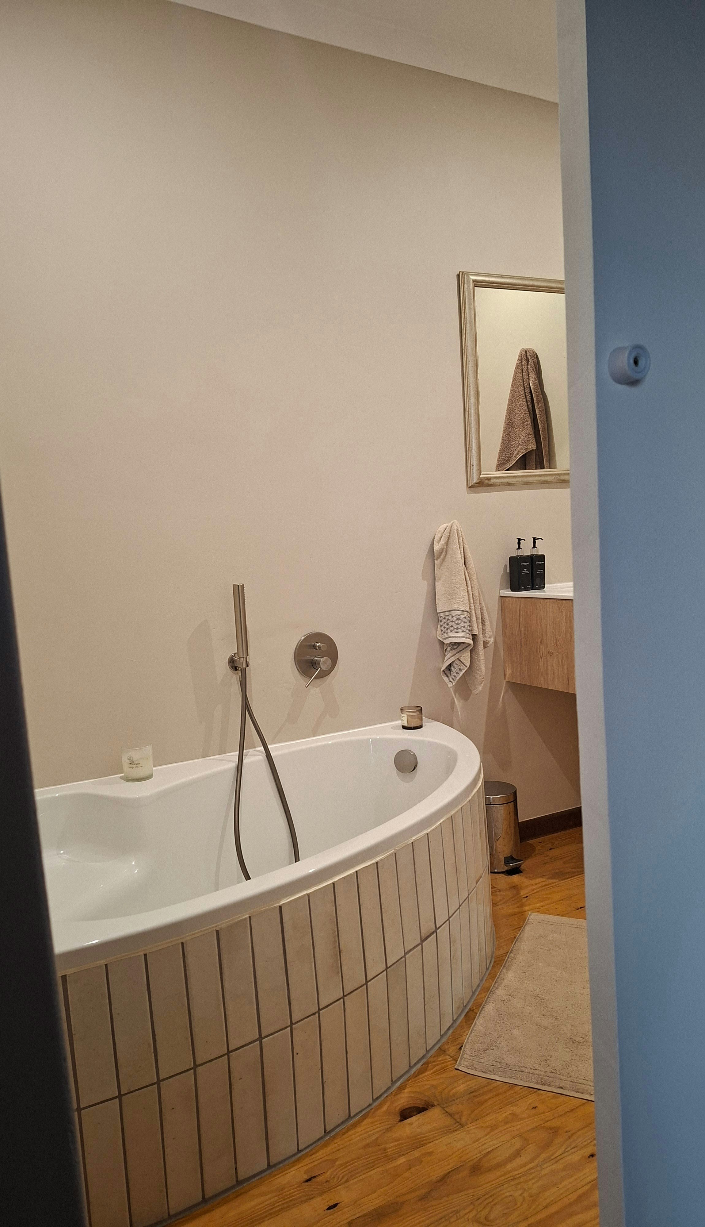 Perfect view and location to relax and recharge. The house has an incredible view of the sea. Is neatly furnished, in a 1990s style with very old heavy furniture and a closed kitchen. Everything you need is in the house, it's like going on holiday in someone else's house. Everything is there, comfortably furnished with what you need. Kitchen items in the house are used, neat, clean items. Rooms are spacious with lovely bedding. The living room is comfortable. The deck's fencing is practical, but not child-friendly for children under 7 years of age. Access to the house is very easy for anyone from the street as the property is not fenced. The suggestion we would like to make is that a gate be put up before you can go up on the deck. It will also help that small children cannot just run downstairs. Security measures are in place with an alarm and beams when you are not at home. The dishwasher in the kitchen is very convenient, but we definitely missed a washing machine. It was very nice for our whole family, 7 adults and 3 small children, to be able to stay here for two weeks.