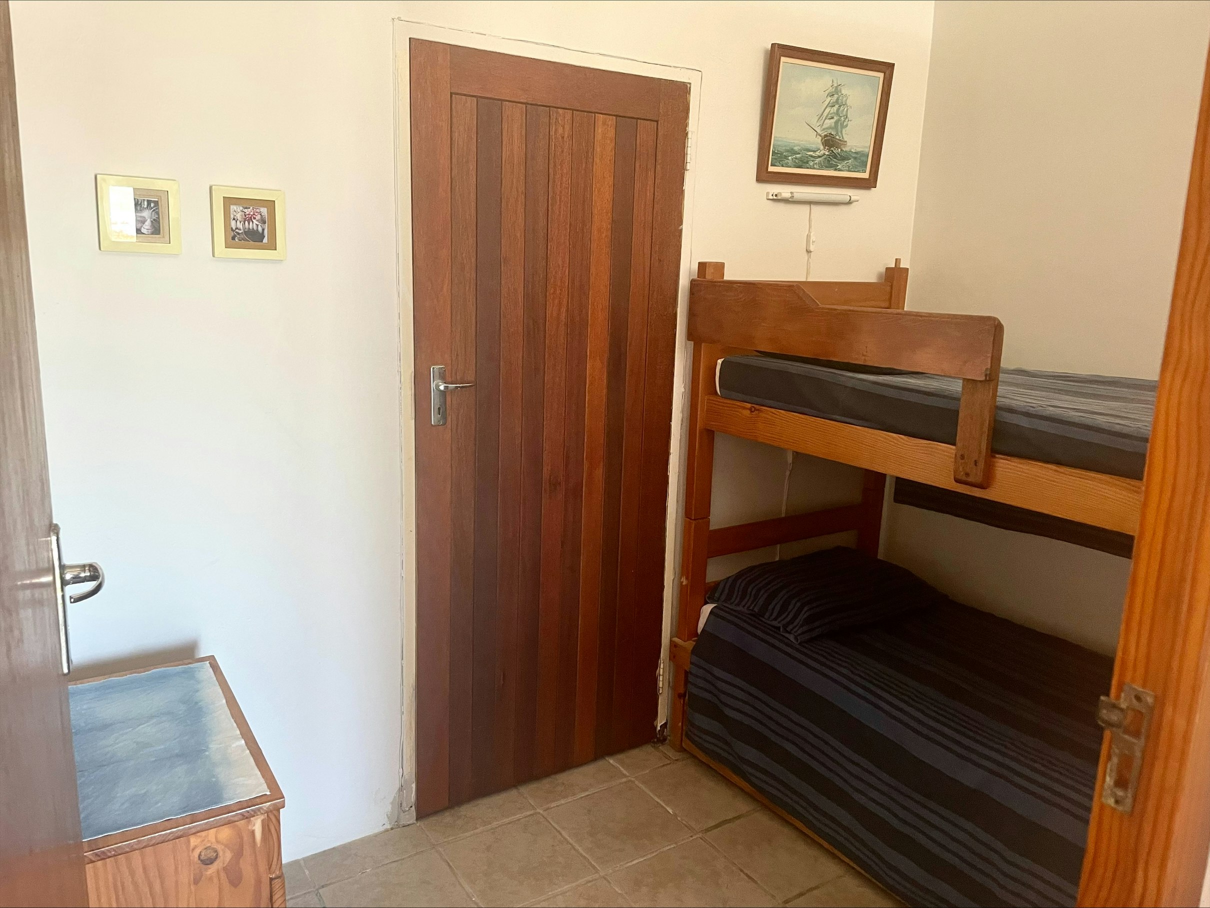 Hierdie woonstel bied gemaklik slaapplek vir 4 gaste en bestaan uit 2 slaapkamers en 'n badkamer. Die hoofslaapkamer is ingerig met 'n dubbelbed en die tweede slaapkamer het 'n stapelbed. Hulle deel die gebruik van 1 badkamer met 'n stort, wasbak en toilet. Daar is ook 'n stort in die braaikamer. Linne word voorsien, maar gaste moet hul eie bad- en swemhanddoeke saambring.