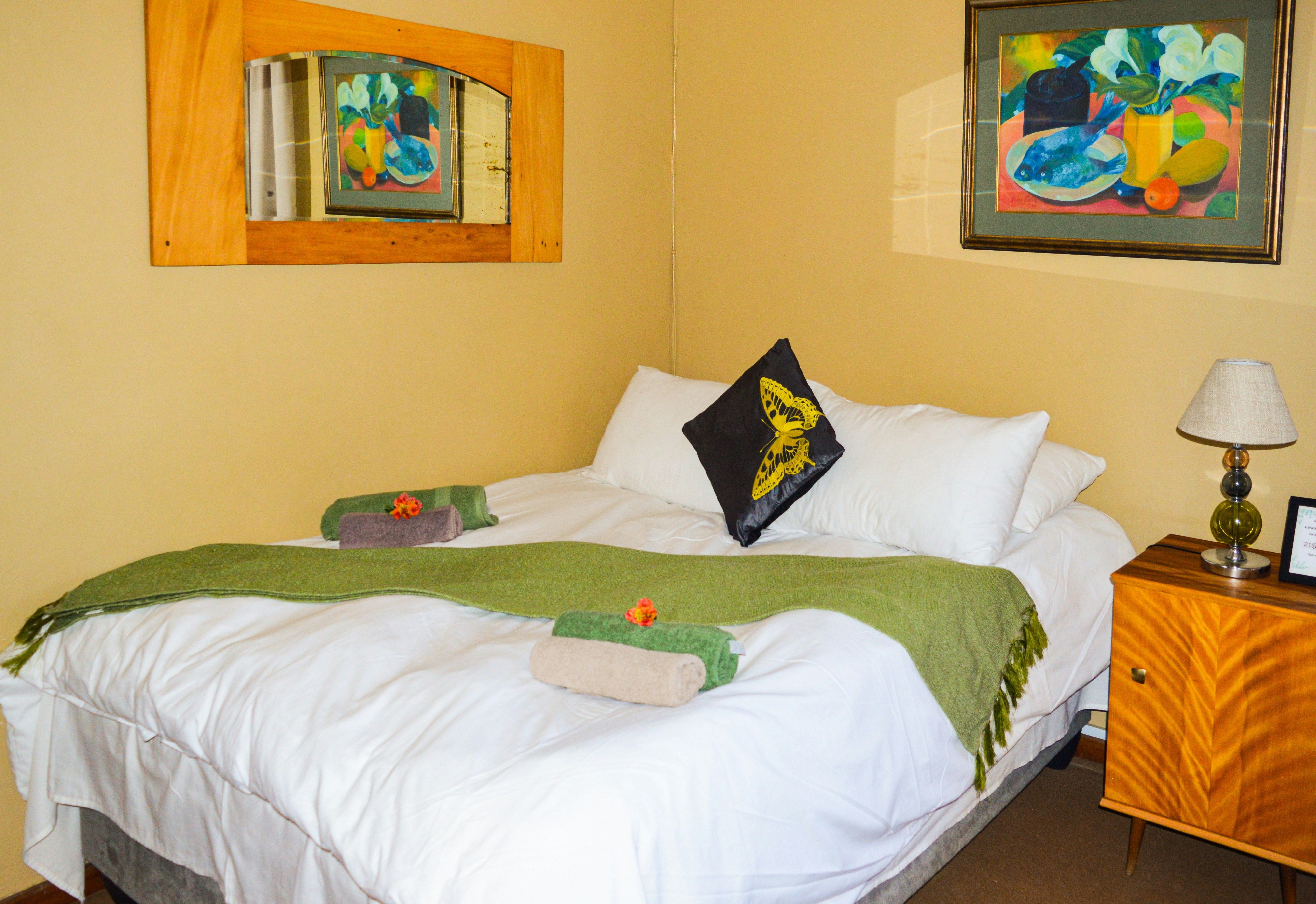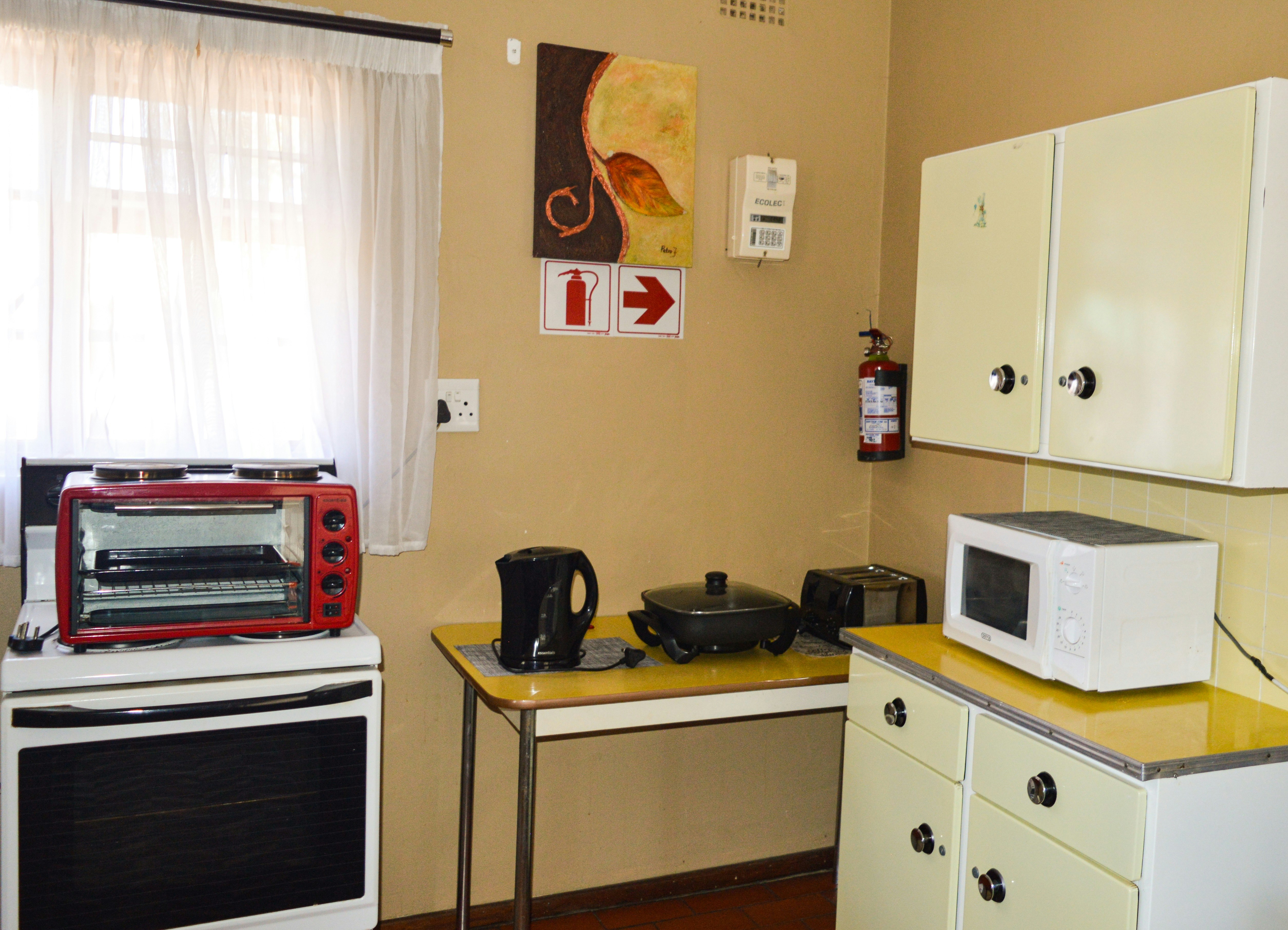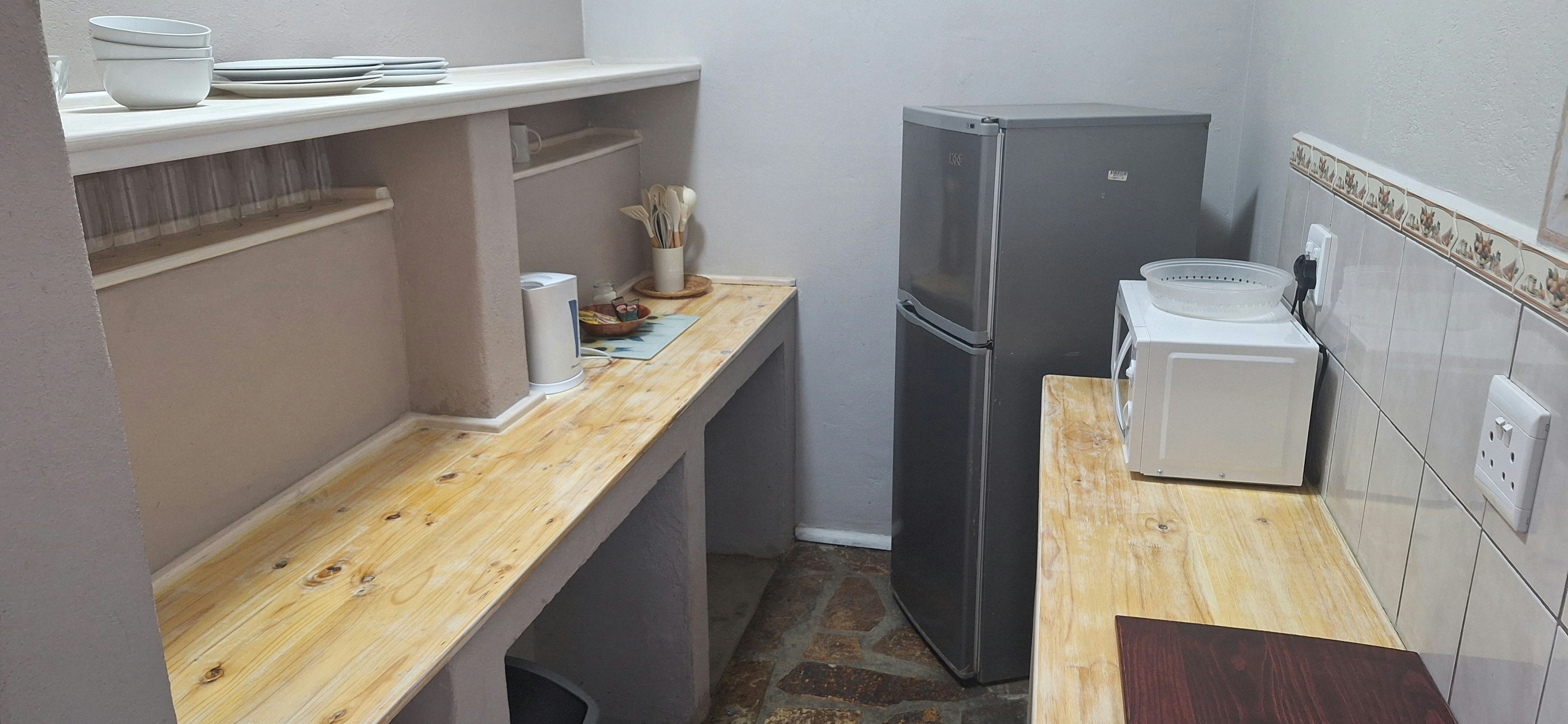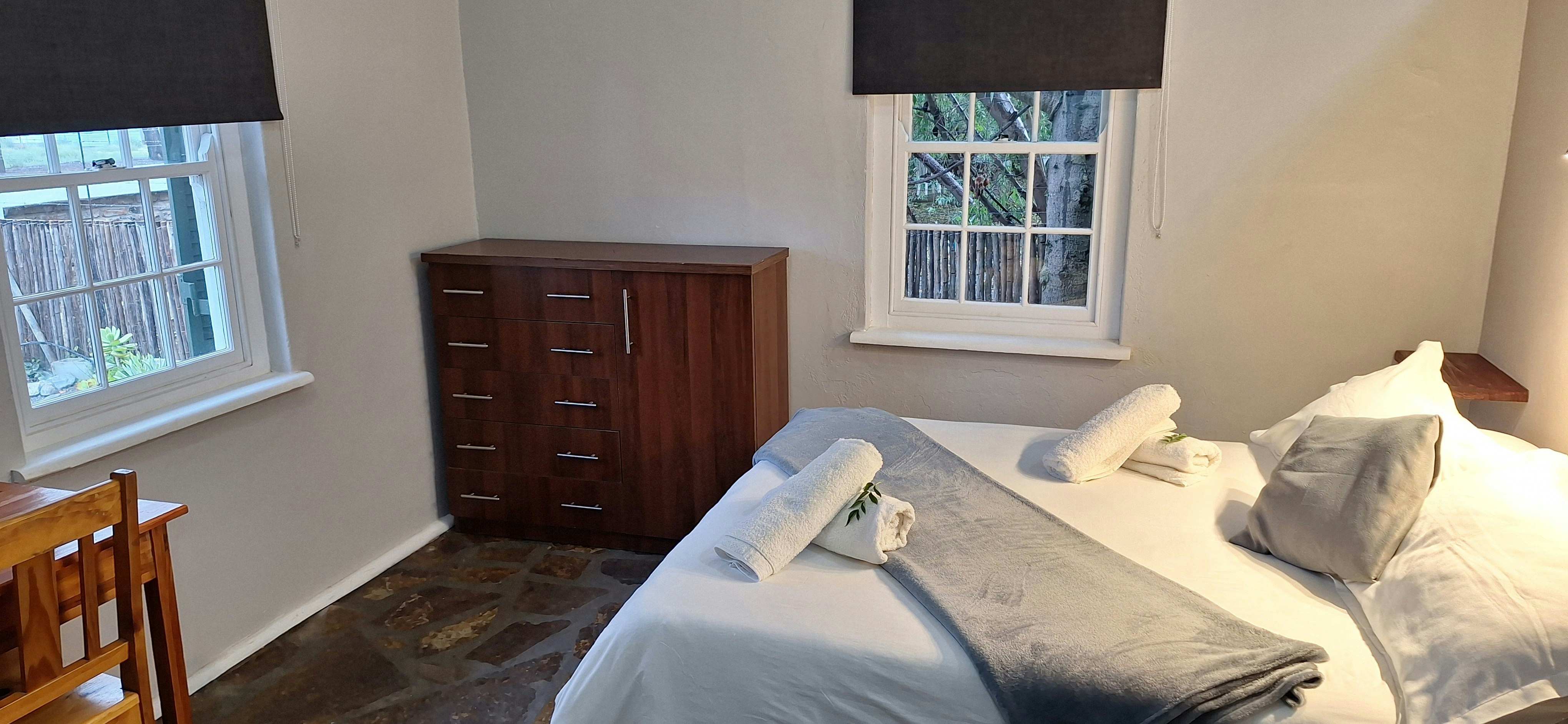 The en-suite room has basic self-catering facilities, a double bed and an outside braai area. The open-plan rondavel has a kitchen, bathroom and a sleeping area, which contain a double bed and 1 single bed. The grassy campsite can accommodate up to 12 guests and each site has its own bathroom, braai area and power point.