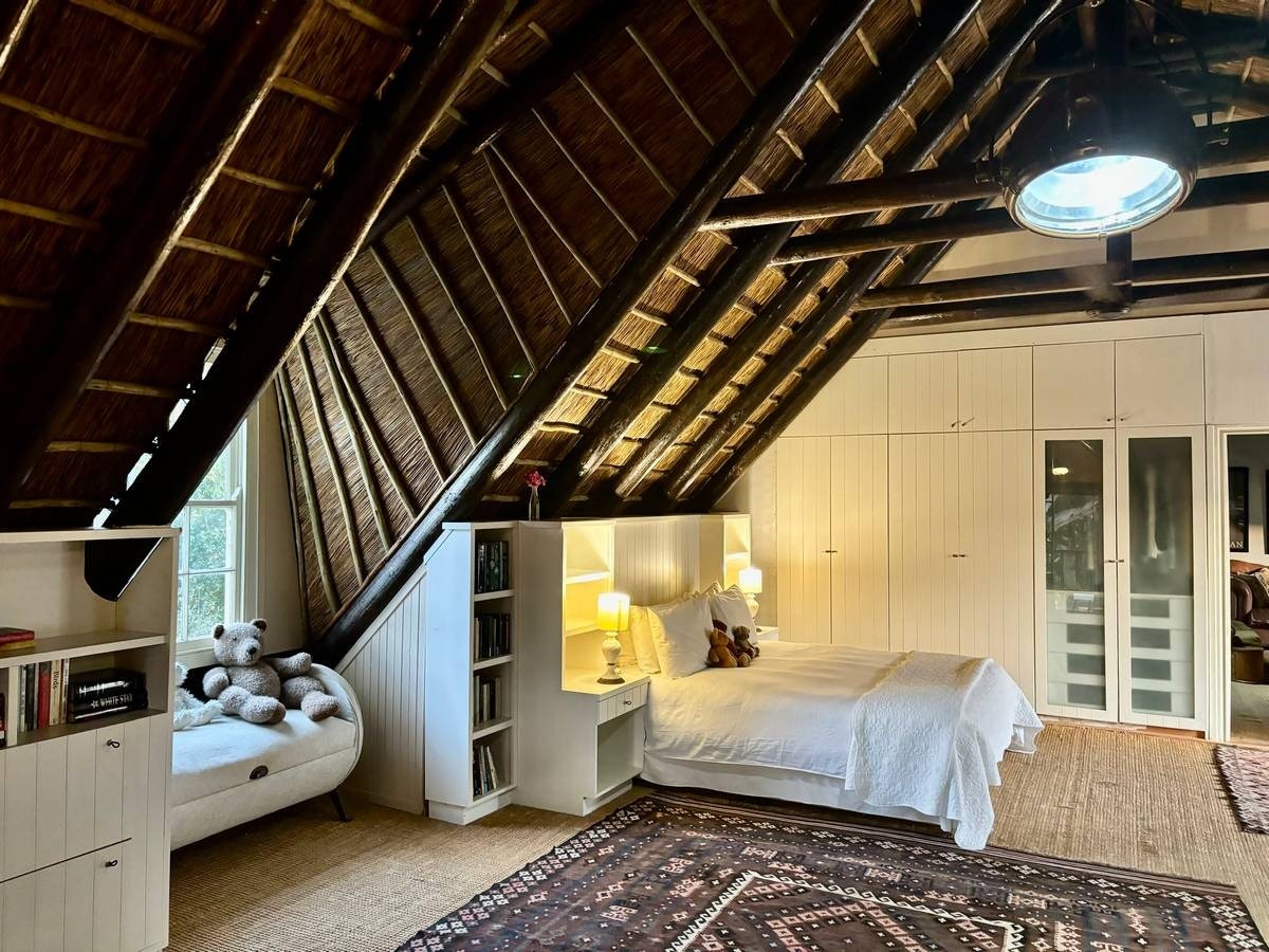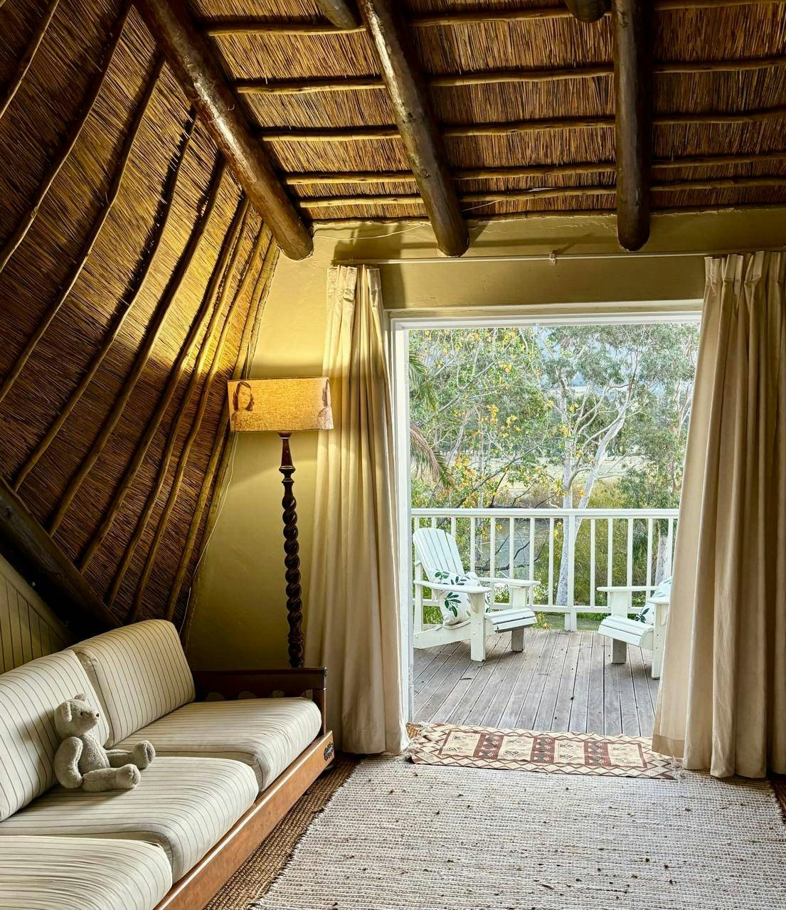 The double-storey, thatched The FarmHouse can accommodate 8 to 12 people. The first bedroom has a queen size bed and an en-suite bathroom with a bath. The second bedroom has a double bed, single sleeper couch, and an en-suite bathroom with a shower. The third bedroom has a king bed and en-suite bathroom with a shower and a bath. The fourth bedroom has a double bed, single sleeper couch, and en-suite bathroom with a bath. The fifth bedroom has 2 single beds.