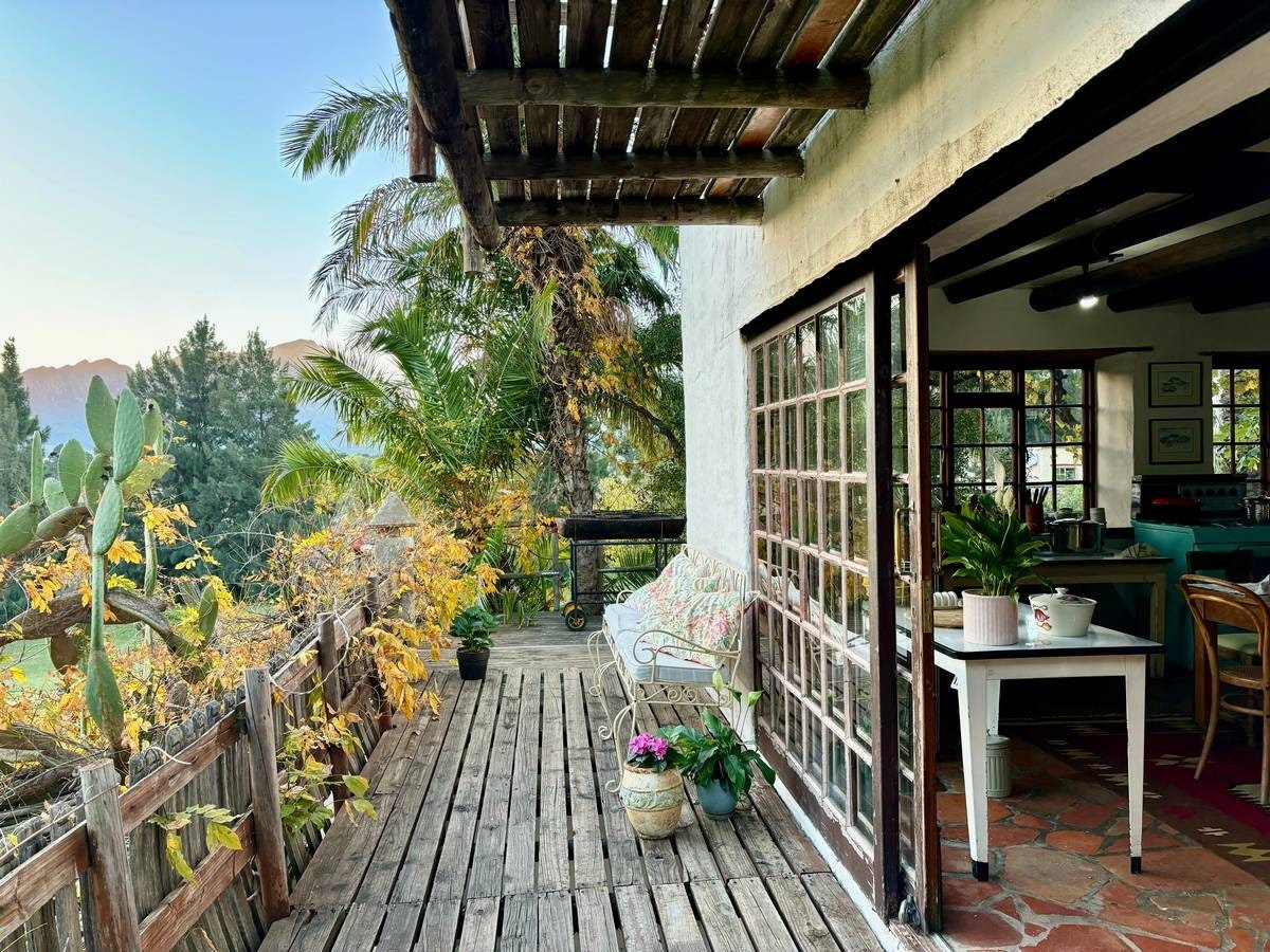 The farmhouse kitchen is equipped for self-catering and has a huge fireplace, marble-topped cupboards, a dishwasher, and a double-sized oven. It leads onto the terraced entertainment area with a 14-seater table and braai, a 14m swimming pool and a wood-fired hot tub, all only a few meters away from the dam which is excellent for Bass fishing in Tulbagh and safe for swimming and rowing. This area is ideal for small weddings, parties and events.
