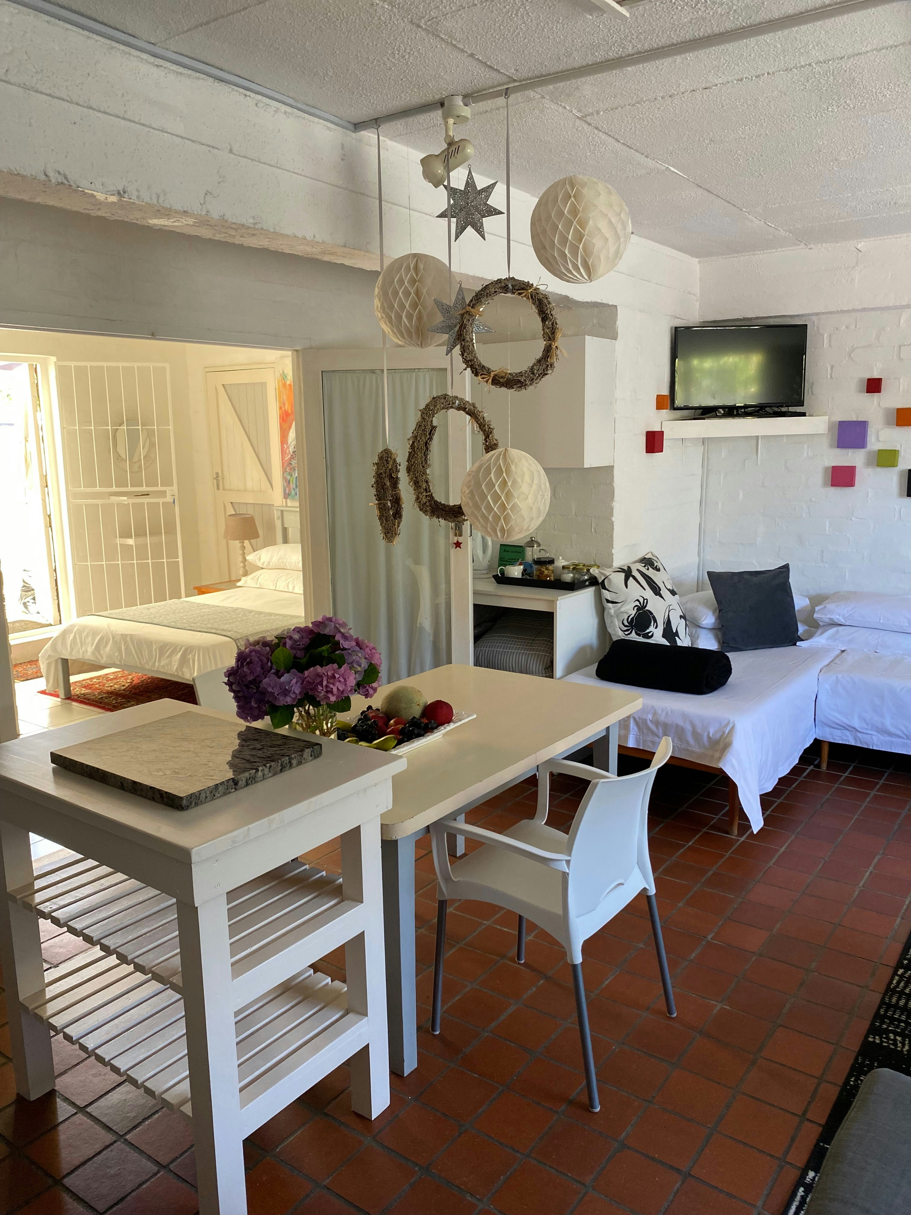 The lounge has comfortable couches as well as a TV with DStv, and a dining area with ample seating where guests can enjoy their meals together. Guests can also enjoy complimentary Wi-Fi access.