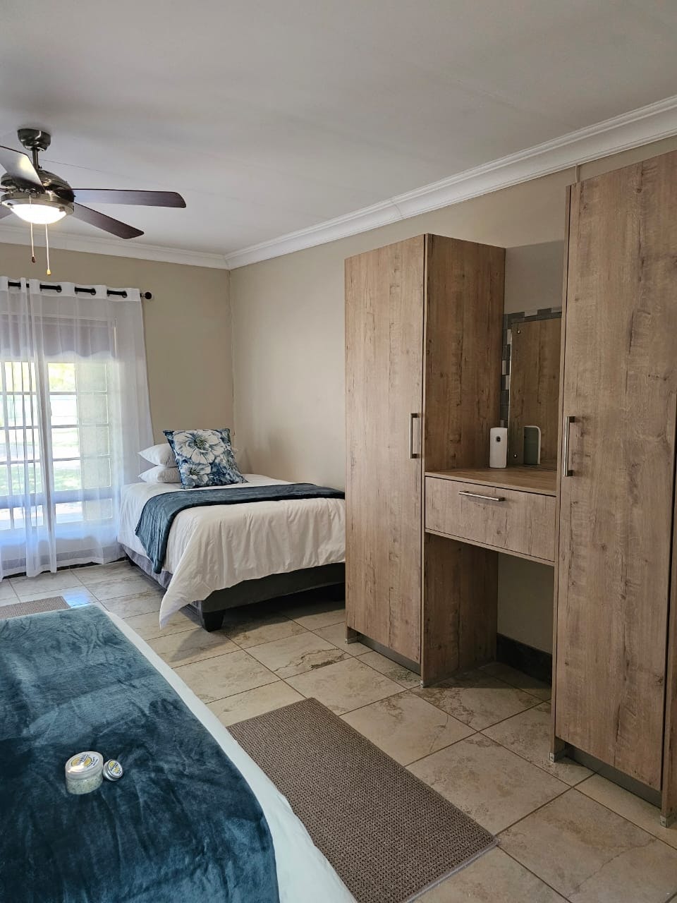 Accommodation is offered in 2 well-appointed units, accommodating between 6 and 10 guests. Each unit has a private entrance and comfortable bedrooms with en-suite bathrooms, with linen and bath towels provided. Each unit features a well-equipped kitchen, a lounge and dining area with comfortable seating, a smart TV with full DStv channels, and free Wi-Fi. Outside, a covered patio with a built-in braai, seating, and a bar is ideal for dining and socialising. Guests also have access to a heated shared swimming pool, covered parking adjacent to the unit, and daily housekeeping.