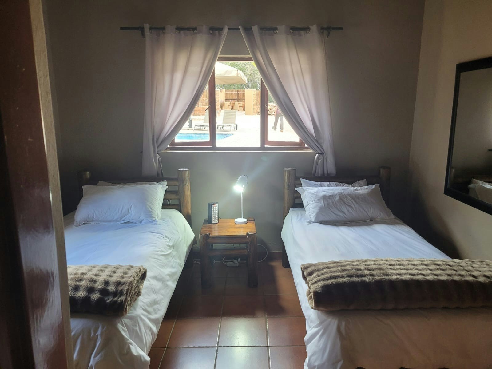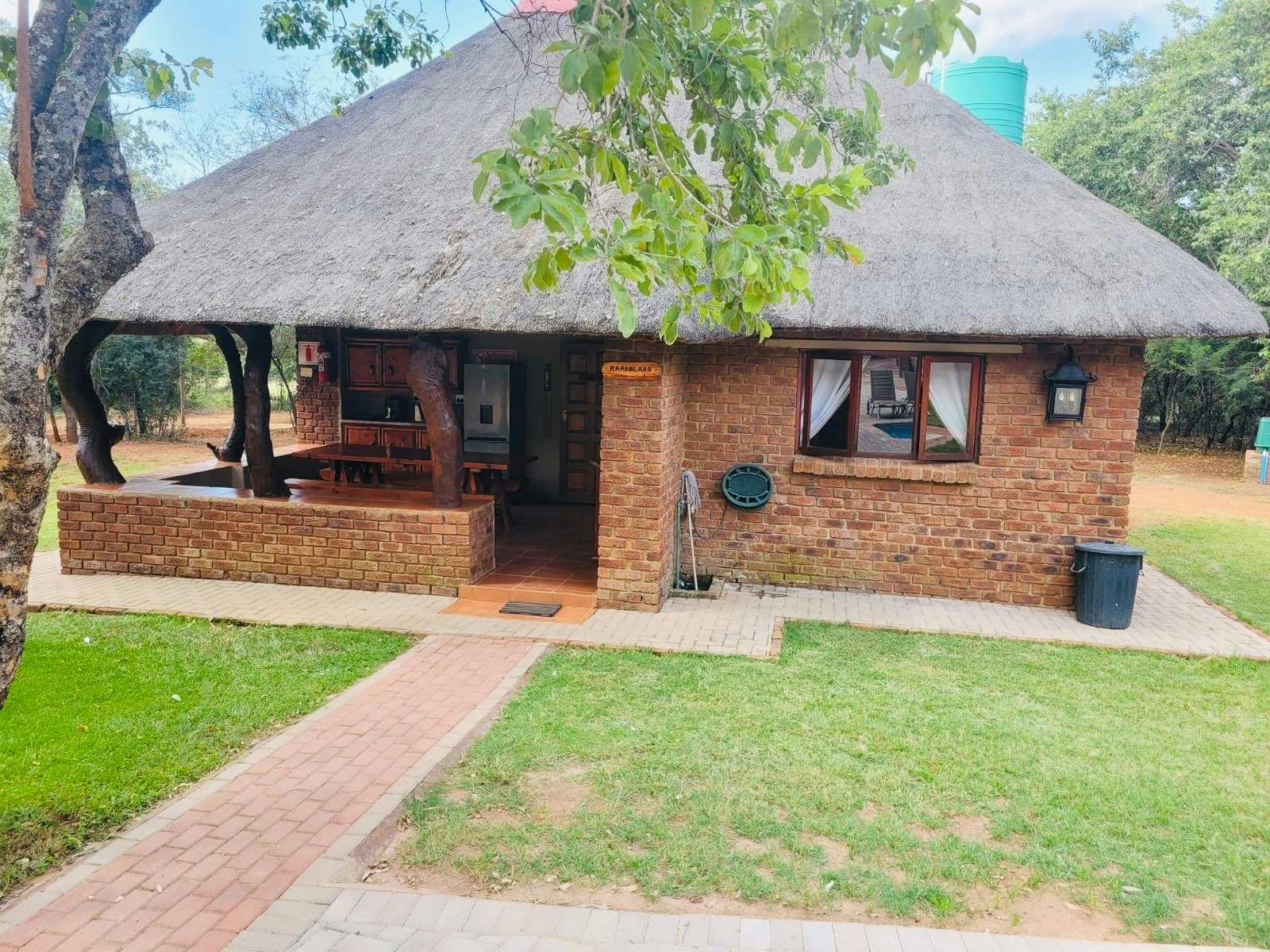 Guests have access to a boma area for a nice braai, along with a swimming pool for the hot days.