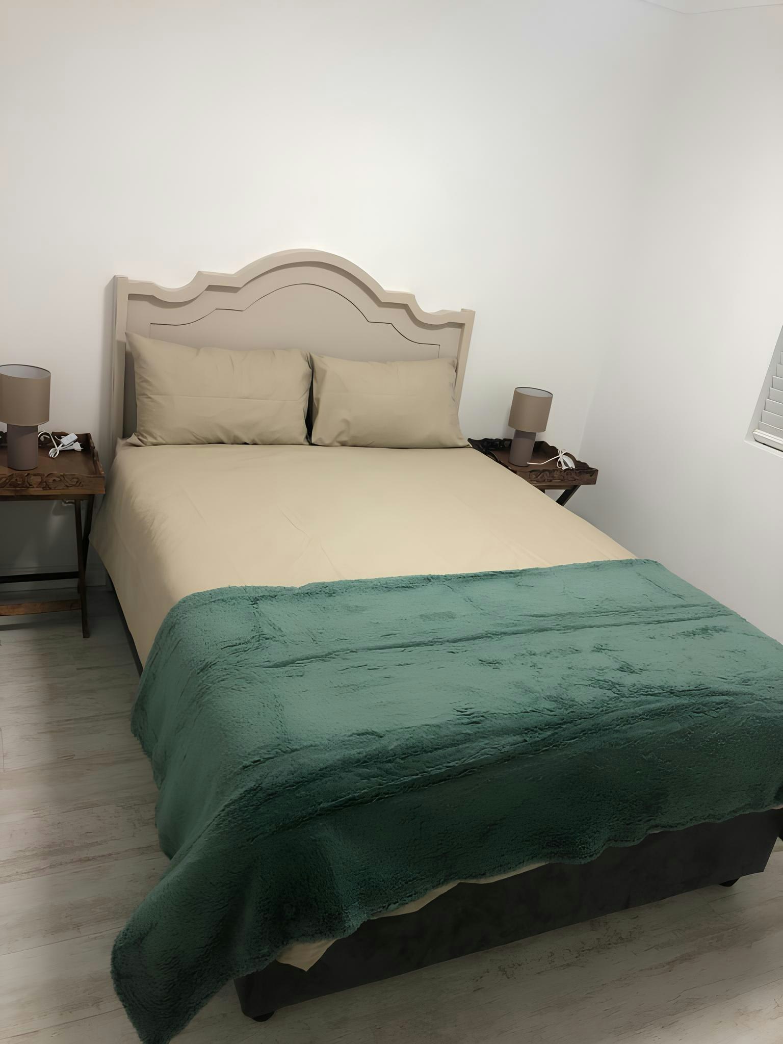 Hierdie dubbelverdiepinghuis bied slaapplek aan 6 volwassenes en 2 kinders. Dit beskik oor 3 slaapkamers en 2 badkamers. Die eerste en tweede slaapkamers is op die grondverdieping en het elk 'n dubbelbed. Gaste in die slaapkamers deel die badkamer met 'n stort. Die derde slaapkamer is op die boonste verdieping en het 'n koningingrootte-bed en 'n dubbelslaapbank vir kinders. Die en suite-badkamer het 'n bad en stort. Linne en badhanddoeke word voorsien.