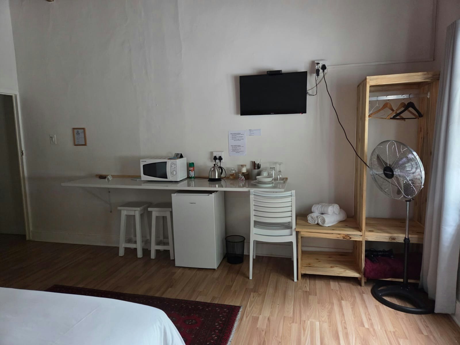 Daar is 3 en suite-slaapkamers. Die eerste kamer is gemeubileer met 'n koninggrootte-bed, die tweede kamer is gemeubileer met 'n koningingrootte-bed, en die derde kamer het 'n koninggrootte-bed. Ander geriewe in hierdie kamers sluit in 'n yskassie, mikrogolfoond, 'n TV met 'n volledige seleksie van DStv-kanale, tee- en koffiemaakgeriewe, en 'n privaat ingang. Gaste het ook toegang tot die hoofhuis se kombuis.
