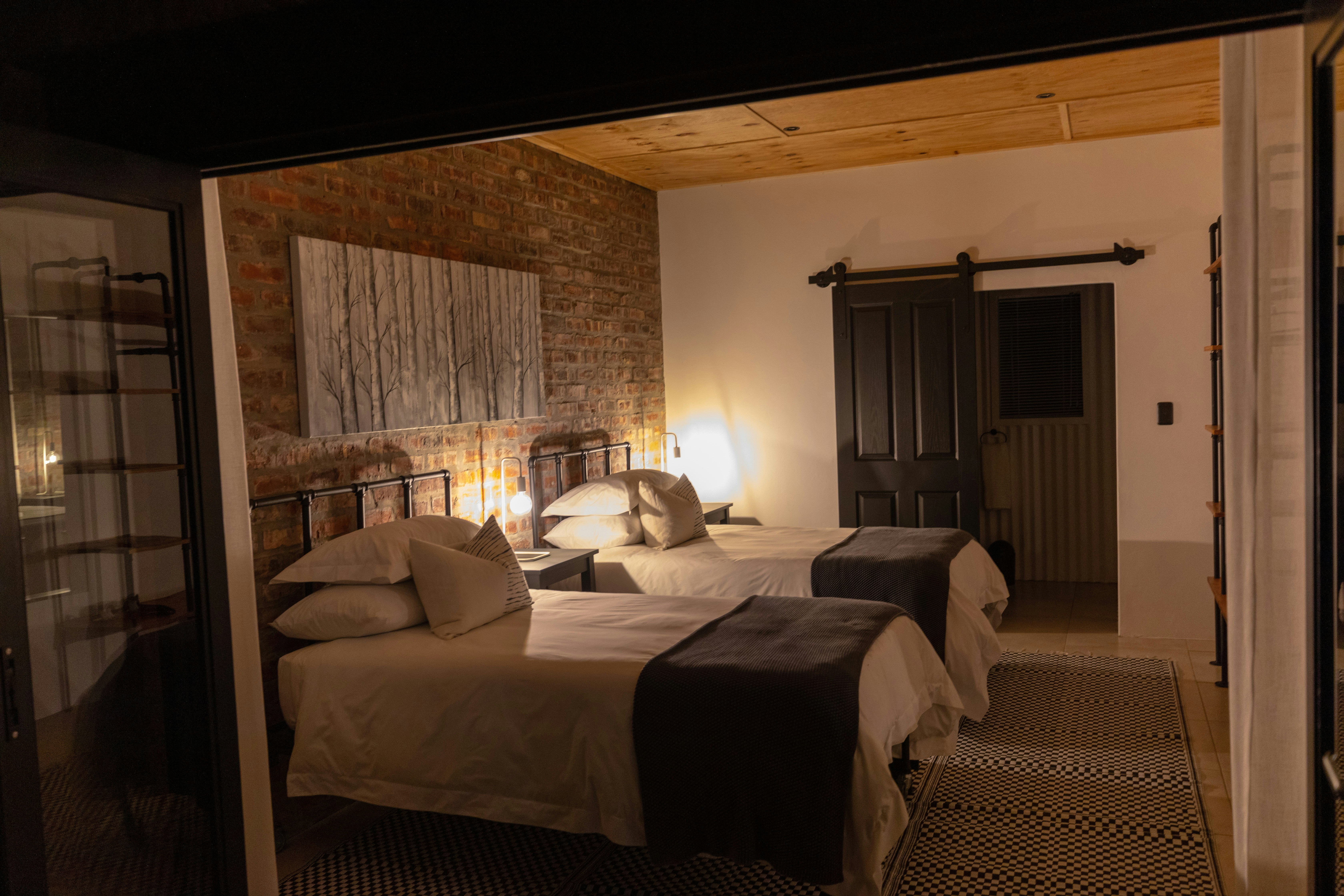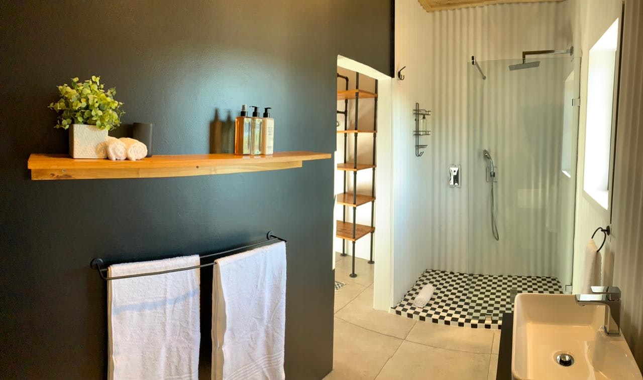 The Springbok Cottage can accommodate up to 4 guests and comprises 1 bedroom with 2 en-suite bathrooms, and an open-plan kitchen and living area. The kitchenette is equipped with heat-and-eat facilities. The dining area has seating space for 4 people, while the lounge has a comfy lounge suite and a wall-mounted flat-screen TV with selected DStv channels. The living area opens up onto a lovely patio area that has outdoor patio furniture, a picnic table, and braai facilities. The patio overlooks a boma area with a pit fire.