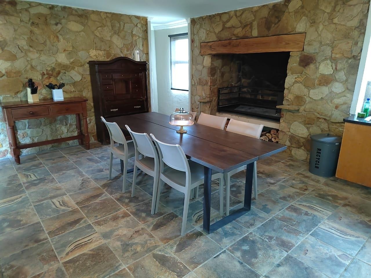 The kitchen is equipped with a fridge-freezer, gas stove, oven, microwave, basic cutlery, crockery, and tea- and coffee-making facilities. It leads out to the spacious dining room and lounge room. There’s also an indoor braai area with seating space. Guests have access to free Wi-Fi throughout the house.