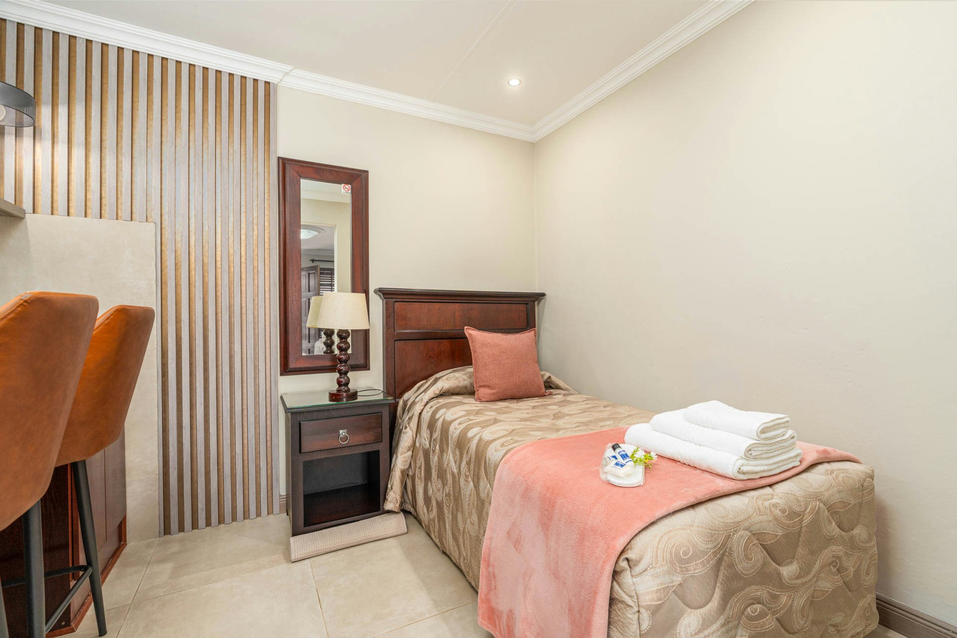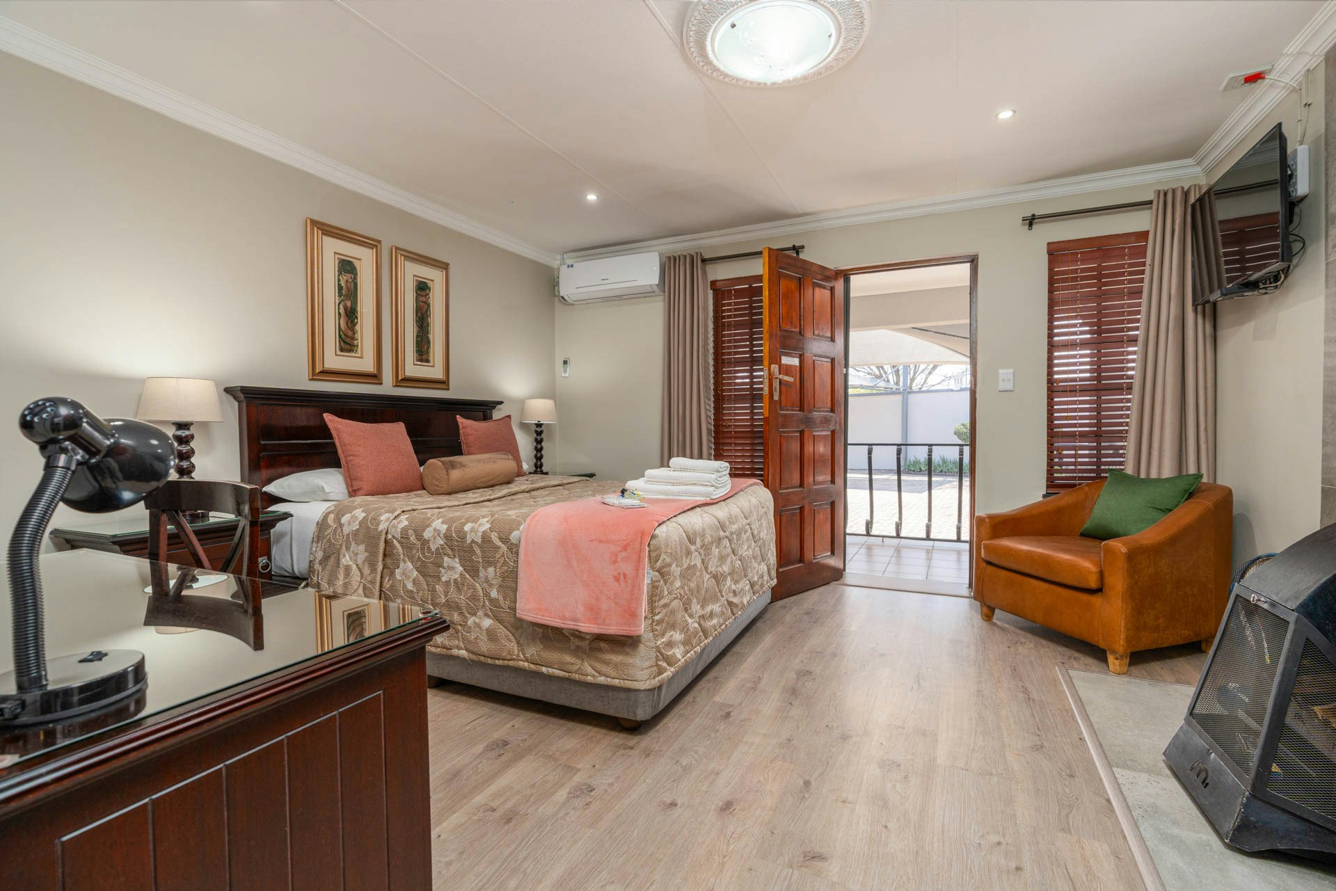 The accommodation comprises a variety of 12 bedrooms to cater to all guests' needs. All rooms have modern, en-suite bathrooms and are equipped with a bar fridge, microwave oven, coffee- and tea-making facilities, a plasma TV with selected DStv channels and a choice of ADSL or LTE internet connections.