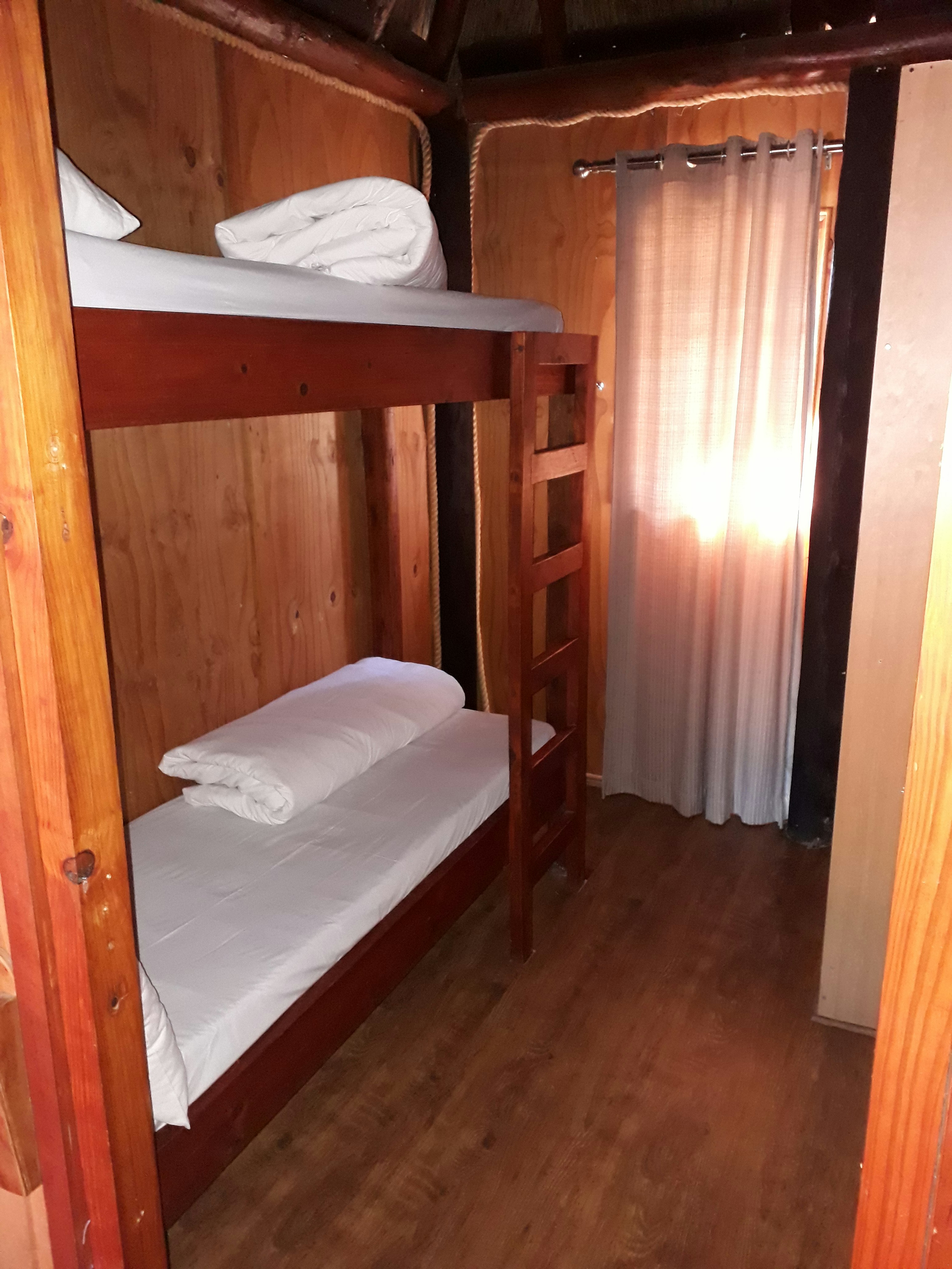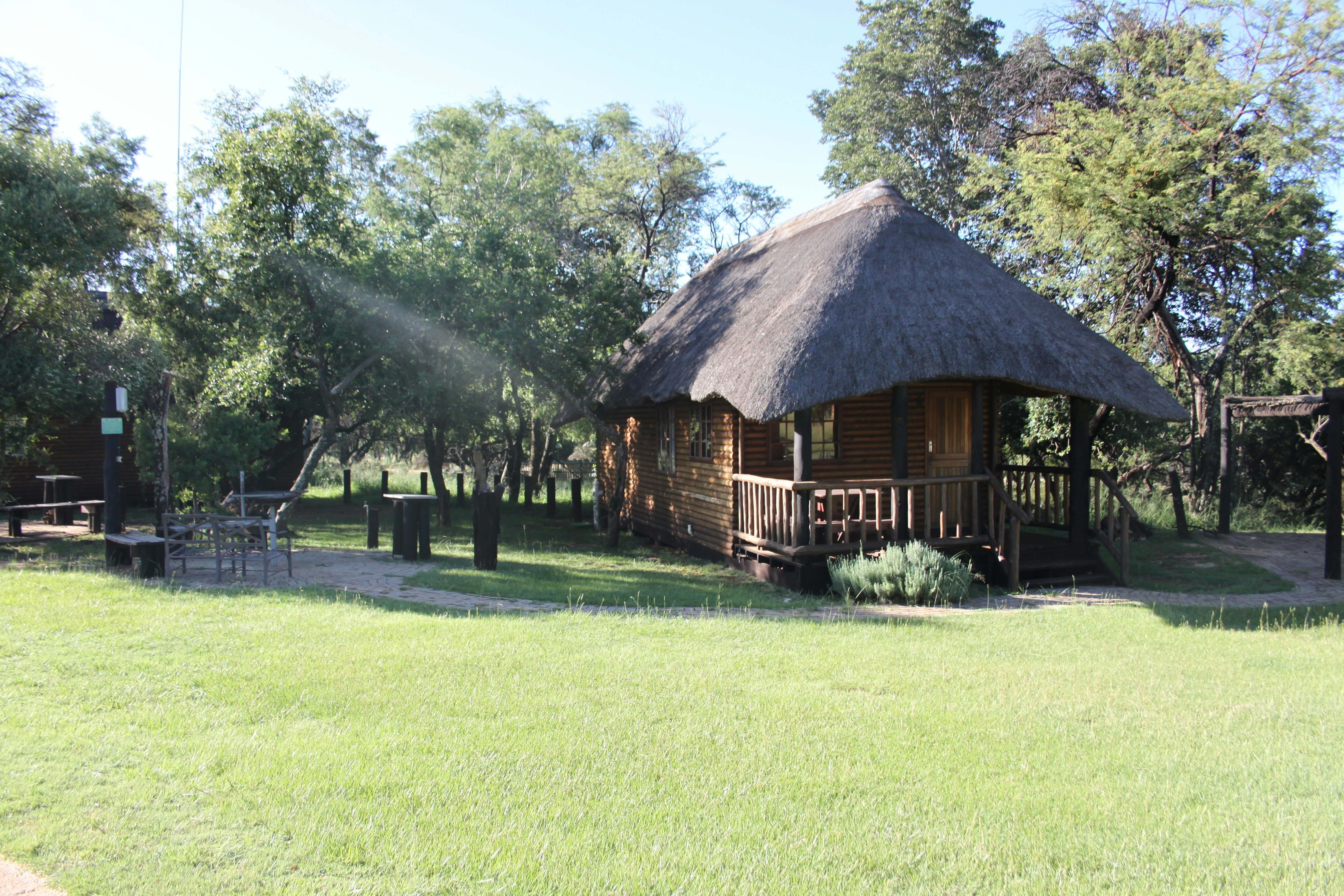 Accommodation is offered in 10 wooden log cabins that can each accommodate up to 4 guests and have an open-plan layout. Each chalet contains 2 single beds that can be converted to a king-size bed and a bunk bed. The bathroom contains a shower, a toilet and a washbasin. Each chalet has a kitchenette fitted with a bar fridge, counter top with 2-plate stove and oven, microwave, and crockery and cutlery. Each chalet has a verandah to relax on, and a braai area with a light.