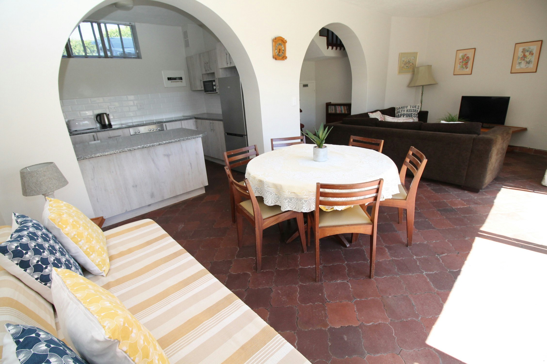 The adjacent lounge has a TV with Openview. If you prefer DStv please bring along your own decoder (no exploras).The complex also boasts a communal swimming pool, braai facilities, and secure parking for cars.