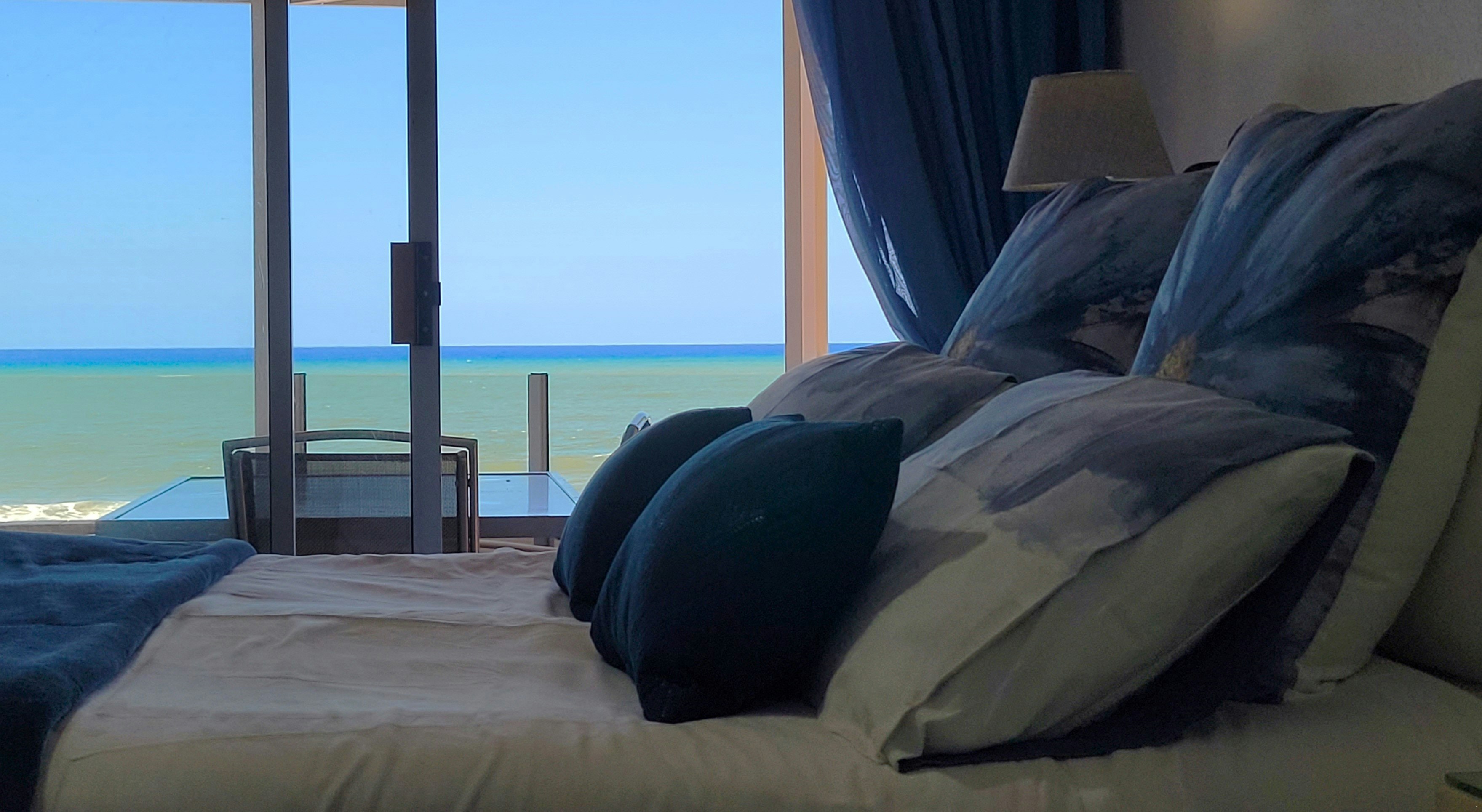 Lovely and perfect. Lovely place with a great view of the beach and the sound of the waves that just instantly calms your mind.