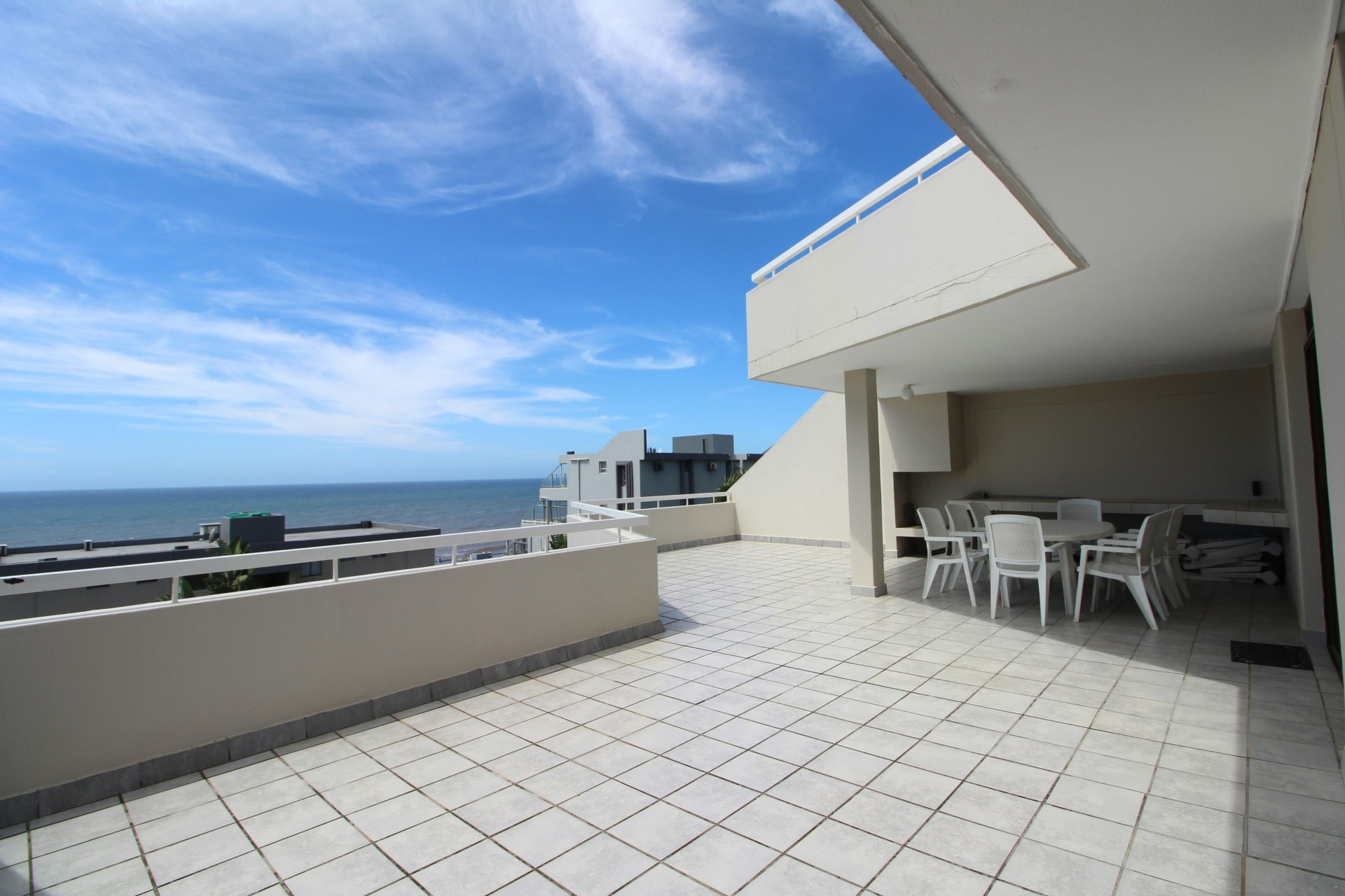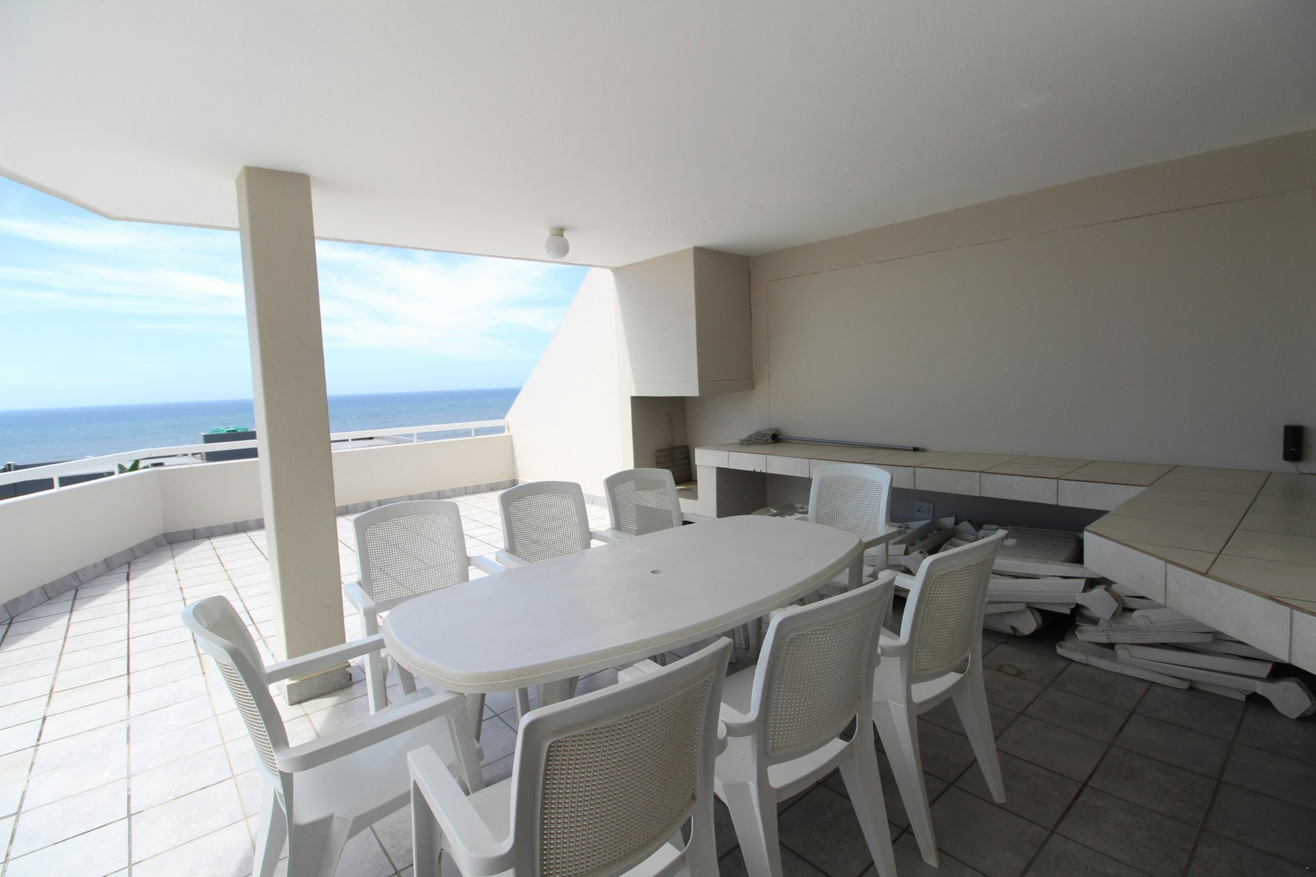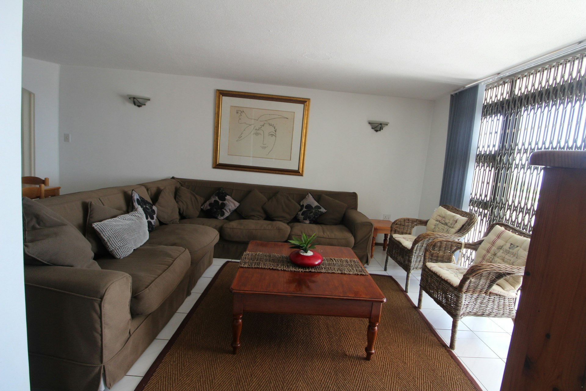 The kitchen is well-equipped for self-catering with a stove and oven, fridge, kettle, toaster, microwave, and a breakfast bar with stools. The dining area contains an 8-seater dining table and chairs. The lounge offers comfortable couches, and a smart TV with a DStv connection and Wi-Fi, should you wish to bring your own decoder, smart card, cables and remote. The lounge opens to a large sea-facing balcony and a gas braai is available.
