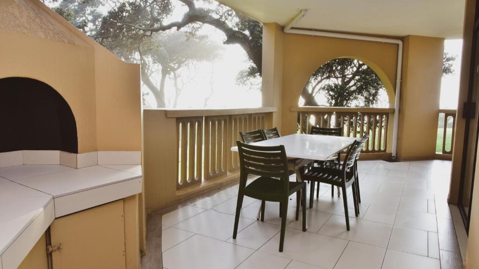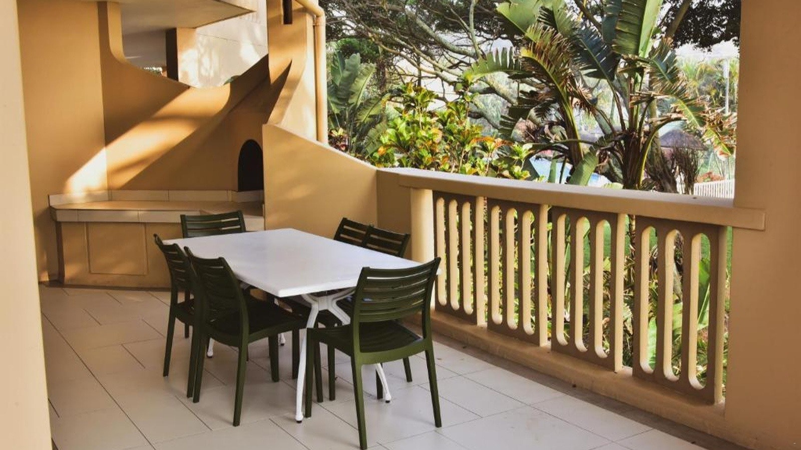 Guests can enjoy a private balcony with an outdoor dining area. The complex boasts direct access to the beach, a communal swimming pool, braai facilities, and a multi-purpose sports arena. Secure parking is available on the premises. Local amenities such as Gateway Theatre Of Shopping and various other shops and restaurants are within close proximity, with King Shaka International Airport being approximately 18 km away.